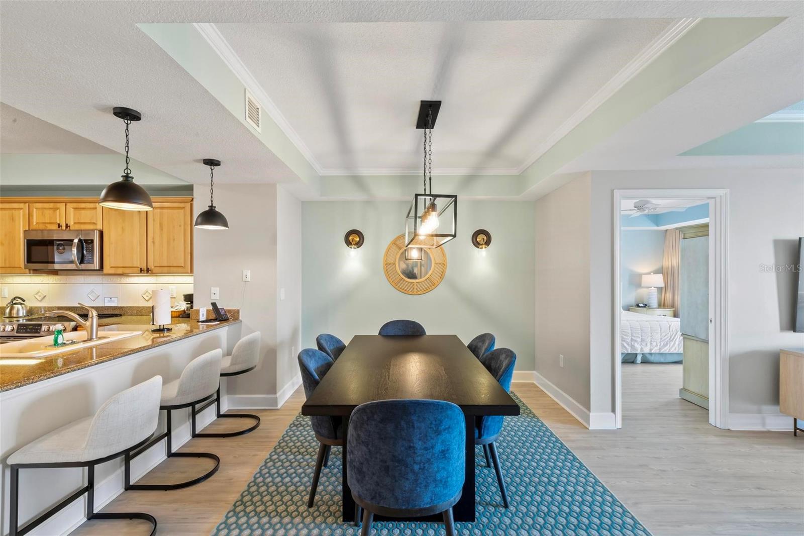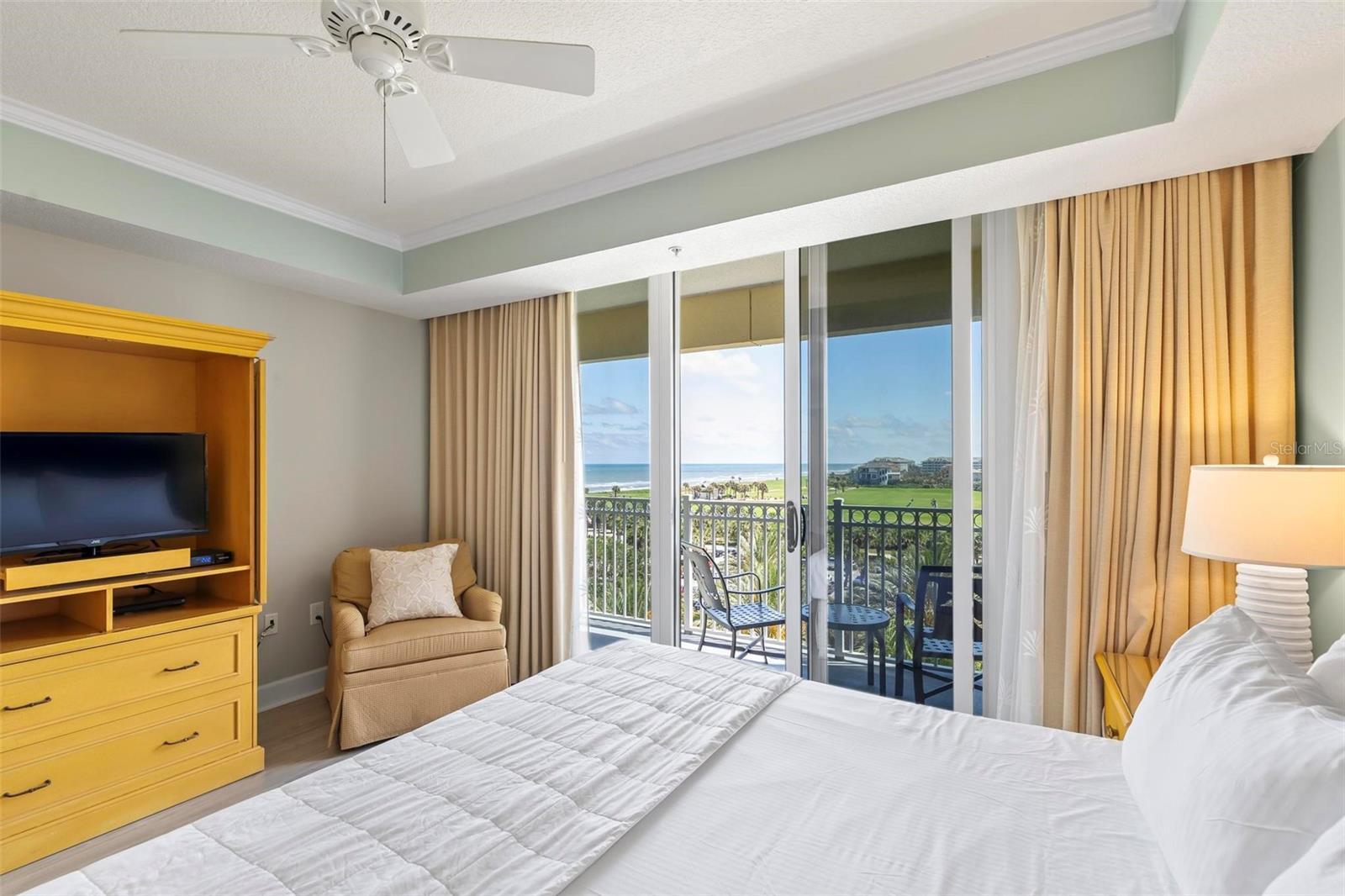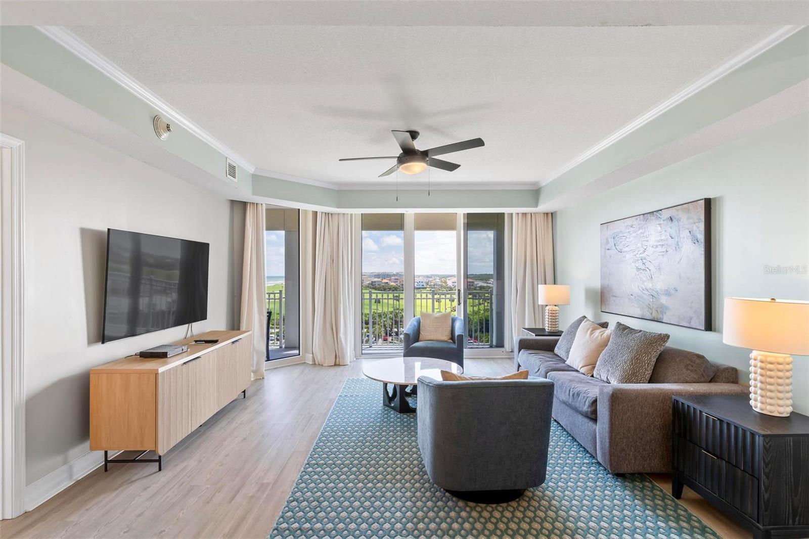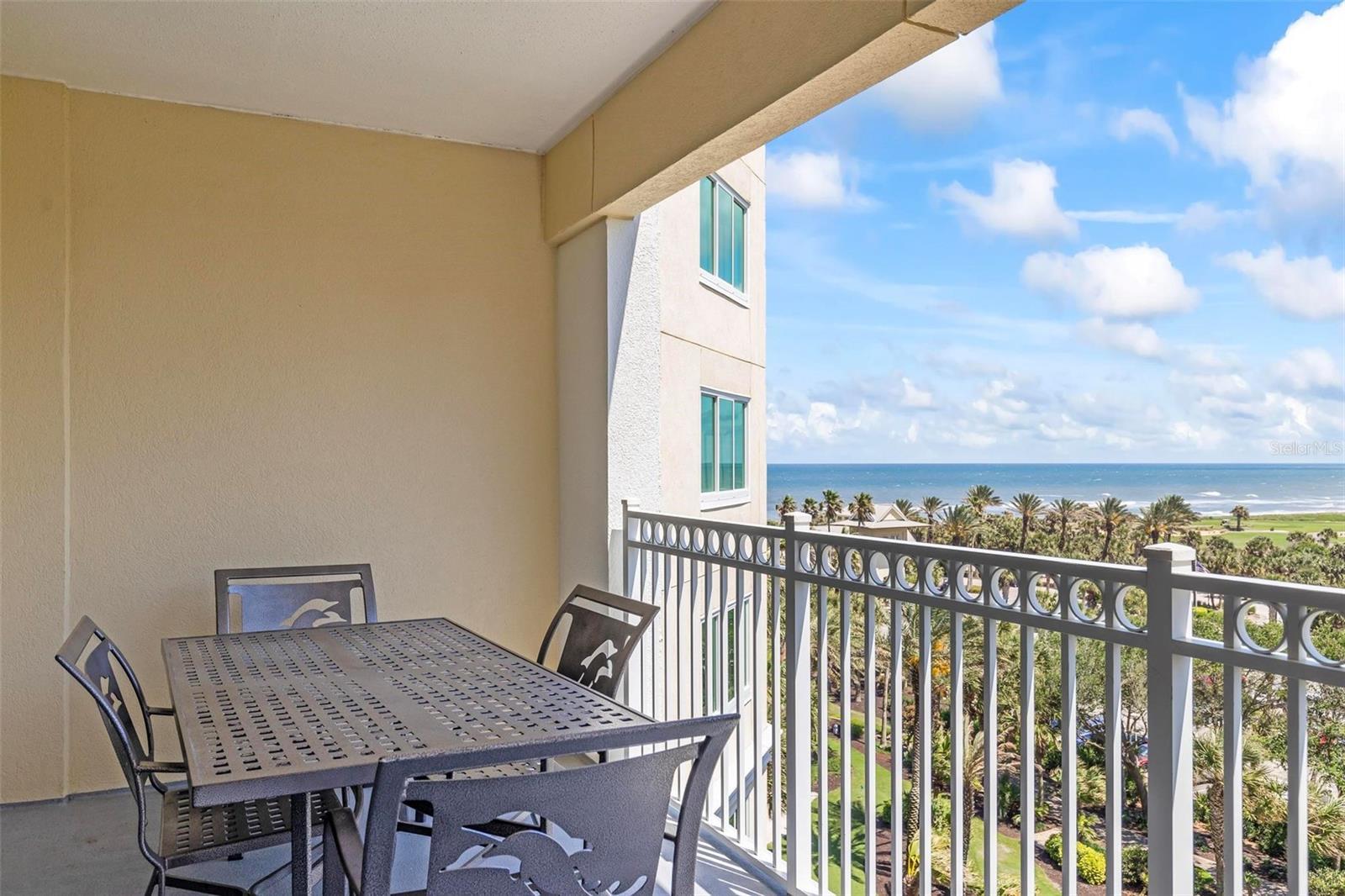 * THIS PROPERTY IS BEING SOLD FULLY FURNISHED AND TURN-KEY READY, OFFERING AN OUTSTANDING OPPORTUNITY TO GENERATE FANTASTIC SHORT-TERM RENTAL INCOME FROM DAY ONE. * Step into this stunning fifth-floor condominium situated in the esteemed Hammock Beach Resort. Upon entering this residence, you'll be welcomed by tiled kitchen floors and luxurious vinyl plank flooring adorning the main living areas and bedrooms. The kitchen boasts stainless steel appliances, a chic tile backsplash, pendant lighting, and ample cabinet space. The dining area, nestled between the kitchen and living room, is open, airy, and filled with natural light. Discover a perfect blend of elegance and comfort with tray ceilings and crown molding enhancing the living spaces. The master bathroom is a sanctuary with its dual vanity, spacious soaking tub, and floor-to-ceiling walk-in tile shower. The generous walk-in closet offers ample storage for your belongings. Step onto the expansive balcony and marvel at the views of swaying palm trees, the vast Atlantic Ocean, and the pristine Hammock Beach Ocean Course. Accessible from the master bedroom, living room, and one of the guest rooms, the balcony provides an incredible space to unwind and enjoy the scenery. One guest room features an ensuite bathroom with a tub, floor-to-ceiling tile shower, and double sinks, ensuring convenience and comfort for guests. This condo epitomizes coastal sophistication and resort-style living, promising an unparalleled experience. Embrace the opportunity to own this exceptional condo and indulge in the beauty and luxury of Hammock Beach Resort living. As a Hammock Beach member, you'll enjoy access to a plethora of amenities, including two world class golf courses, a lavish spa, multiple swimming pools, fitness facilities, exquisite dining options, and more. The community also offers a vibrant social environment, perfect for connecting with like-minded individuals and forming lasting bonds. Don't miss the chance to make this your new home or an incredible short-term rental investment