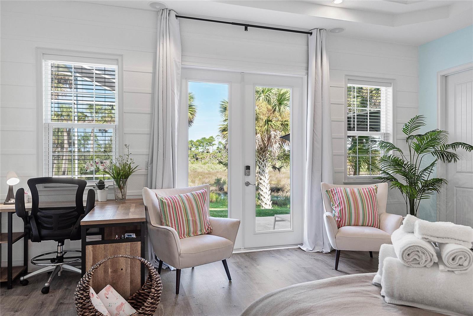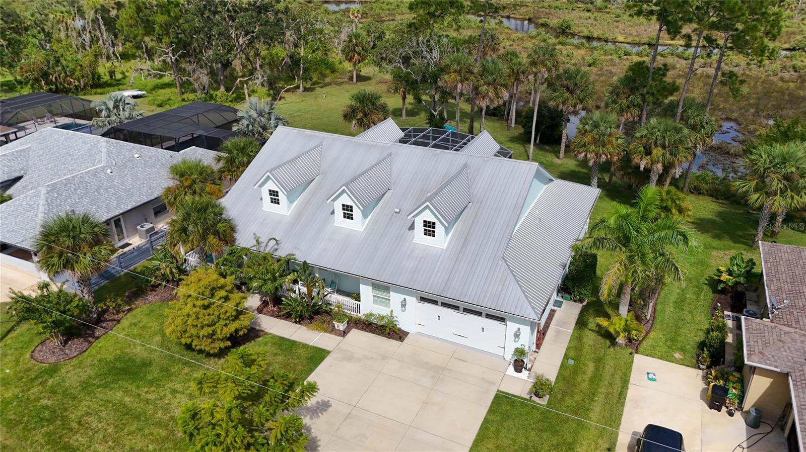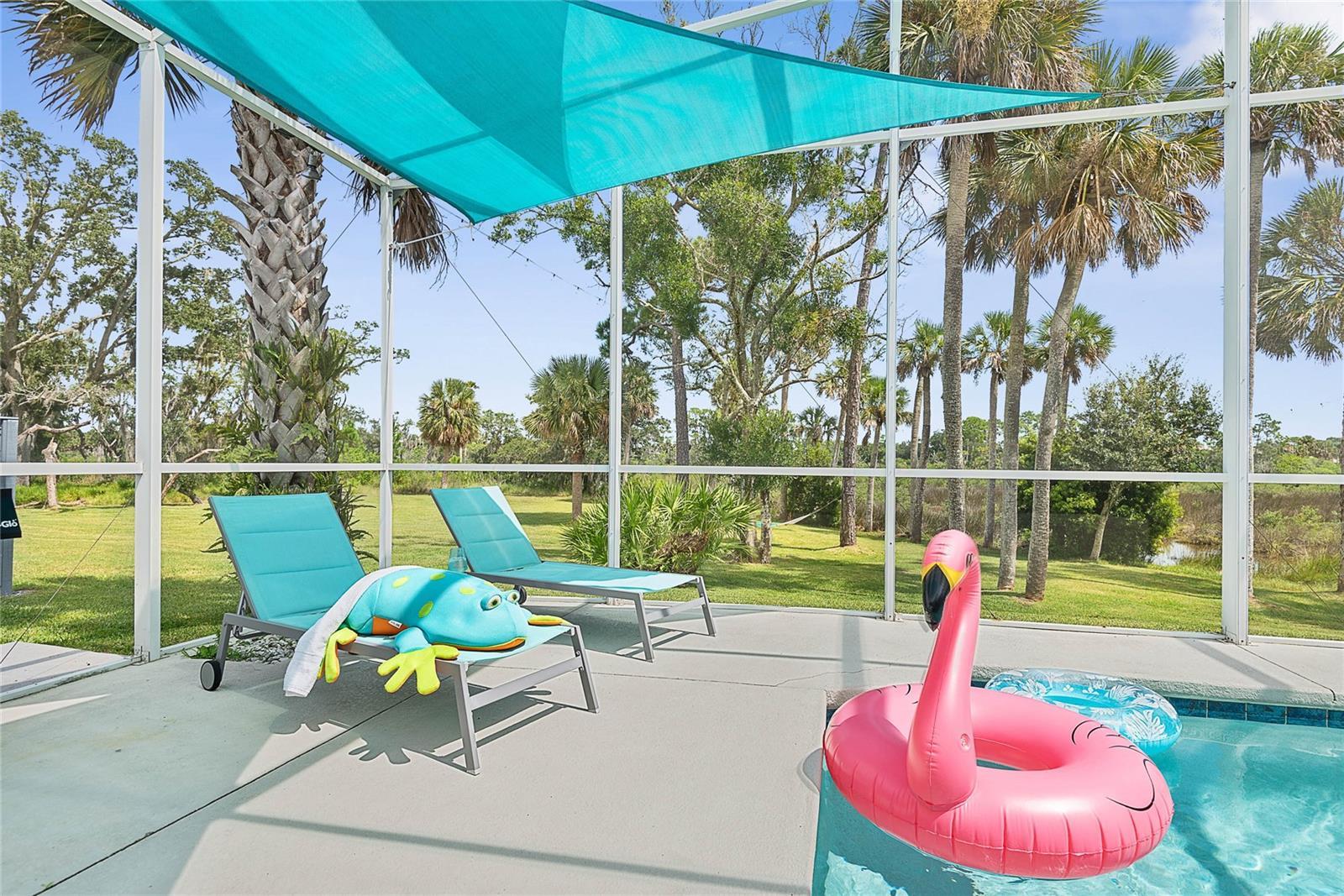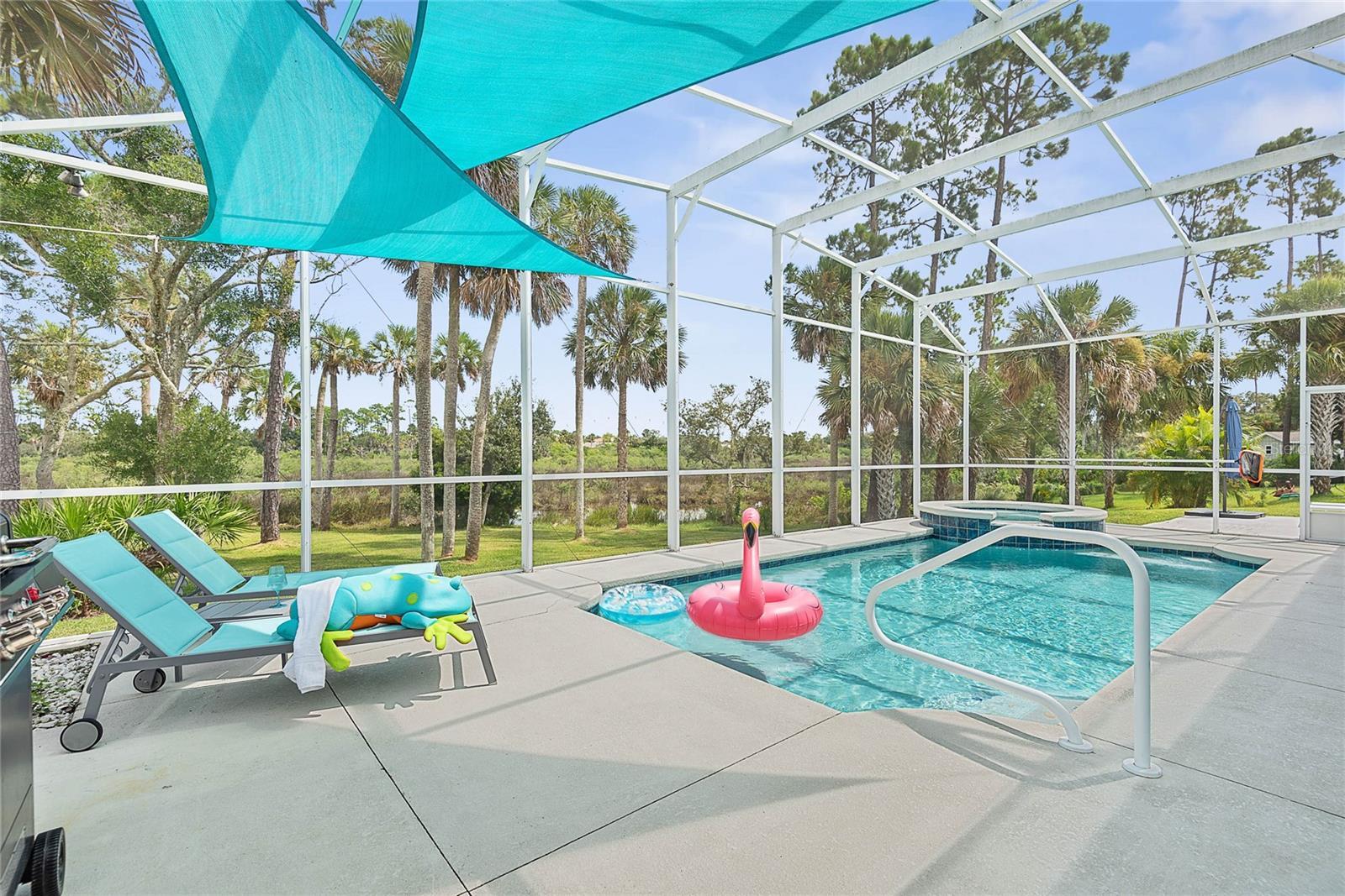 This elegant 5-bedroom, 3.5-bath coastal home was built in 2017 on a half-acre lot with direct views onto Longs Creek Saltwater Marsh. Spanning 2,865 sq ft, the layout is designed for multi-generational living, remote work, or seasonal hosting. Private bedroom wings surround a central Great Room and Chef’s Kitchen, with three dining areas and expansive common space flowing to the screened lanai with pool, spa, BBQ area, and sundecks overlooking the marsh. Offered as a fully equipped, turnkey residence, The Blue Heron includes smart home automation, hurricane protection, luxury finishes, and curated outdoor amenities for immediate occupancy. Whether relocating or seeking a second home near Florida’s beaches, this property delivers comfort, privacy, and modern coastal living. Key Features: - Elegant Living Areas: 10-ft ceilings, custom plantation shutters, open-concept Great Room. - Gourmet Kitchen: Hardwood cabinetry, LED-lit Tru-Cabinetry, large pantry, central island. - Luxurious Bedrooms: Oversized primary suite with walk-in closet and huge spa-like bath, second master/in-law suite with lanai access, Jack-and-Jill guest rooms - High-End Finishes: Luxury plank vinyl flooring, tiled-to-ceiling showers, electric fireplace pre-plumbed for gas - Functional Spaces: Bonus 5th bedroom for office or crafts, motorized hurricane screen for outdoor dining - Outdoor Oasis: Gas-heated saltwater spa, pool, tropical landscaping, wired landscape lighting - Smart & Secure: Smart home automation, owned security system, hurricane curtain - Parking & Storage: Extra-wide driveway, 2-car garage with suspended HVAC, lanai plumbing ready for outdoor kitchen - EV-Ready: RV power point adaptable for electric vehicle charging