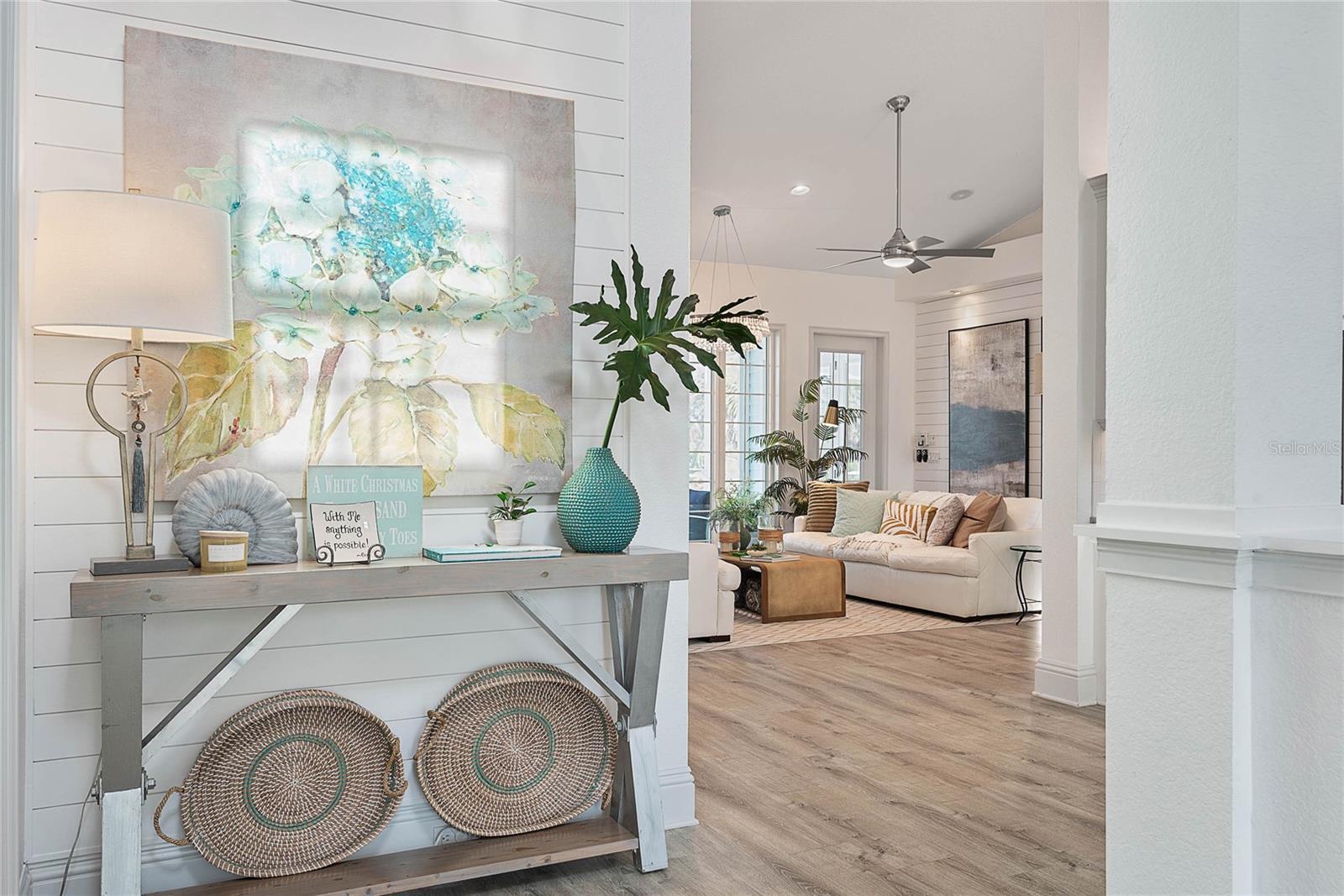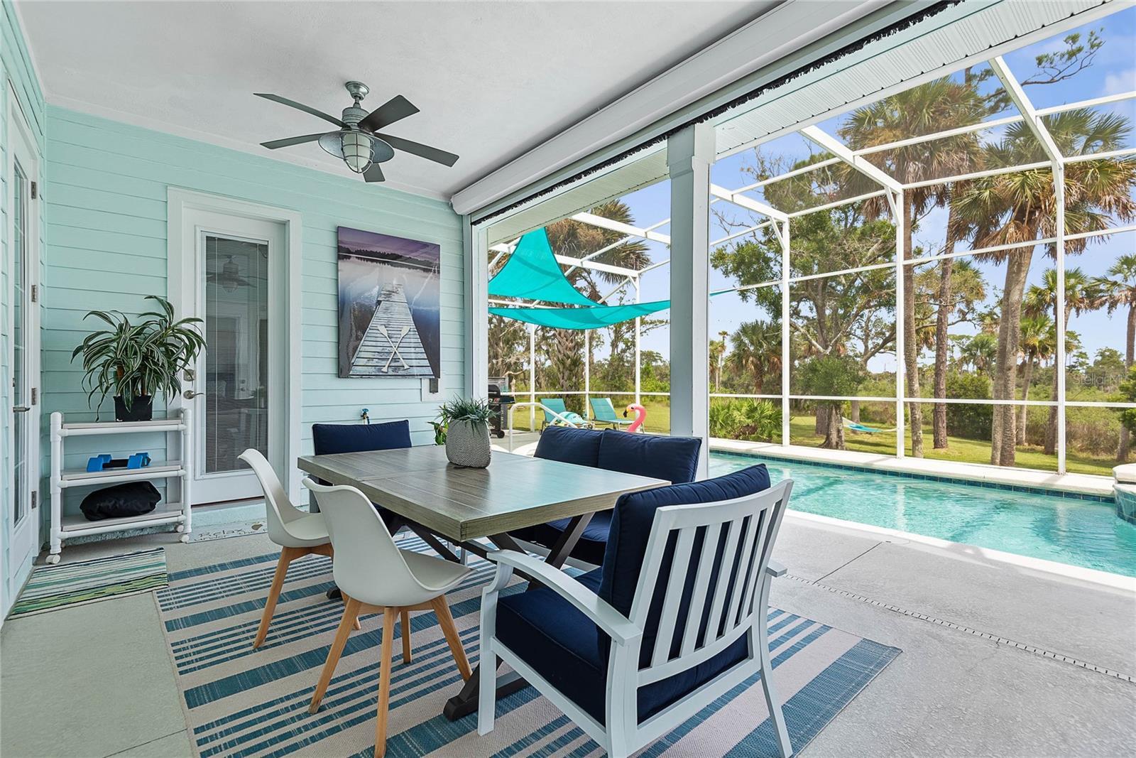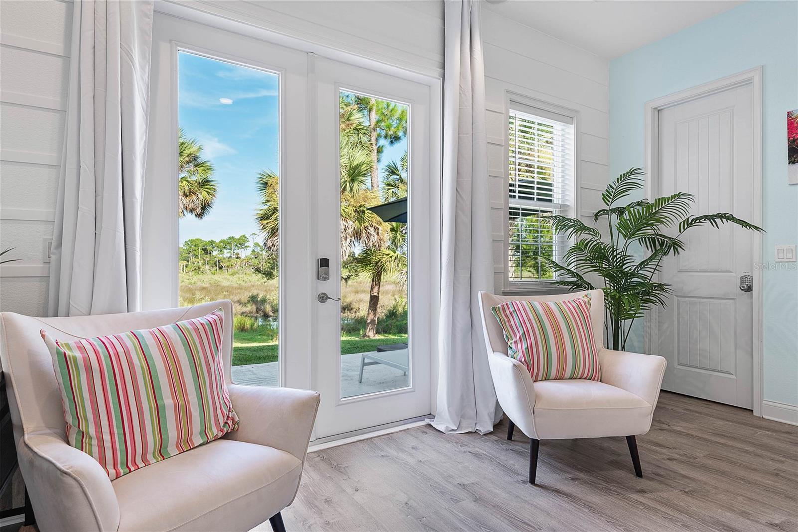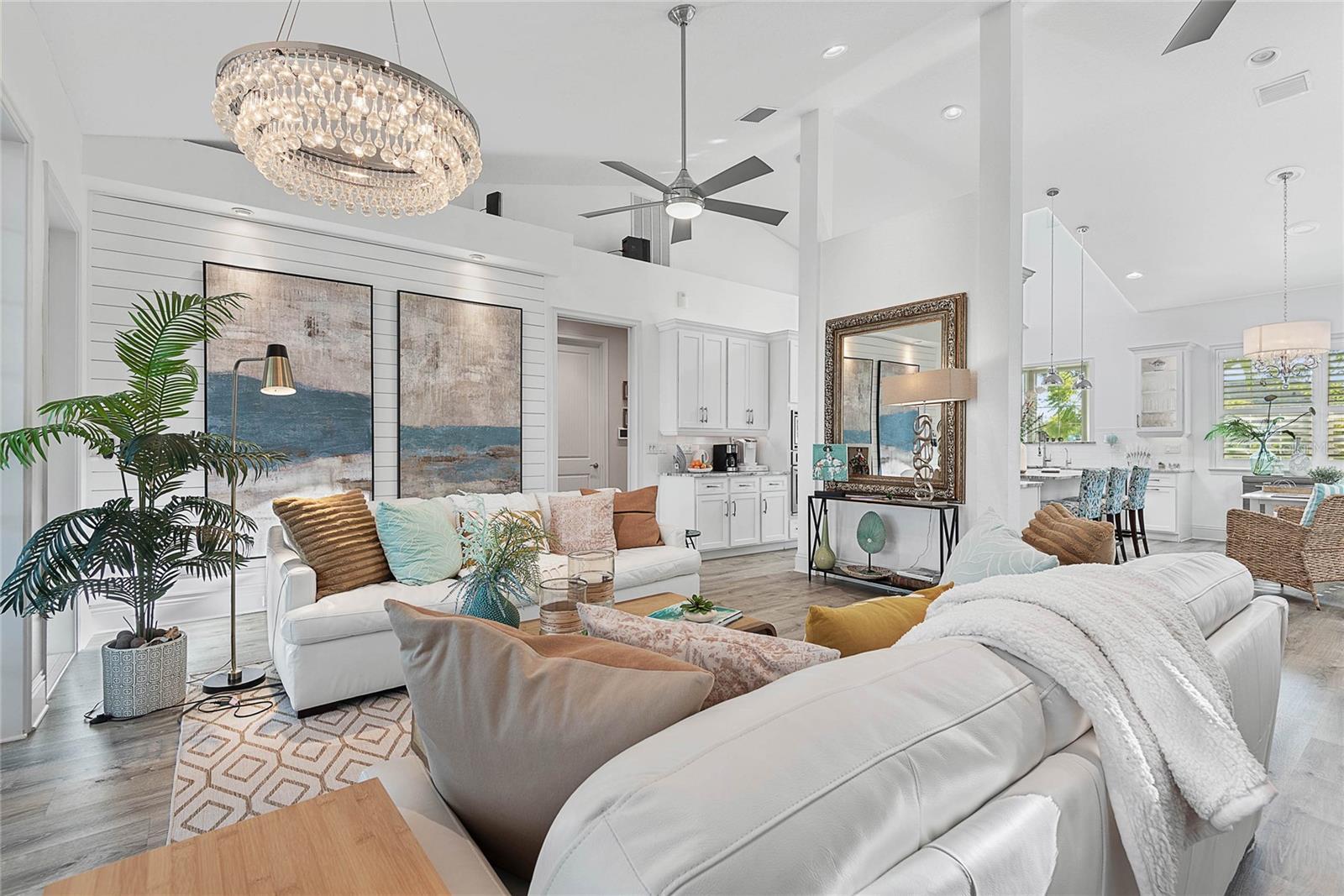 This elegant 5-bedroom, 3.5-bath coastal home was built in 2017 on a half-acre lot with direct views onto Longs Creek Saltwater Marsh. Spanning 2,865 sq ft, the layout is designed for multi-generational living, remote work, or seasonal hosting. Private bedroom wings surround a central Great Room and Chef’s Kitchen, with three dining areas and expansive common space flowing to the screened lanai with pool, spa, BBQ area, and sundecks overlooking the marsh. Offered as a fully equipped, turnkey residence, The Blue Heron includes smart home automation, hurricane protection, luxury finishes, and curated outdoor amenities for immediate occupancy. Whether relocating or seeking a second home near Florida’s beaches, this property delivers comfort, privacy, and modern coastal living. Key Features: - Elegant Living Areas: 10-ft ceilings, custom plantation shutters, open-concept Great Room. - Gourmet Kitchen: Hardwood cabinetry, LED-lit Tru-Cabinetry, large pantry, central island. - Luxurious Bedrooms: Oversized primary suite with walk-in closet and huge spa-like bath, second master/in-law suite with lanai access, Jack-and-Jill guest rooms - High-End Finishes: Luxury plank vinyl flooring, tiled-to-ceiling showers, electric fireplace pre-plumbed for gas - Functional Spaces: Bonus 5th bedroom for office or crafts, motorized hurricane screen for outdoor dining - Outdoor Oasis: Gas-heated saltwater spa, pool, tropical landscaping, wired landscape lighting - Smart & Secure: Smart home automation, owned security system, hurricane curtain - Parking & Storage: Extra-wide driveway, 2-car garage with suspended HVAC, lanai plumbing ready for outdoor kitchen - EV-Ready: RV power point adaptable for electric vehicle charging