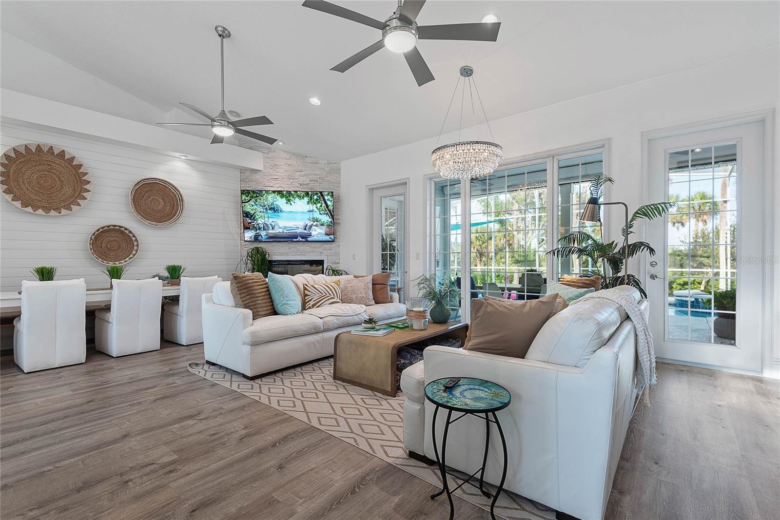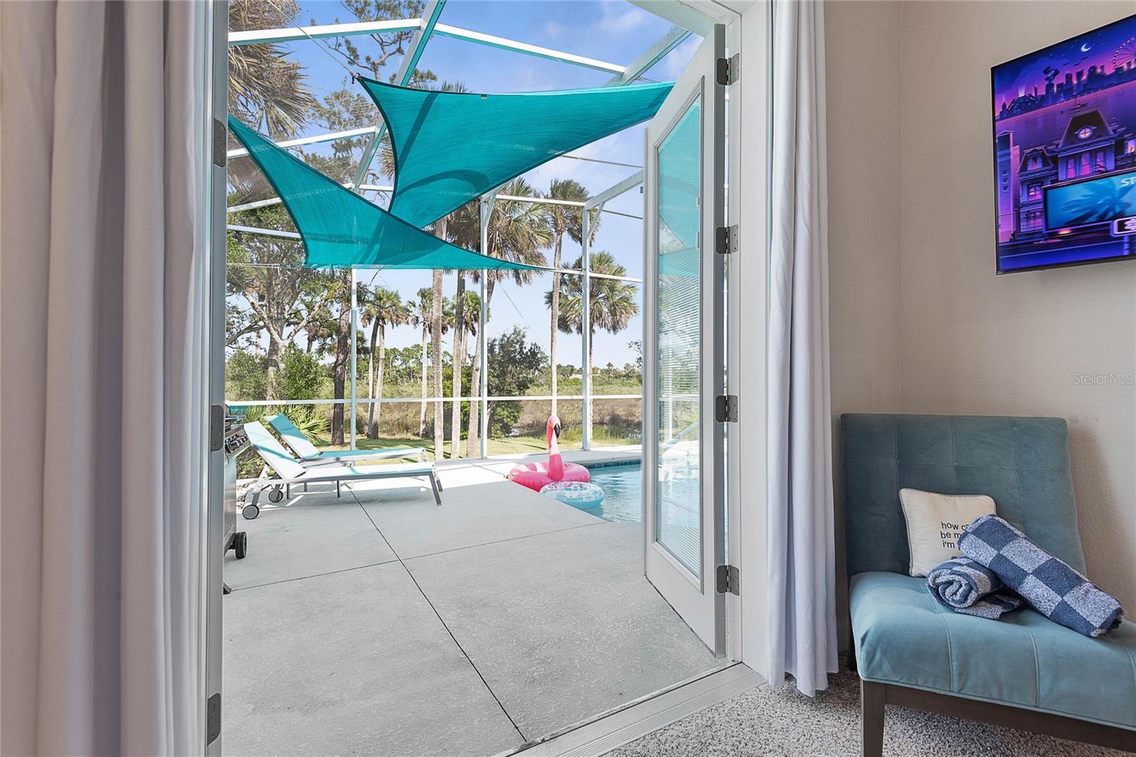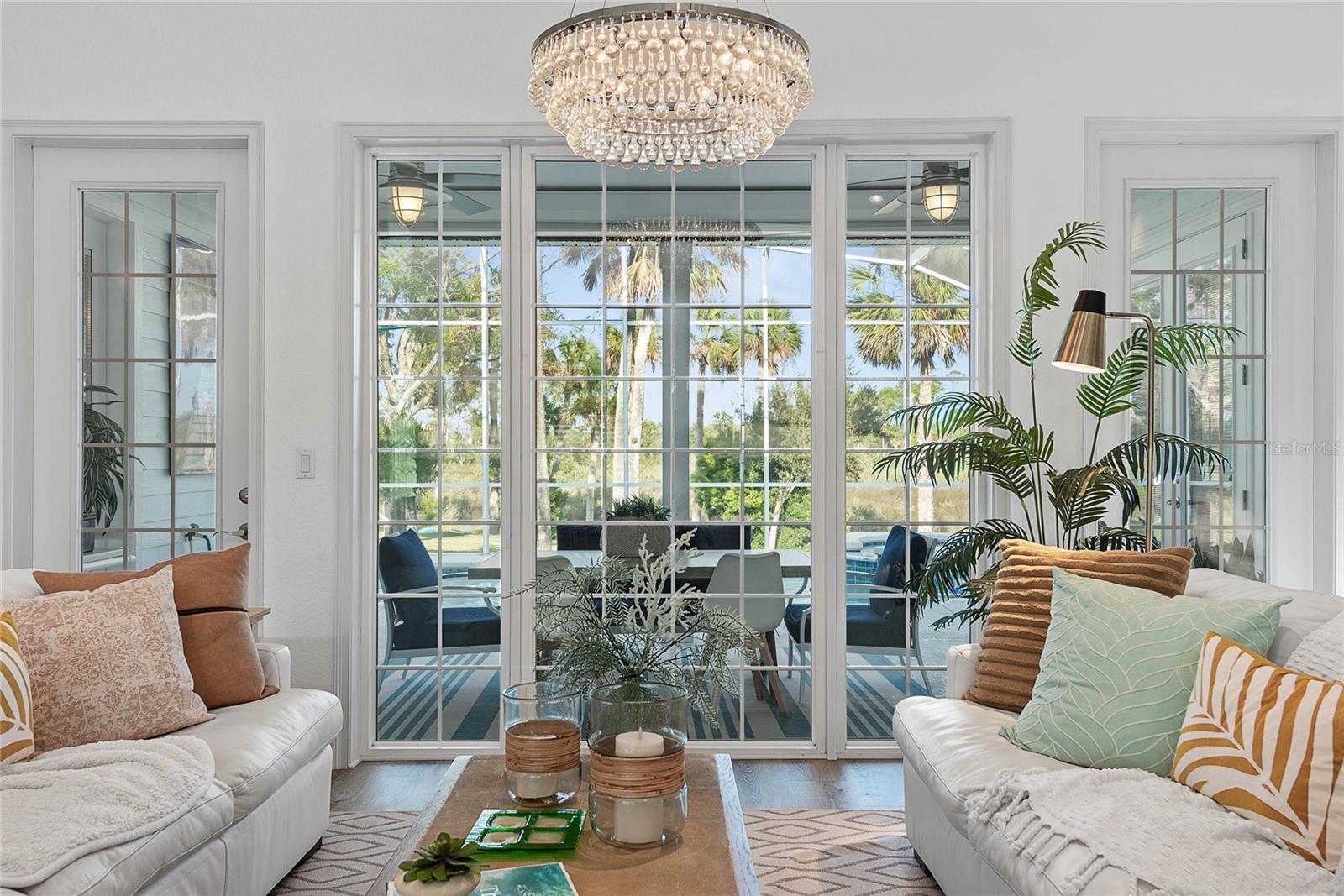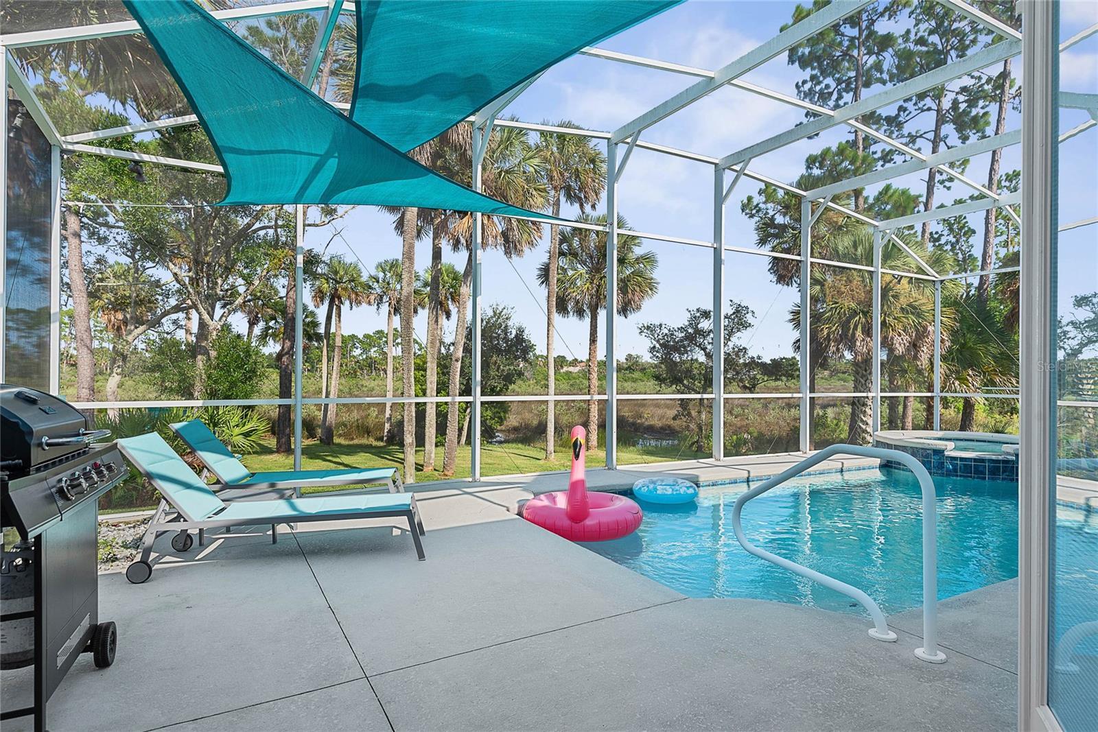 This elegant 5-bedroom, 3.5-bath coastal home was built in 2017 on a half-acre lot with direct views onto Longs Creek Saltwater Marsh. Spanning 2,865 sq ft, the layout is designed for multi-generational living, remote work, or seasonal hosting. Private bedroom wings surround a central Great Room and Chef’s Kitchen, with three dining areas and expansive common space flowing to the screened lanai with pool, spa, BBQ area, and sundecks overlooking the marsh. Offered as a fully equipped, turnkey residence, The Blue Heron includes smart home automation, hurricane protection, luxury finishes, and curated outdoor amenities for immediate occupancy. Whether relocating or seeking a second home near Florida’s beaches, this property delivers comfort, privacy, and modern coastal living. Key Features: - Elegant Living Areas: 10-ft ceilings, custom plantation shutters, open-concept Great Room. - Gourmet Kitchen: Hardwood cabinetry, LED-lit Tru-Cabinetry, large pantry, central island. - Luxurious Bedrooms: Oversized primary suite with walk-in closet and huge spa-like bath, second master/in-law suite with lanai access, Jack-and-Jill guest rooms - High-End Finishes: Luxury plank vinyl flooring, tiled-to-ceiling showers, electric fireplace pre-plumbed for gas - Functional Spaces: Bonus 5th bedroom for office or crafts, motorized hurricane screen for outdoor dining - Outdoor Oasis: Gas-heated saltwater spa, pool, tropical landscaping, wired landscape lighting - Smart & Secure: Smart home automation, owned security system, hurricane curtain - Parking & Storage: Extra-wide driveway, 2-car garage with suspended HVAC, lanai plumbing ready for outdoor kitchen - EV-Ready: RV power point adaptable for electric vehicle charging