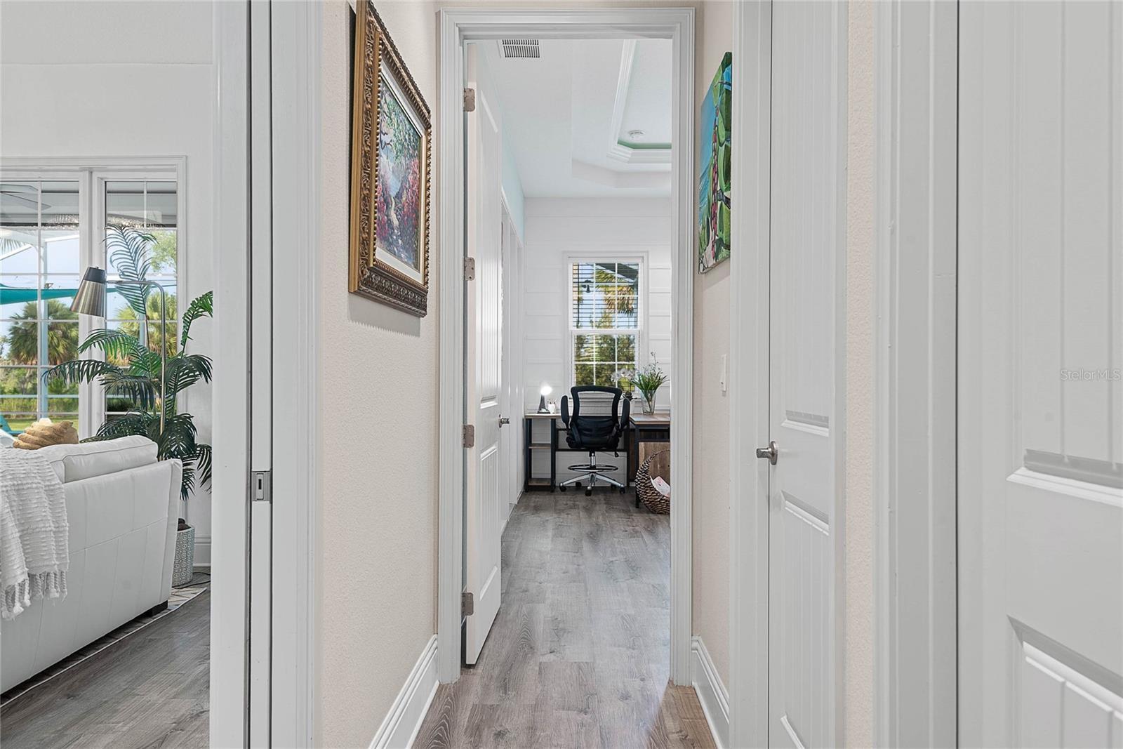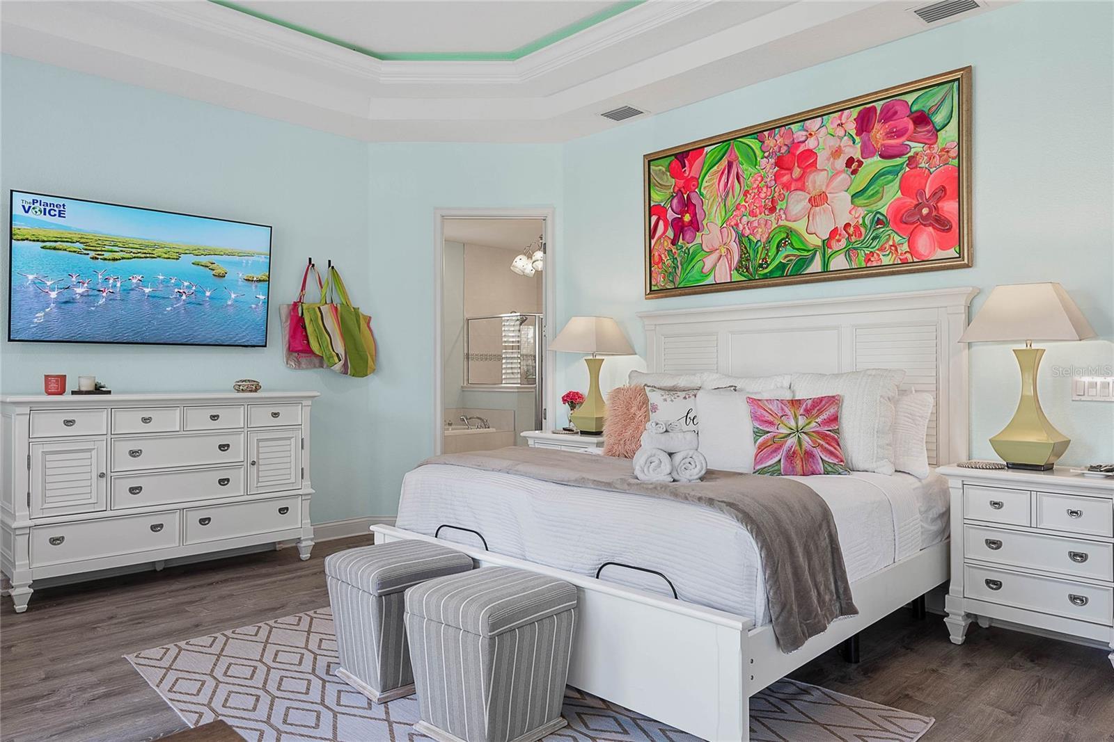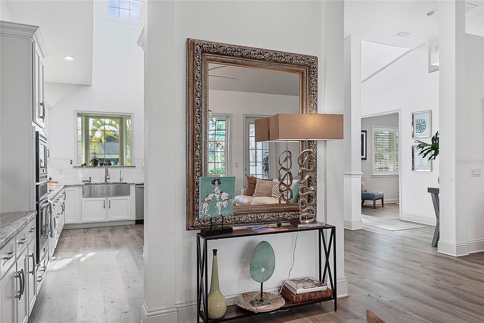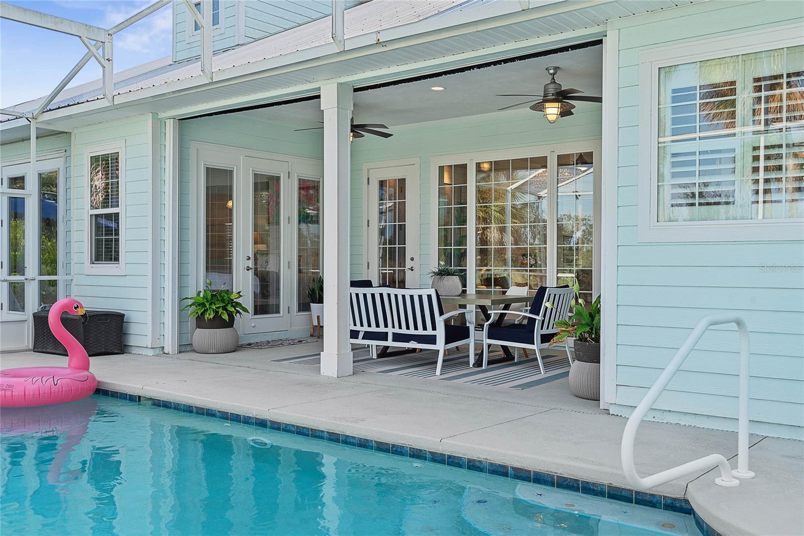 This elegant 5-bedroom, 3.5-bath coastal home was built in 2017 on a half-acre lot with direct views onto Longs Creek Saltwater Marsh. Spanning 2,865 sq ft, the layout is designed for multi-generational living, remote work, or seasonal hosting. Private bedroom wings surround a central Great Room and Chef’s Kitchen, with three dining areas and expansive common space flowing to the screened lanai with pool, spa, BBQ area, and sundecks overlooking the marsh. Offered as a fully equipped, turnkey residence, The Blue Heron includes smart home automation, hurricane protection, luxury finishes, and curated outdoor amenities for immediate occupancy. Whether relocating or seeking a second home near Florida’s beaches, this property delivers comfort, privacy, and modern coastal living. Key Features: - Elegant Living Areas: 10-ft ceilings, custom plantation shutters, open-concept Great Room. - Gourmet Kitchen: Hardwood cabinetry, LED-lit Tru-Cabinetry, large pantry, central island. - Luxurious Bedrooms: Oversized primary suite with walk-in closet and huge spa-like bath, second master/in-law suite with lanai access, Jack-and-Jill guest rooms - High-End Finishes: Luxury plank vinyl flooring, tiled-to-ceiling showers, electric fireplace pre-plumbed for gas - Functional Spaces: Bonus 5th bedroom for office or crafts, motorized hurricane screen for outdoor dining - Outdoor Oasis: Gas-heated saltwater spa, pool, tropical landscaping, wired landscape lighting - Smart & Secure: Smart home automation, owned security system, hurricane curtain - Parking & Storage: Extra-wide driveway, 2-car garage with suspended HVAC, lanai plumbing ready for outdoor kitchen - EV-Ready: RV power point adaptable for electric vehicle charging