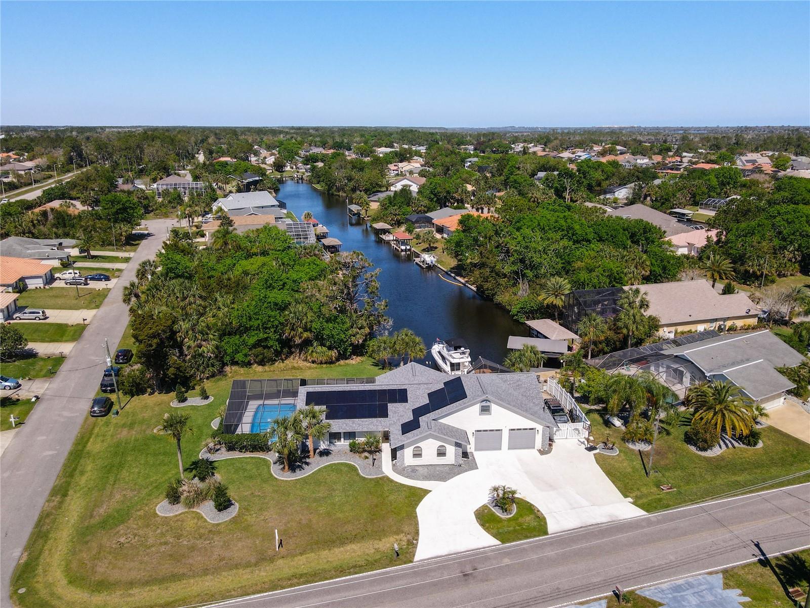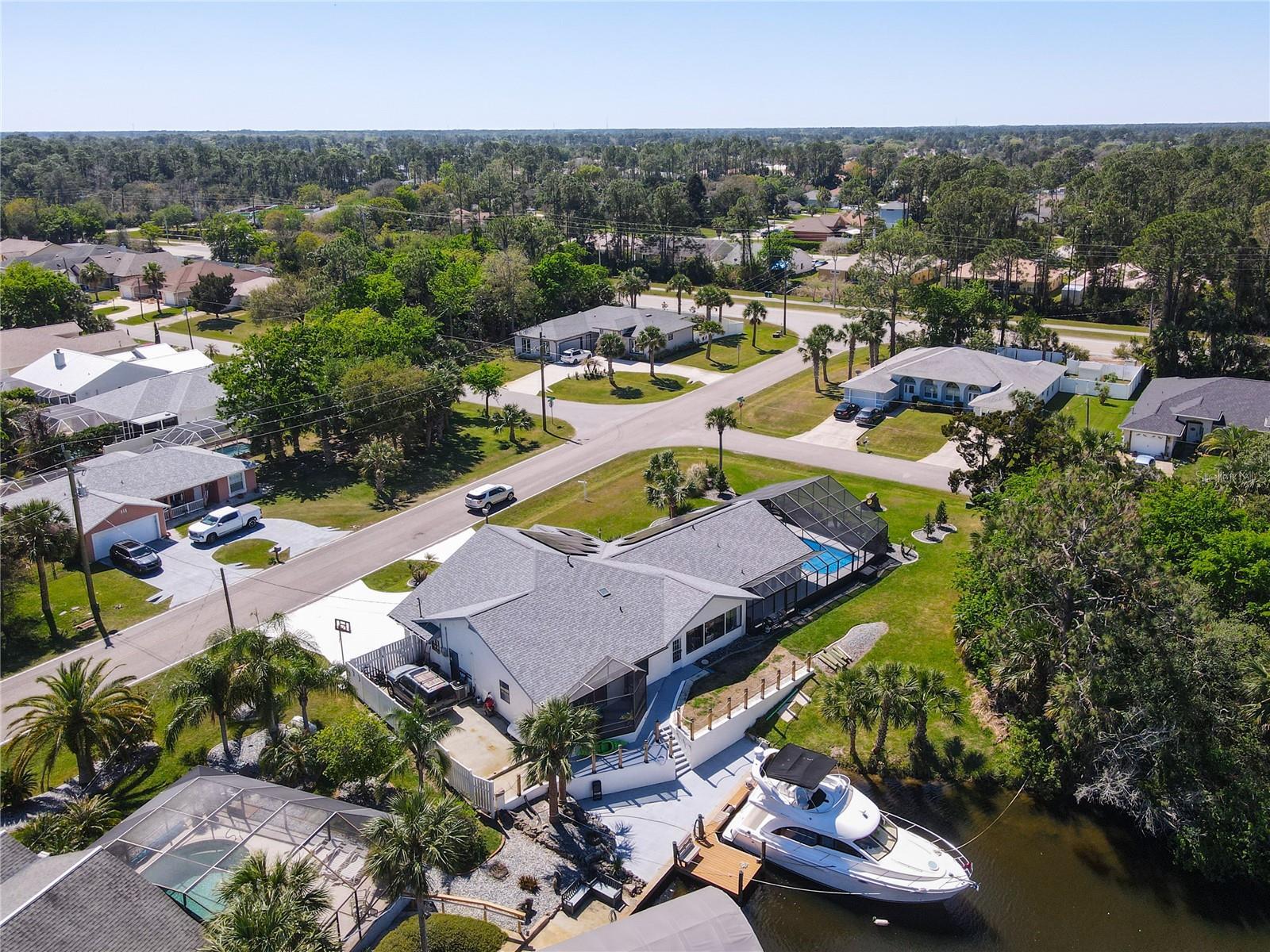 SALT WATERFRONT - POOL - FULLY FURNISHED - SPLIT FLOOR PLAN - / 1 YEAR WARRANTY - / NO CDD or HOA/ MULTIPLE PRIVATE ENTRANCES…This hidden piece of paradise boasts views not expected until you open the front door. This gem is properly positioned on nearly a 16000 square foot CORNER LOT within the very desired Palm Harbor boating community and located at the very end of a Saltwater canal. This Pool home features a new roof in Dec. 2020, Modernized and updated in 2022, and is fully LOADED, to include 5inch baseboards, and crown molding. This beauty includes new electric panels and “Solar Power” as of 2023, kiss your usual FPL bill goodbye. Over 40 feet of saltwater canal frontage and endless sunsets await you at this one-of-a-kind, fully custom, Ol’ Florida Ranch Style Home, with a coastal appeal. Why wait for the inconsistency and stressors of a new build? This home WARRANTY covers ALL major appliances, effective for 1 year from closing. Lush and well-manicured, mature lawn and landscape… No more looking across the waterway at your neighbor… Bottomless waterfront views from all north facing interior areas. Did I mention an optional expandable back yard buildable and with an additional 70 foot of frontage?? Be sure to ask your real estate professional for more details. This modern home offers a re-finished and oversized screened-in pool 2022, with 2 completely separated screened in lanai areas, 2 master ensuites (both on level 1), one of the masters overlooking the end of the salt canal, a large private ensuite or bonus room upstairs (this room and its access could easily be a separate apartment). Large dining area and oversized fully renovated kitchen with plenty of counter space and DOUBLE ovens!! The elongated tile flooring throughout, make it very easy to maintain. Boaters’ paradise! Freshly dredged dockage 12’ out from seawall, 15’ wide fully protected slip and an installed dock service finger, dock built of composite decking. Independent 110 power at the dock, and separate 50-amp service. Just a 20-30min. float to the mouth of the Atlantic Intracoastal Waterway. This setup will accommodate a boat 15 foot tall, 14 foot wide, up to 40 foot long, with a draft of under 4 foot. Large circular driveway for plenty of parking, and if you run out of space, no problem... There’s a fenced in 48’ long concrete pad for your overflow. Propane Gas on site for laundry and hot water. Insulated garage doors and finished garage floor allows for ease of use. Extra Large finished attic space with pull down pocket stairs. Come claim your slice of paradise. Approximately 2 miles east of I-95 and 3 miles east of US Highway 1. A-ranked schools, shopping and award-winning beaches just minutes from your front door. Regardless of what your needs are, this home makes it possible: Air BnB, multi-family use, vacation home, or simply your primary residence, this beauty and its unique floor plan makes it ALL possible. Why go to the beachside and combat XE flood zones, when you can benefit from the pleasure of the salt canal with an X flood designation (less homeowners insurance costs). Why pay double or triple in taxes? This is home, and the custom floor plan does not repeat anywhere locally. Please note this property is one of the final remaining available structures in this part of Palm Coast. Once these are gone there will be NO additional neighborhoods built on these canals. Hurry, schedule your showing and then come see why this one fits.