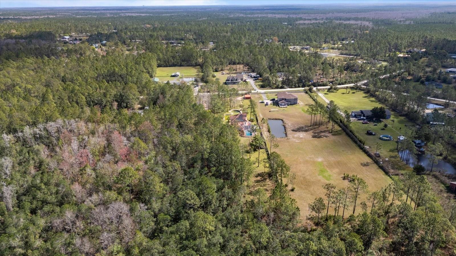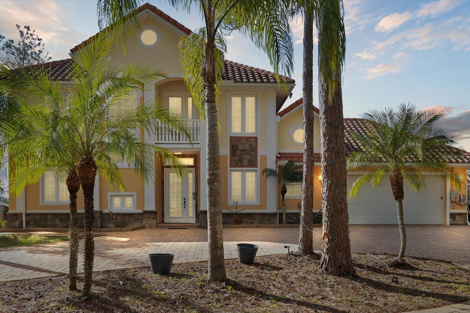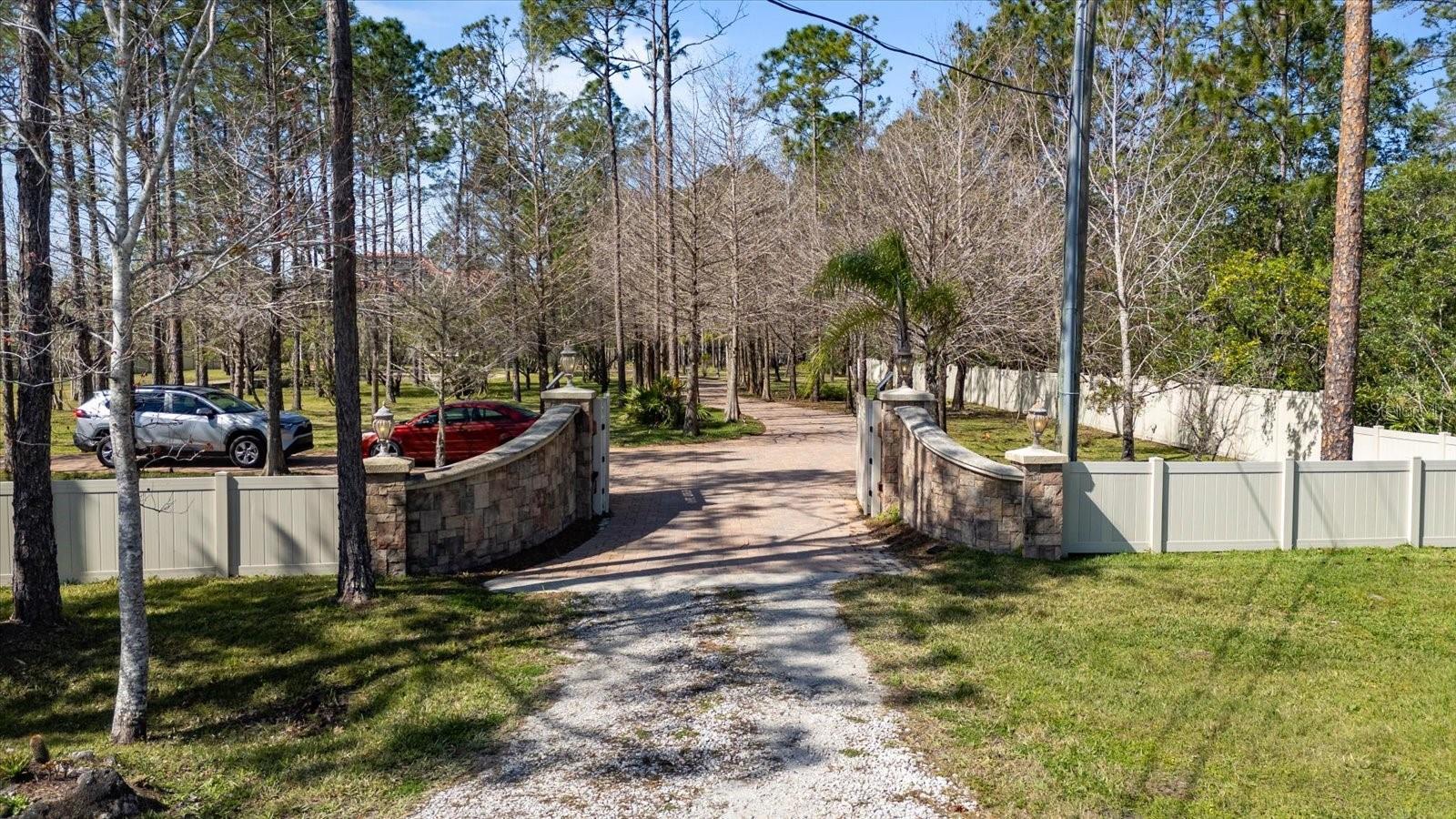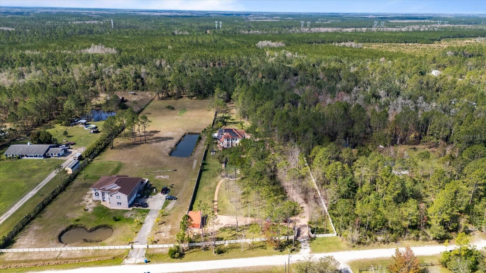 Nestled on just under 6 acres of unspoiled land, this exquisite and private residence offers the perfect blend of elegance and tranquility. As you approach the property, you'll be greeted by a grand gated entrance, with a charming pavered driveway leading you past a serene man-made pond. The 2008 custom-built Spanish-inspired home offers both comfort and style boasting 5 spacious bedrooms, 5.5 baths, and an oversized two-car garage. Inside, the home features a welcoming living room, a dining room, and a cozy den just off the foyer. The bright and airy enclosed Florida room is an ideal spot to unwind in the afternoons. With one bedroom located on the first floor and the remaining four on the second, each with its own private bath, everyone in the family (or your guests) can enjoy their own space and privacy. The third floor offers a versatile bonus room that can be transformed into a home theater, playroom, or private office. The kitchen is a chef's dream, featuring tall maple cabinetry, a center island with a sink, double ovens, and a convenient warming shelf. A spacious walk-in pantry provides ample storage. The kitchen offers easy access to the dining room, hallway, and opens up to the pool area, making it perfect for both cooking and entertaining. Outside, the expansive pool area is fully screened and includes a newly built sitting area, perfect for outdoor gatherings or simply enjoying the beautiful surroundings. The home is also equipped with a Photovoltaic Solar System, significantly lowering your electric bills—so much so that at times FPL may even pay you for the energy it produces. Come see this stunning home for yourself and choose the bedroom that best fits your lifestyle—whether you prefer a sun-drenched retreat or a room with its own private walk-out balcony. This home truly offers something for everyone.