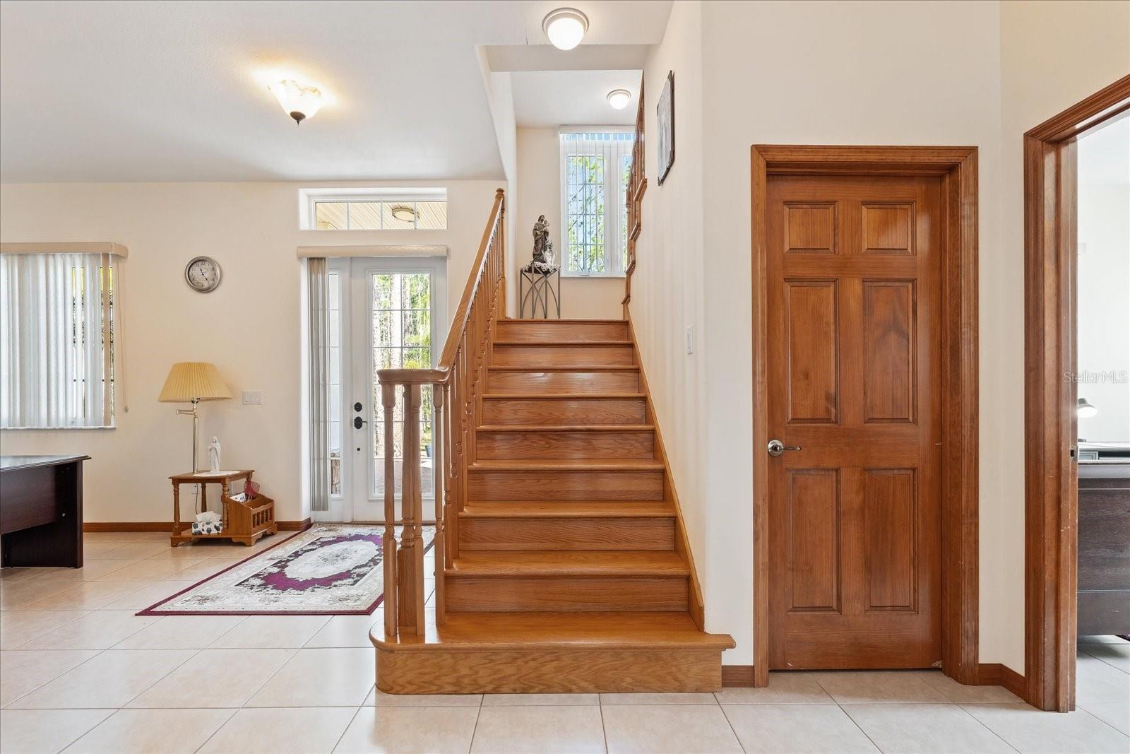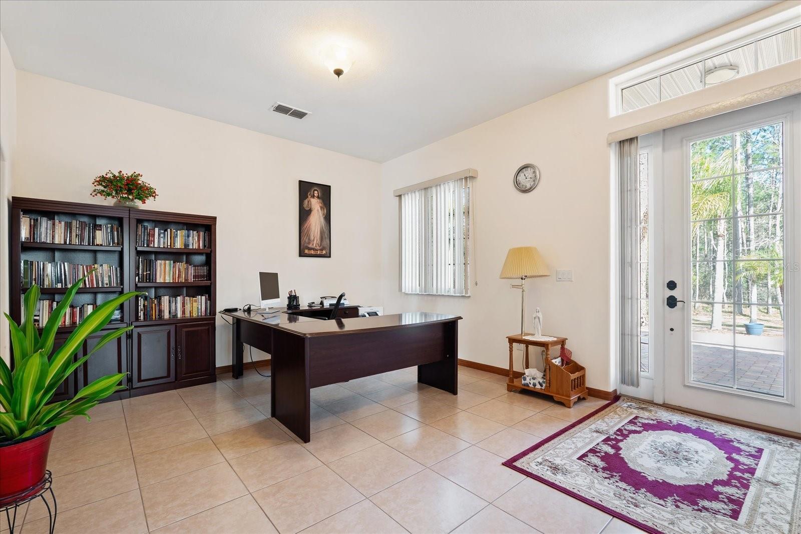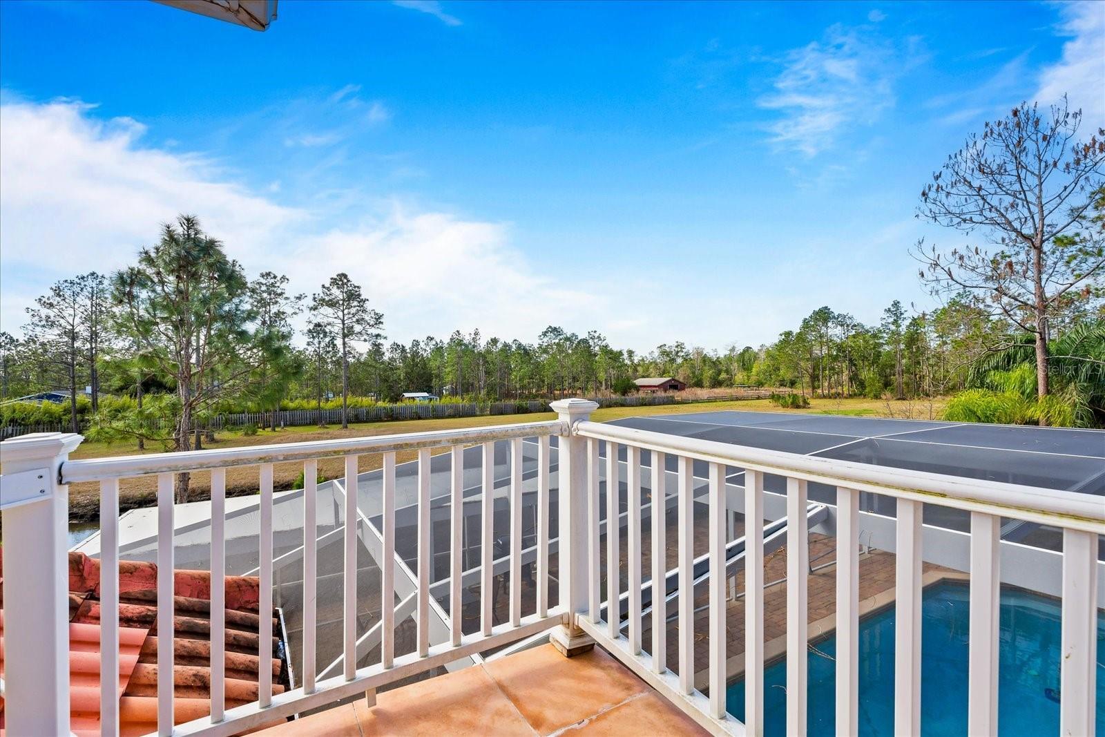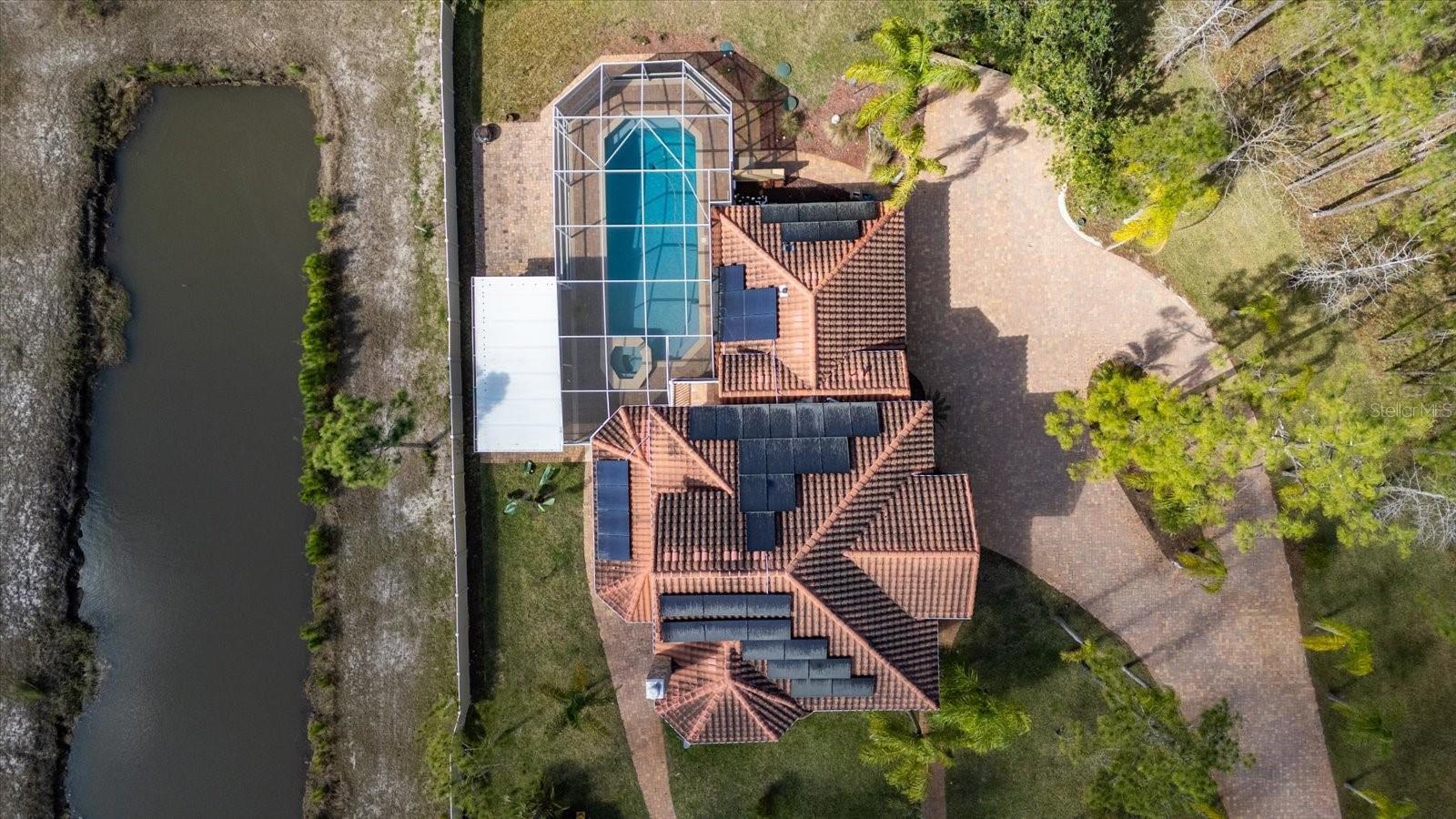 Nestled on just under 6 acres of unspoiled land, this exquisite and private residence offers the perfect blend of elegance and tranquility. As you approach the property, you'll be greeted by a grand gated entrance, with a charming pavered driveway leading you past a serene man-made pond. The 2008 custom-built Spanish-inspired home offers both comfort and style boasting 5 spacious bedrooms, 5.5 baths, and an oversized two-car garage. Inside, the home features a welcoming living room, a dining room, and a cozy den just off the foyer. The bright and airy enclosed Florida room is an ideal spot to unwind in the afternoons. With one bedroom located on the first floor and the remaining four on the second, each with its own private bath, everyone in the family (or your guests) can enjoy their own space and privacy. The third floor offers a versatile bonus room that can be transformed into a home theater, playroom, or private office. The kitchen is a chef's dream, featuring tall maple cabinetry, a center island with a sink, double ovens, and a convenient warming shelf. A spacious walk-in pantry provides ample storage. The kitchen offers easy access to the dining room, hallway, and opens up to the pool area, making it perfect for both cooking and entertaining. Outside, the expansive pool area is fully screened and includes a newly built sitting area, perfect for outdoor gatherings or simply enjoying the beautiful surroundings. The home is also equipped with a Photovoltaic Solar System, significantly lowering your electric bills—so much so that at times FPL may even pay you for the energy it produces. Come see this stunning home for yourself and choose the bedroom that best fits your lifestyle—whether you prefer a sun-drenched retreat or a room with its own private walk-out balcony. This home truly offers something for everyone.