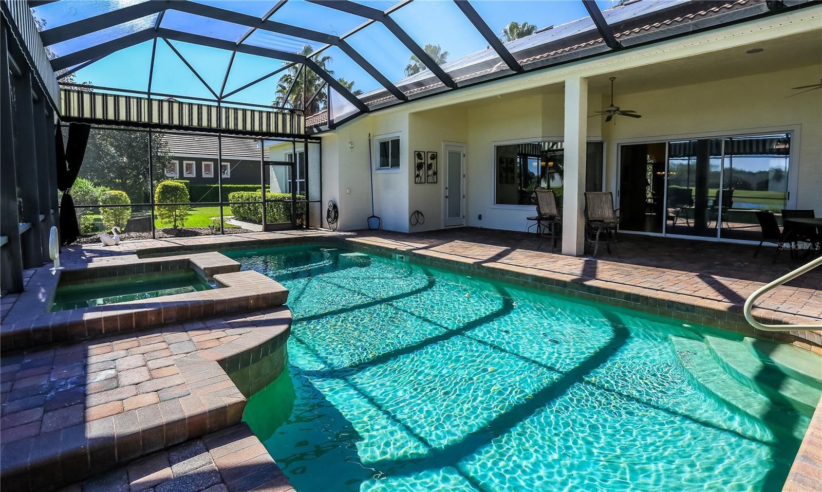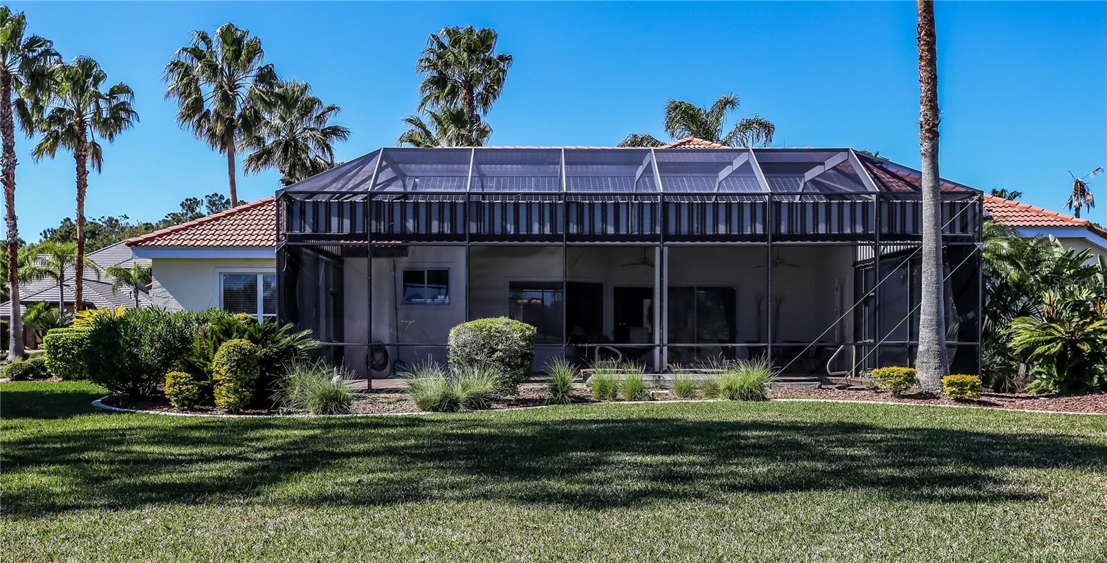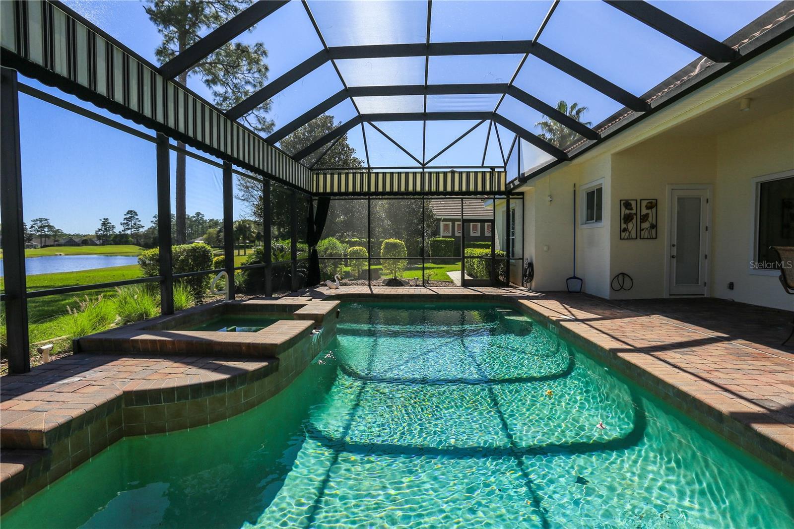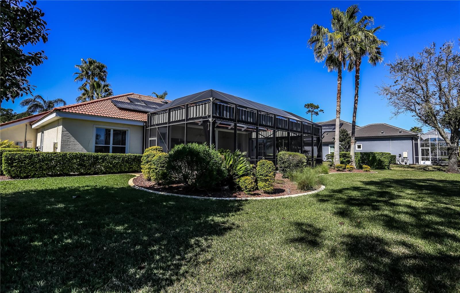 Under contract-accepting backup offers. Come experience this custom built, 3 bed - 2 1/2 bath home, located in the Plantation Bay community. Natural light fills the home throughout the day, and you'll even see an occasional rocket launch over the pond out back. The spacious built-in home office will be perfect for anyone who either works from home or just likes a quiet room to relax in. Guest bedrooms are on the opposite side of the home from the primary bedroom, and the laundry room is closer to the garage. Both the solar panels on the roof and tank less water heater provide top rate energy efficiency for the home. The outdoor patio by the pool can be accessed from the primary bedroom, the sliders in the living room, or from another door exiting a guest bedroom. The over-sized garage can fit 2 cars as well as a golf cart. There are also custom cabinets and work areas in the garage, which underscores the effective use of space throughout the home. This fully landscaped move-in ready home is located on a quiet cul-de-sac, with a view of 5th hole on Prestwick. Fear not about incoming golf balls - the large backyard and screened in lanai will bring piece of mind while you're floating in the pool or relaxing in the Jacuzzi. Besides, most who hit the ball that far off course have already taken up Pickle Ball. Membership to Plantation Bay Country Club is required to use all amenities including both clubhouses, the golf courses, tennis courts, pools, gym, and Cabana.