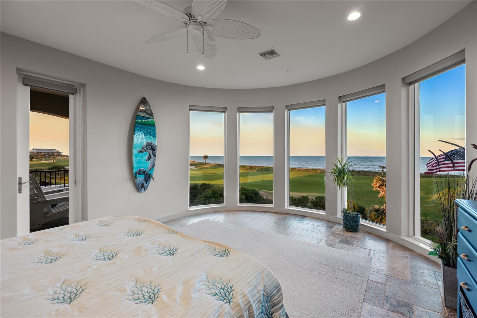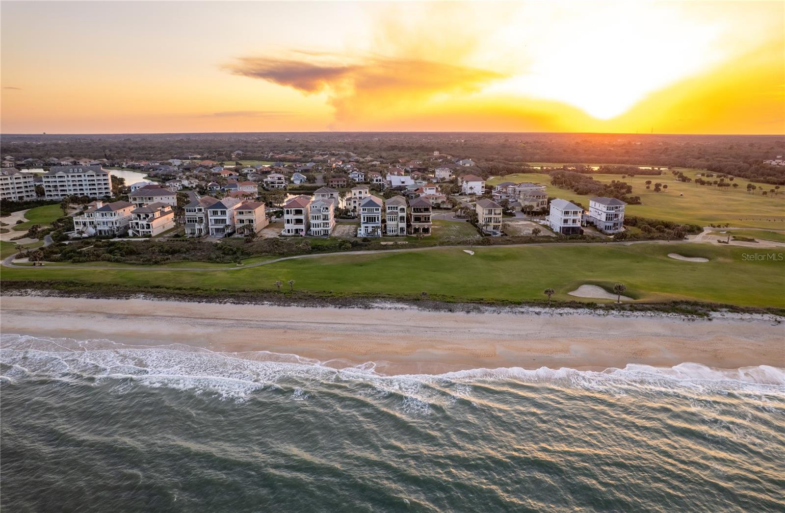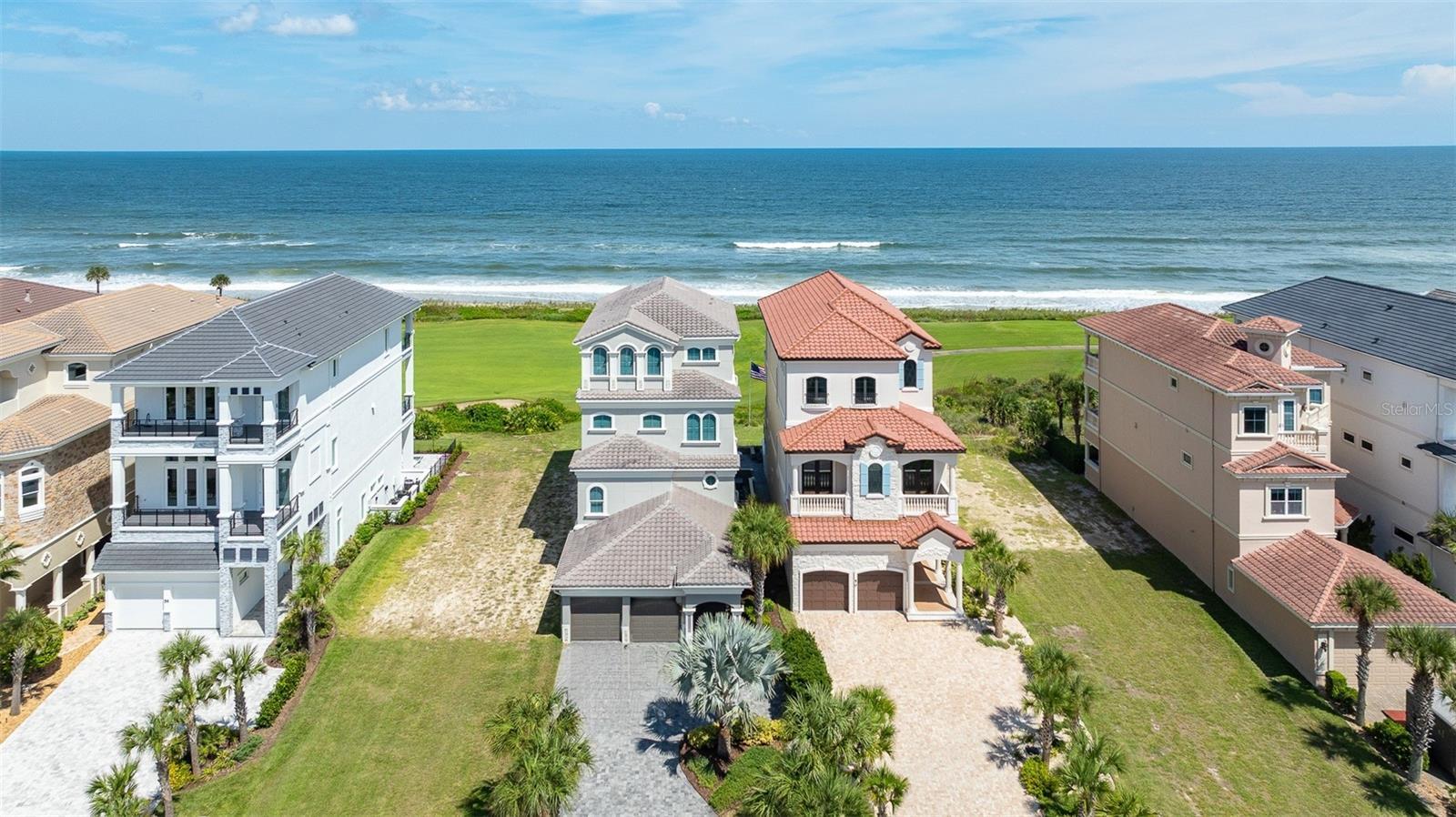 Welcome to 52 Hammock Beach Circle, where modern luxury meets coastal elegance. This 4-level home, built in 2018, offers over 6,600 sq. ft. of sophisticated living space with travertine flooring throughout. The first floor features a custom bar, cozy living room with fireplace, and a unique media room, ideal for entertaining. A whole-house generator, along with a built-in sprinkler system for fireproof protection, and a whole-house water filtration system, provide added peace of mind and ensure both safety and comfort. The second floor hosts four spacious suites, two with ocean views and a private balcony, along with a wet bar and laundry room. The third floor is an entertainer’s dream with an open-concept dining room, great room, and chef-inspired kitchen with Sub-Zero appliances, walk-in pantry, and central island. The additional living space, nestled in a captivating half-moon design, features stunning custom windows and a built-in rounded bench seat, offering the perfect retreat to relax while gazing at the serene ocean waves. The fourth floor features a private owner's suite with panoramic ocean views, an office, and a private laundry room. Step into the luxurious shower with a rain head faucet above and multiple body sprays, creating a spa-like experience at home. An elevator provides easy access to all levels. Controlled by an Apple Home system, this smart home integrates sound and automation for seamless living. With direct oceanfront access, stunning golf course views, and luxury amenities, this home offers the finest coastal lifestyle. The outdoor space at 52 Hammock Beach Circle is an entertainer’s paradise, offering both oceanfront and golf course views. Enjoy al fresco dining at the outdoor cooking center, or unwind by the firepit on the brick paver deck. The outdoor area is perfect for relaxation or hosting gatherings. Additionally, the home is just a short walk from a private community pool, available exclusively to the neighborhood's residents, offering an extra touch of luxury and convenience. Located in a well-maintained village with landscaping and irrigation included in the HOA fees, this home offers low-maintenance living. Membership to Hammock Beach is available to add to your beachfront living experience, allowing you to join the exclusive Hammock Beach Golf Resort & Spa. Enjoy world-class amenities, including the Jack Nicklaus-designed Ocean Course and the award-winning Conservatory Course by Tom Watson. The 91,000 sq. ft. Pool Complex features a water flume, lazy river, and eight delicious dining options with ocean views, including a signature restaurant. Indulge in the luxury spa, recognized as one of "The World's Top 50 Tennis Resorts" and a "2024 Silver Medal Tennis and Pickleball Resort" by Tennis Resorts Online. Enjoy eight lighted Hydro-Grid clay tennis courts, four brand-new regulation pickleball courts overlooking the Intracoastal Waterway, and a state-of-the-art fitness center with both cardio and weight training equipment.