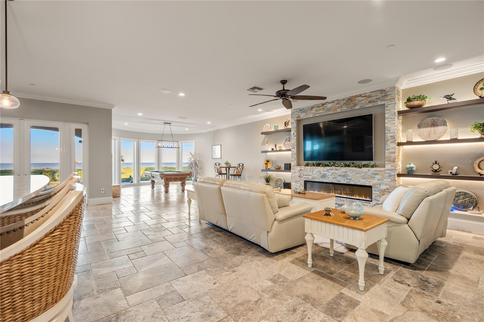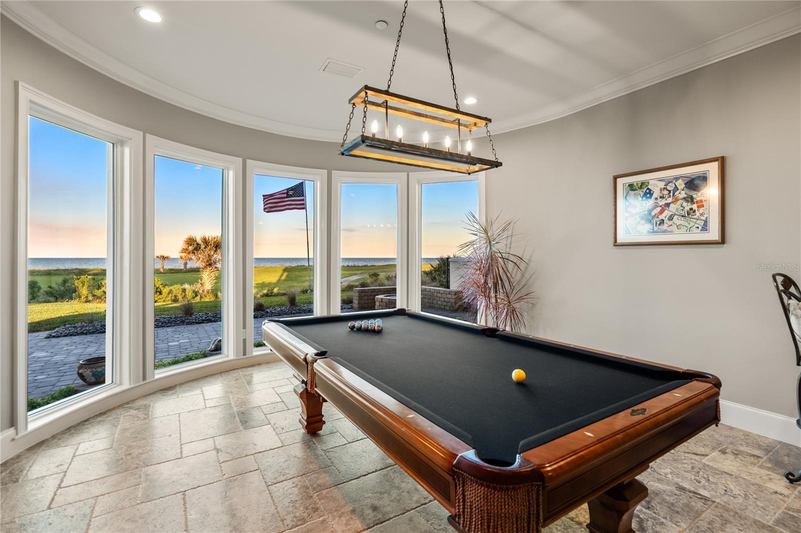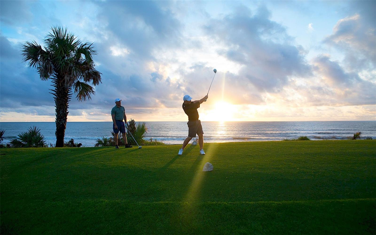 Welcome to 52 Hammock Beach Circle, where modern luxury meets coastal elegance. This 4-level home, built in 2018, offers over 6,600 sq. ft. of sophisticated living space with travertine flooring throughout. The first floor features a custom bar, cozy living room with fireplace, and a unique media room, ideal for entertaining. A whole-house generator, along with a built-in sprinkler system for fireproof protection, and a whole-house water filtration system, provide added peace of mind and ensure both safety and comfort. The second floor hosts four spacious suites, two with ocean views and a private balcony, along with a wet bar and laundry room. The third floor is an entertainer’s dream with an open-concept dining room, great room, and chef-inspired kitchen with Sub-Zero appliances, walk-in pantry, and central island. The additional living space, nestled in a captivating half-moon design, features stunning custom windows and a built-in rounded bench seat, offering the perfect retreat to relax while gazing at the serene ocean waves. The fourth floor features a private owner's suite with panoramic ocean views, an office, and a private laundry room. Step into the luxurious shower with a rain head faucet above and multiple body sprays, creating a spa-like experience at home. An elevator provides easy access to all levels. Controlled by an Apple Home system, this smart home integrates sound and automation for seamless living. With direct oceanfront access, stunning golf course views, and luxury amenities, this home offers the finest coastal lifestyle. The outdoor space at 52 Hammock Beach Circle is an entertainer’s paradise, offering both oceanfront and golf course views. Enjoy al fresco dining at the outdoor cooking center, or unwind by the firepit on the brick paver deck. The outdoor area is perfect for relaxation or hosting gatherings. Additionally, the home is just a short walk from a private community pool, available exclusively to the neighborhood's residents, offering an extra touch of luxury and convenience. Located in a well-maintained village with landscaping and irrigation included in the HOA fees, this home offers low-maintenance living. Membership to Hammock Beach is available to add to your beachfront living experience, allowing you to join the exclusive Hammock Beach Golf Resort & Spa. Enjoy world-class amenities, including the Jack Nicklaus-designed Ocean Course and the award-winning Conservatory Course by Tom Watson. The 91,000 sq. ft. Pool Complex features a water flume, lazy river, and eight delicious dining options with ocean views, including a signature restaurant. Indulge in the luxury spa, recognized as one of "The World's Top 50 Tennis Resorts" and a "2024 Silver Medal Tennis and Pickleball Resort" by Tennis Resorts Online. Enjoy eight lighted Hydro-Grid clay tennis courts, four brand-new regulation pickleball courts overlooking the Intracoastal Waterway, and a state-of-the-art fitness center with both cardio and weight training equipment.