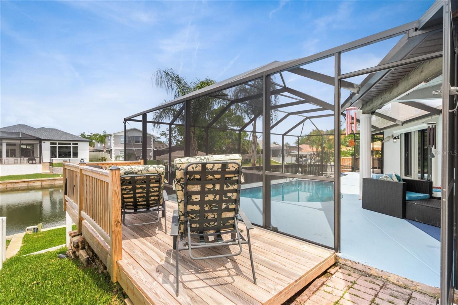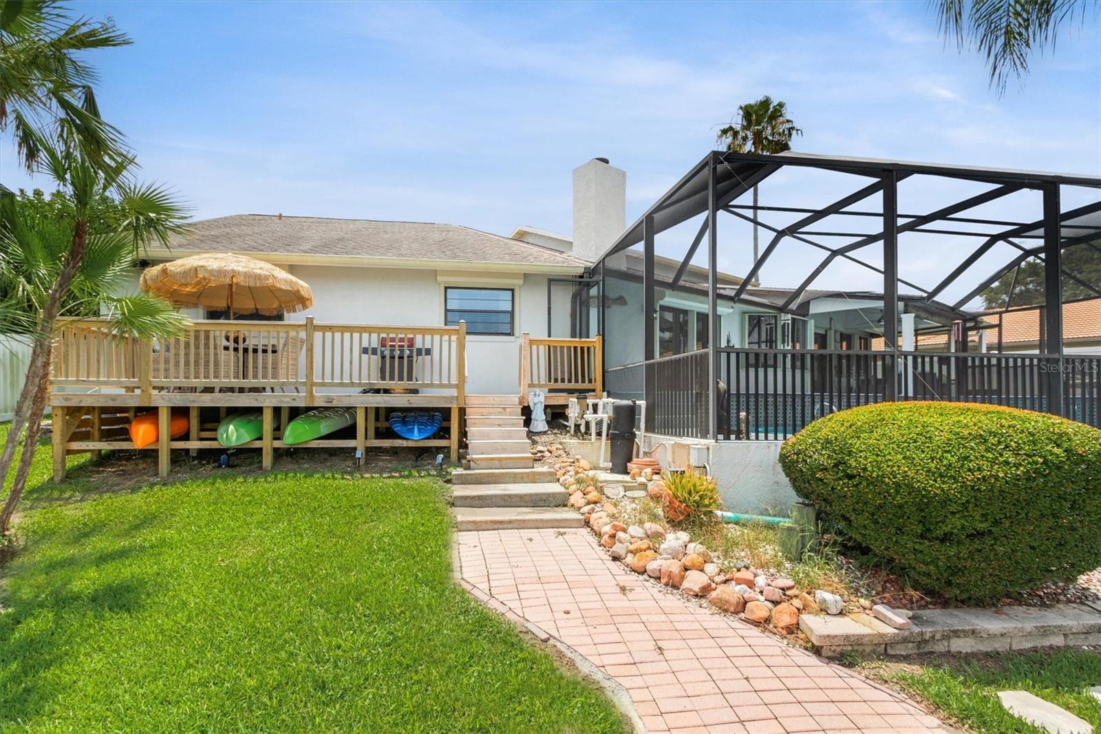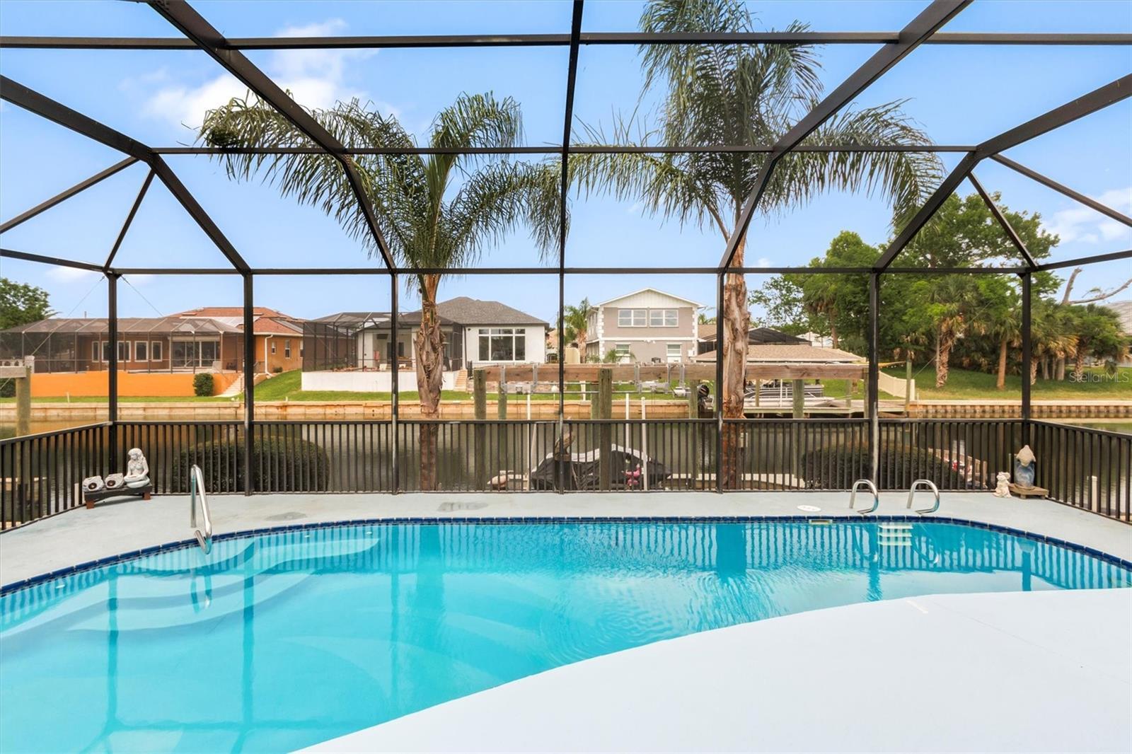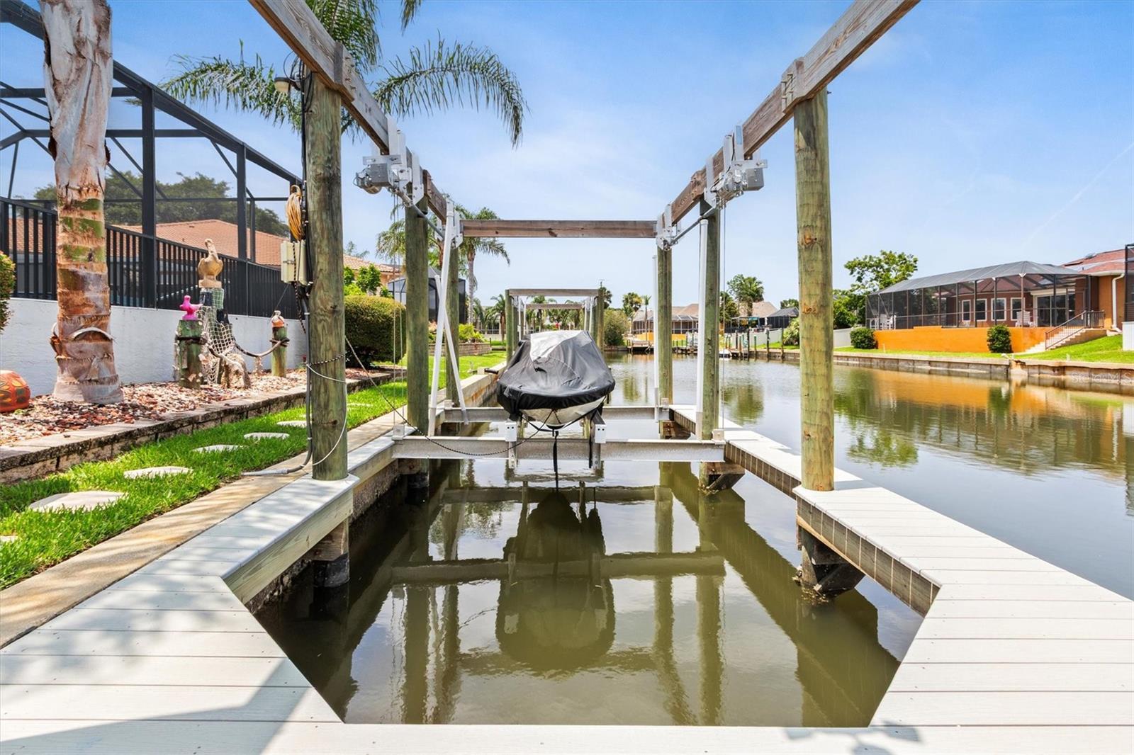 Tucked away at the end of a peaceful cul-de-sac, this beautifully updated canal-front residence offers the quintessential Florida lifestyle with deep water access, a private dock, boat lift, and screened-in pool—ideal for year-round enjoyment. With 4 bedrooms, 2 bathrooms, and 2,558 square feet of well-appointed living space, this home is designed for comfort, entertaining, and effortless indoor-outdoor living. Step inside to a light-filled interior with vaulted ceilings and an inviting open floor plan. The spacious living room features a cozy fireplace and seamlessly connects to the dining area and chef’s kitchen—complete with stainless steel appliances, granite countertops, and a built-in wine fridge. Sliding glass doors lead to a screened lanai with a covered porch, perfect for alfresco dining or relaxing poolside while enjoying tranquil water views. The primary suite is a private sanctuary offering serene views of the canal, a generous walk-in closet, and a spa-like en suite bath with a walk-in shower and dual vanity. Three additional bedrooms and a stylishly renovated full bath provide ample space for family or guests. Outside, kayak and paddleboard storage beneath the deck makes it easy to embrace waterfront adventures. With no HOA restrictions, the property also presents an excellent opportunity for vacation or short-term rental use. Located in sought-after Sailboat Country—where deep water and no fixed bridges mean unrestricted boating—this rare waterfront gem is just minutes from the beach, boutique shopping, and local dining. A lifestyle of ease, elegance, and coastal adventure awaits.