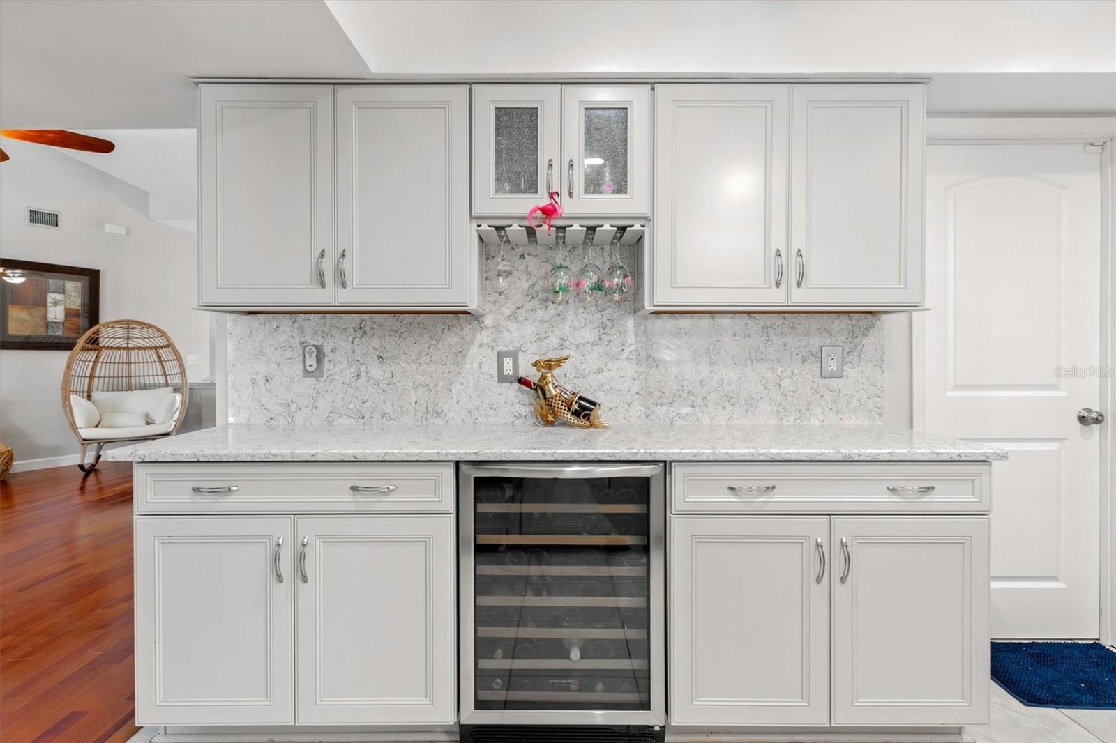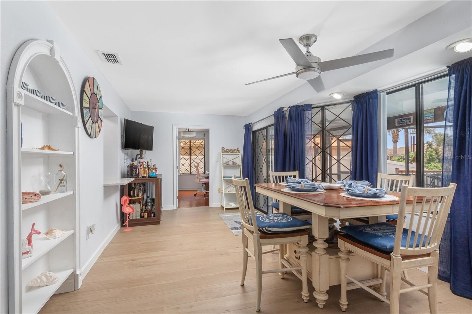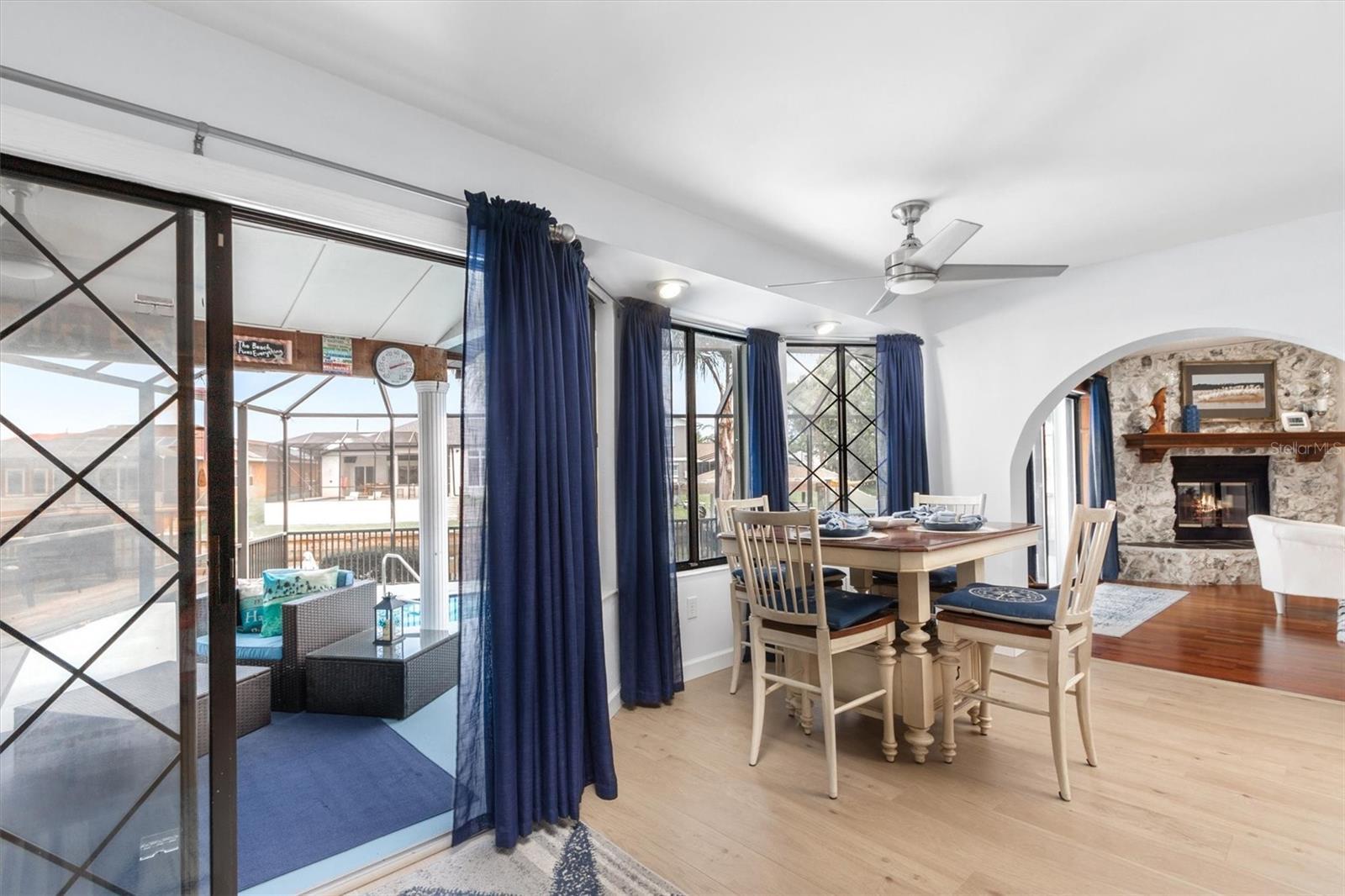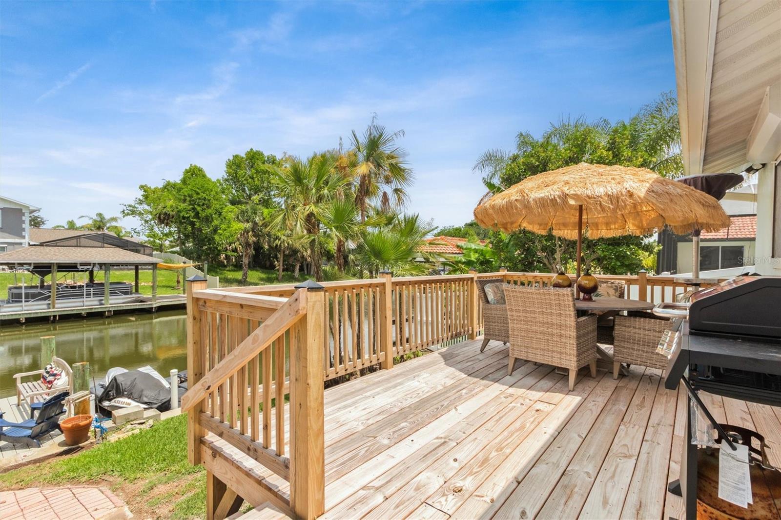 Tucked away at the end of a peaceful cul-de-sac, this beautifully updated canal-front residence offers the quintessential Florida lifestyle with deep water access, a private dock, boat lift, and screened-in pool—ideal for year-round enjoyment. With 4 bedrooms, 2 bathrooms, and 2,558 square feet of well-appointed living space, this home is designed for comfort, entertaining, and effortless indoor-outdoor living. Step inside to a light-filled interior with vaulted ceilings and an inviting open floor plan. The spacious living room features a cozy fireplace and seamlessly connects to the dining area and chef’s kitchen—complete with stainless steel appliances, granite countertops, and a built-in wine fridge. Sliding glass doors lead to a screened lanai with a covered porch, perfect for alfresco dining or relaxing poolside while enjoying tranquil water views. The primary suite is a private sanctuary offering serene views of the canal, a generous walk-in closet, and a spa-like en suite bath with a walk-in shower and dual vanity. Three additional bedrooms and a stylishly renovated full bath provide ample space for family or guests. Outside, kayak and paddleboard storage beneath the deck makes it easy to embrace waterfront adventures. With no HOA restrictions, the property also presents an excellent opportunity for vacation or short-term rental use. Located in sought-after Sailboat Country—where deep water and no fixed bridges mean unrestricted boating—this rare waterfront gem is just minutes from the beach, boutique shopping, and local dining. A lifestyle of ease, elegance, and coastal adventure awaits.