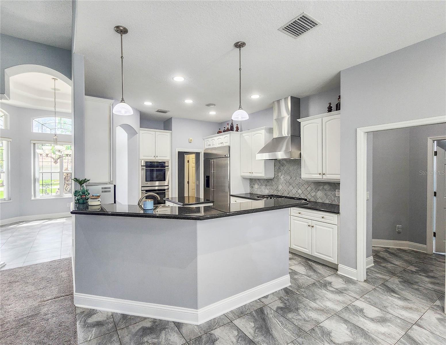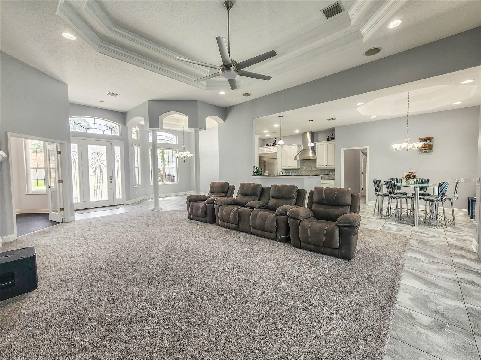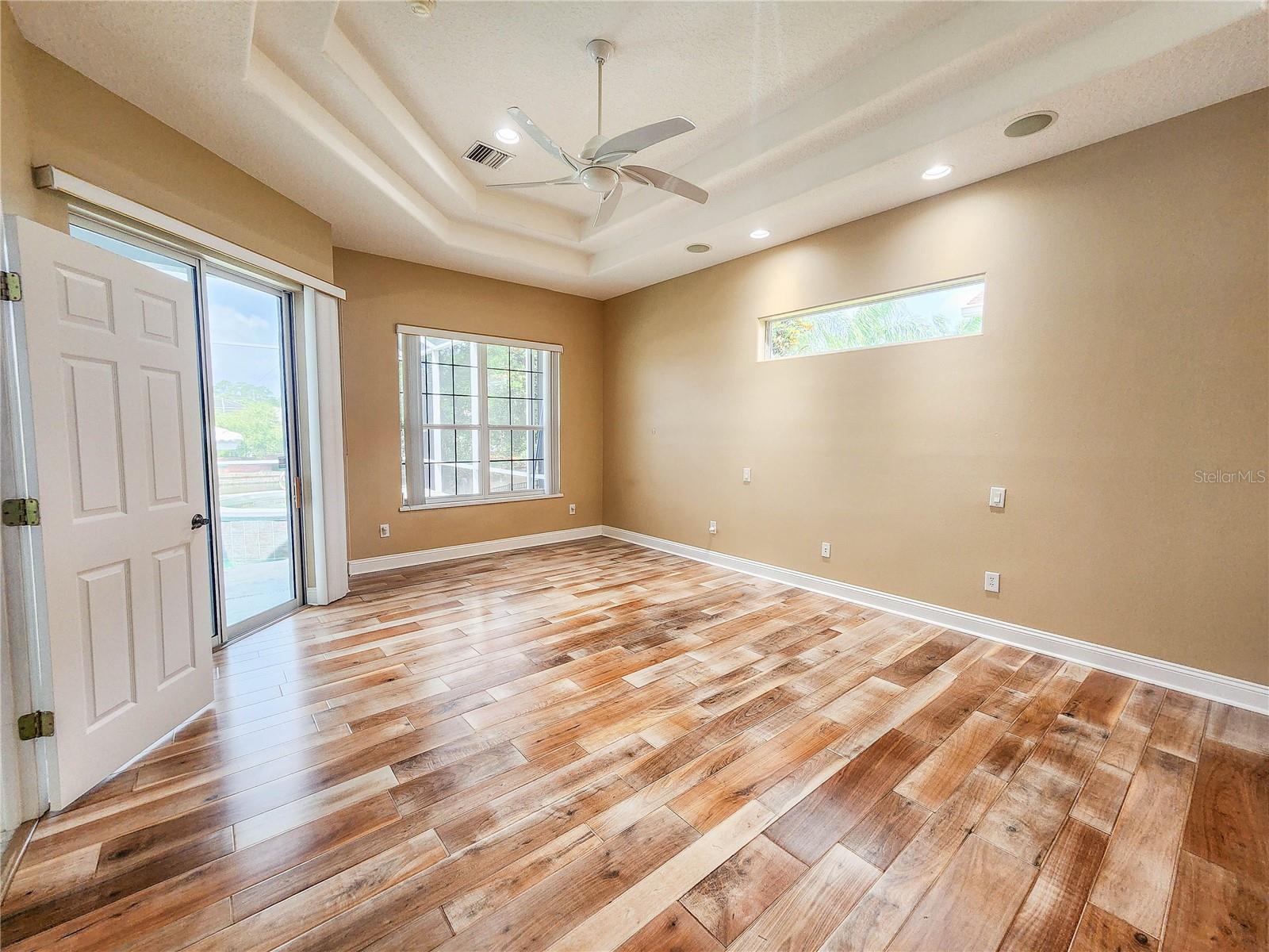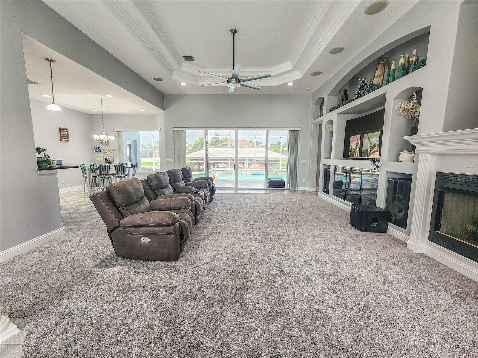 - Built-in Features, Ceiling Fans(s), Kitchen/Family Room Combo, Open Floorplan, Solid Surface Counters, Split Bedroom, Thermostat, Tray Ceiling(s), Vaulted Ceiling(s), Walk-In Closet(s)