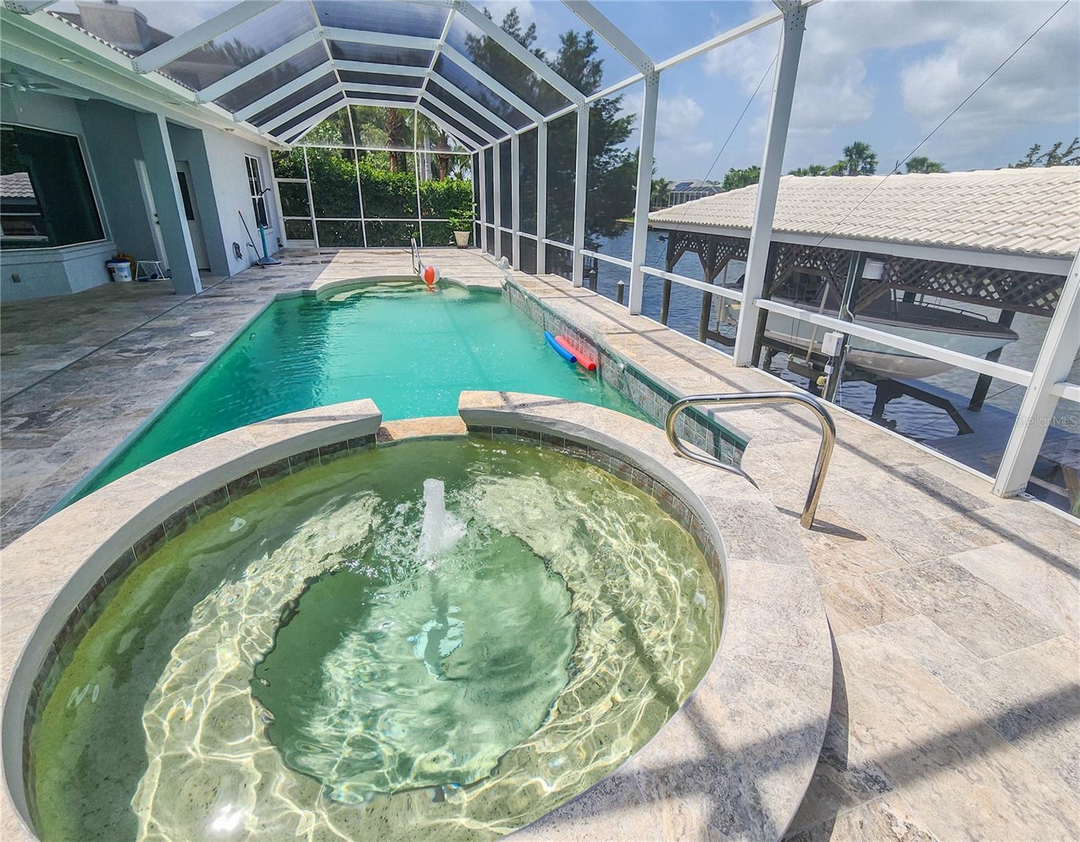 Step inside this one-of-a-kind Pool Home located on Saltwater canal with a boat dock, boat lift and lounge area on the water. Tile Roof! This split open floor concept will make every resident comfortable and excited to call this beautiful place their home! 4 bedrooms and 2.5 bathrooms with ample space and functionality. Views of the water seen from primary bedroom, great room, breakfast nook and second guest bedroom. Custom closets in the primary bedroom with built in shelfs. Modern kitchen with sub-zero fridge and built in double oven. Granite kitchen counter tops and island space in the middle allows for multitude of workable space available to create masterpiece dishes. Gas range and new range hood will assist with all your tough cooking! AC is 2013 and maintained each year. Hot water heater is under 3 years old. This home is located on a cul de sec/dead end street with minimal traffic. Schedule your private tour today to not miss this gem!