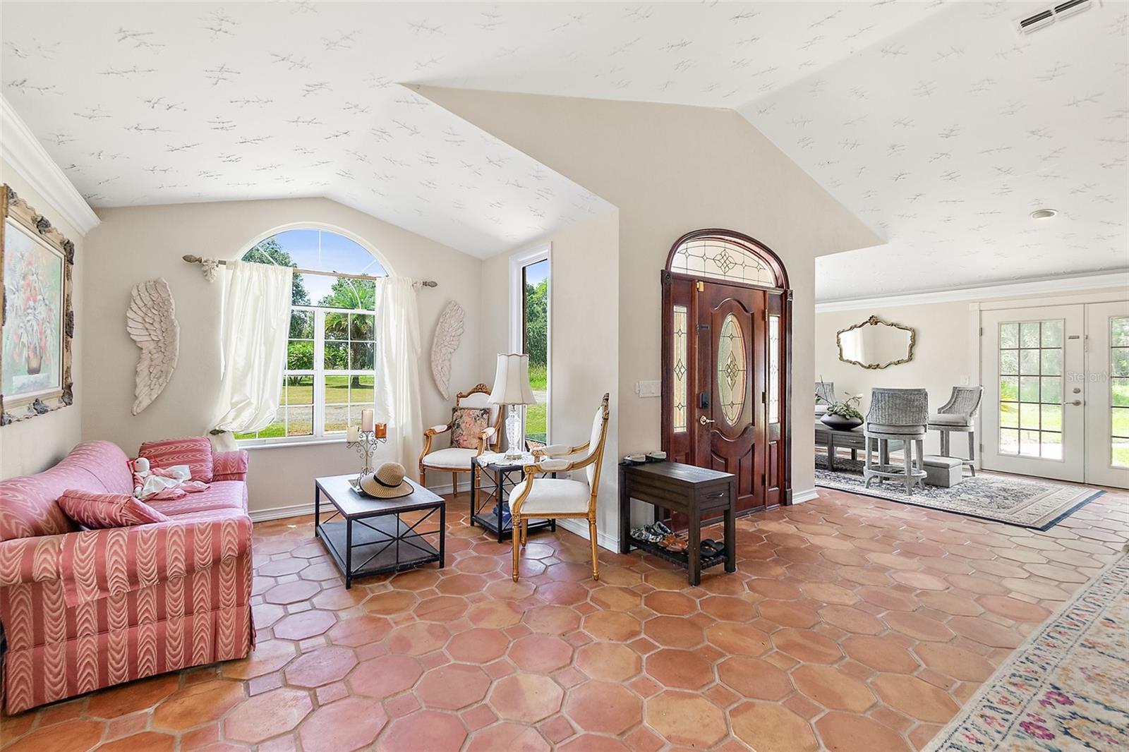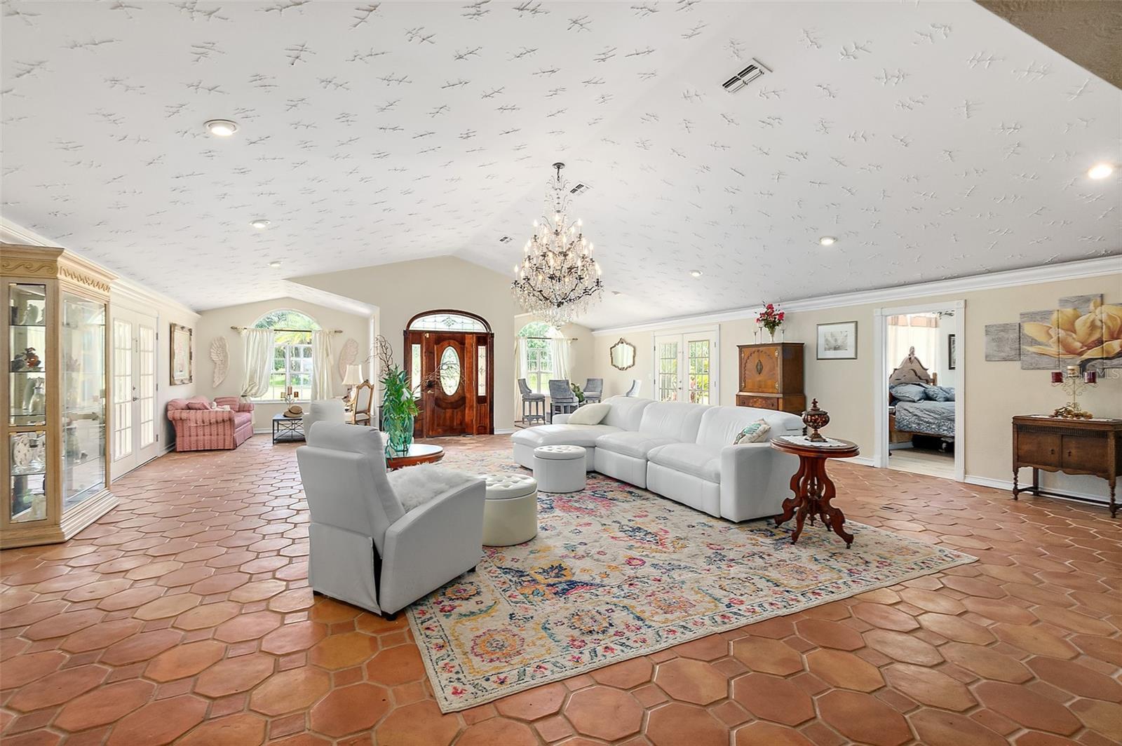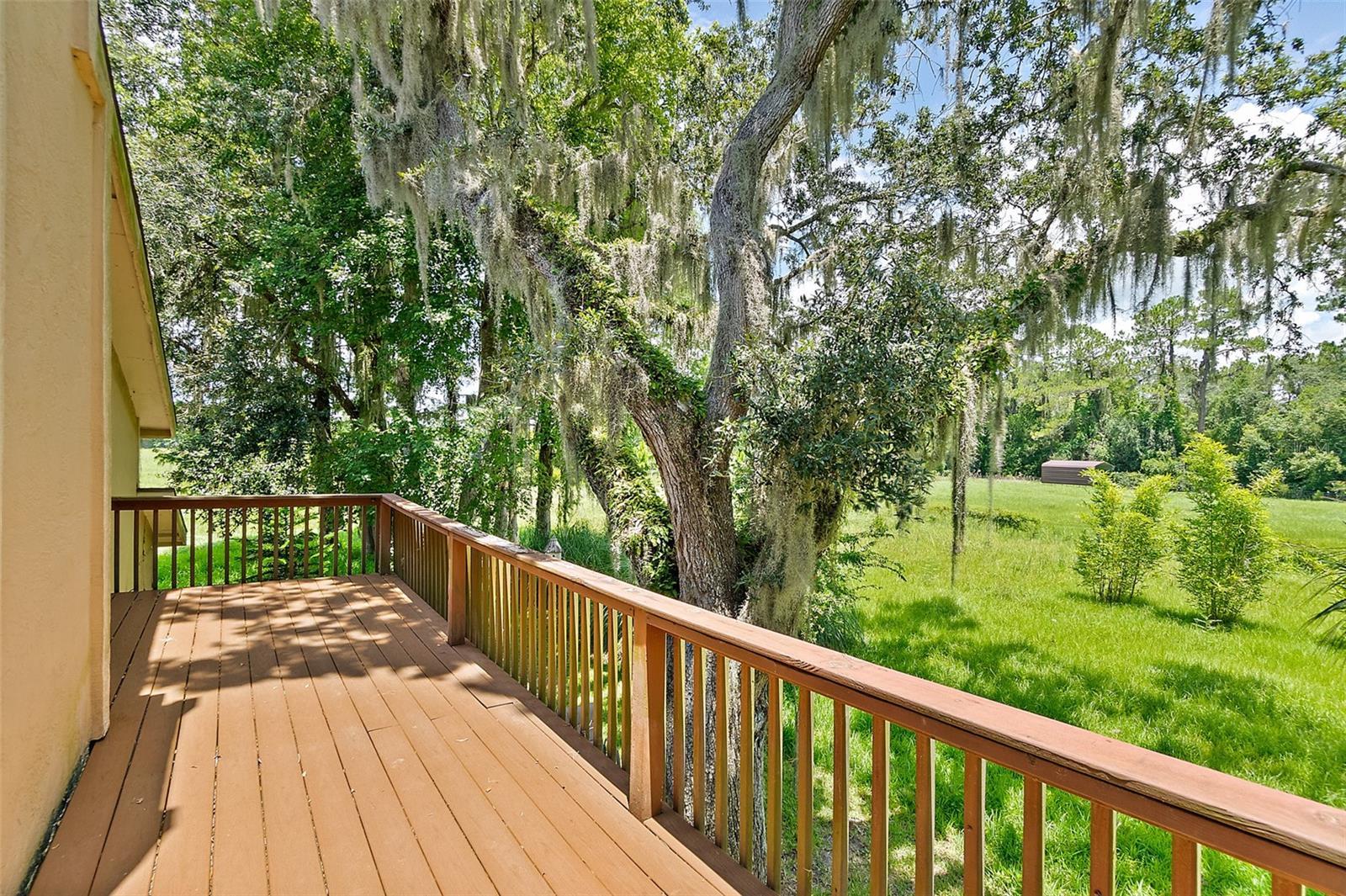 Welcome to 14951 Andalusia Trail — a one-of-a-kind custom estate that beautifully blends rustic charm, modern upgrades, and serene acreage living. Situated on 5.34 high-and-dry acres, this freshly remodeled home offers a rare combination of elegance, warmth, and functionality — perfect for multigenerational families, homesteaders, entertainers, or anyone seeking space and privacy. This expansive 6-bedroom, 4.5-bathroom property includes three primary suites, each designed with comfort and luxury in mind. From the moment you enter, you're greeted by vaulted cedar ceilings and walls, coquina stone fireplaces, and rich parquet wood flooring — all creating a welcoming, organic atmosphere that's hard to find in today’s market. The layout includes: Formal living room with soaring ceilings and a dramatic coquina fireplace Formal dining room with fireplace and natural light Family room with built-ins and open access to outdoor living Private office/library with vaulted ceilings Grand master suite featuring its own fireplace, sitting area, and exclusive access to two private balconies Fresh paint, updated fixtures, and premium finishes throughout The kitchen and baths have been thoughtfully updated as part of the remodel, blending function and form with timeless finishes. Step outside into your resort-style screened pool area surrounded by lush, mature landscaping. The space includes a fully equipped outdoor kitchen with built-in grill, prep counter, sink, and refrigerator — ideal for entertaining or relaxing in privacy. Additional outdoor features include: New pool heater and pump Two sheds for storage Two covered carport spaces Three fenced paddocks for animals or farming New artesian well with full filtration system Whole-house generator and two gas tanks New A/C system (2025) and new water heater This is not just a house — it’s a lifestyle property designed for comfort, independence, and connection with nature. Conveniently located just minutes from Palm Coast, Flagler Beach, and SR-100, yet tucked away on a quiet, private road with no HOA and endless potential. Was appraised $1100 000 after all the renovation