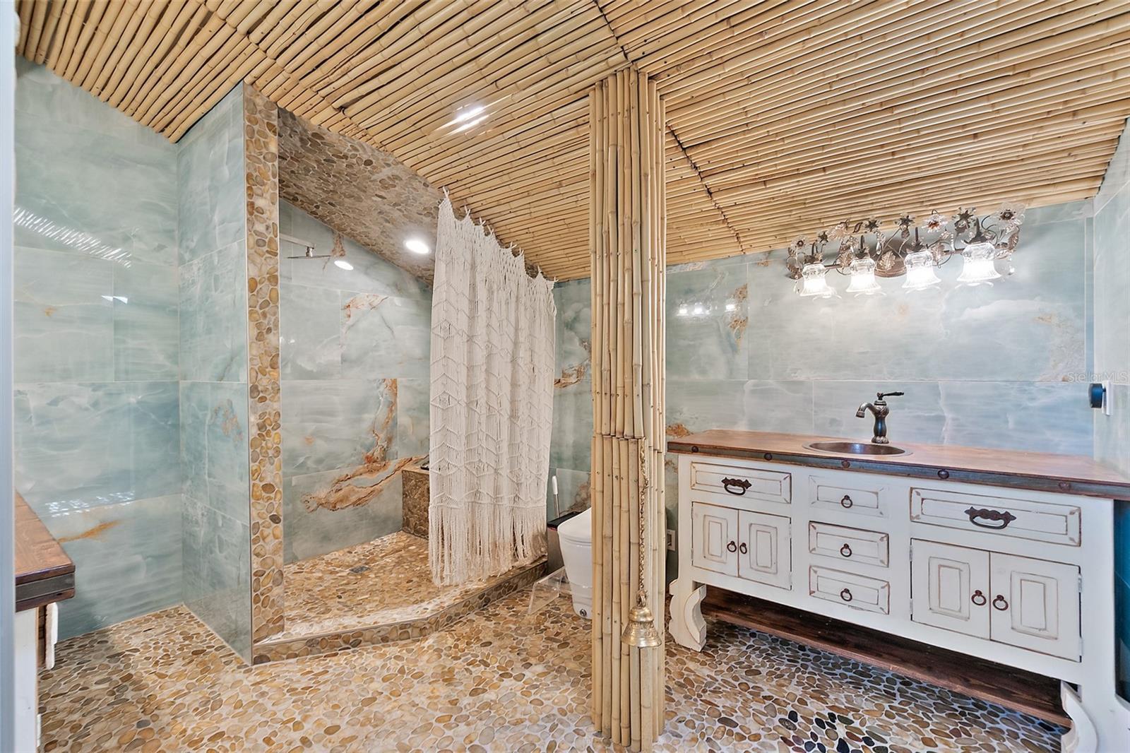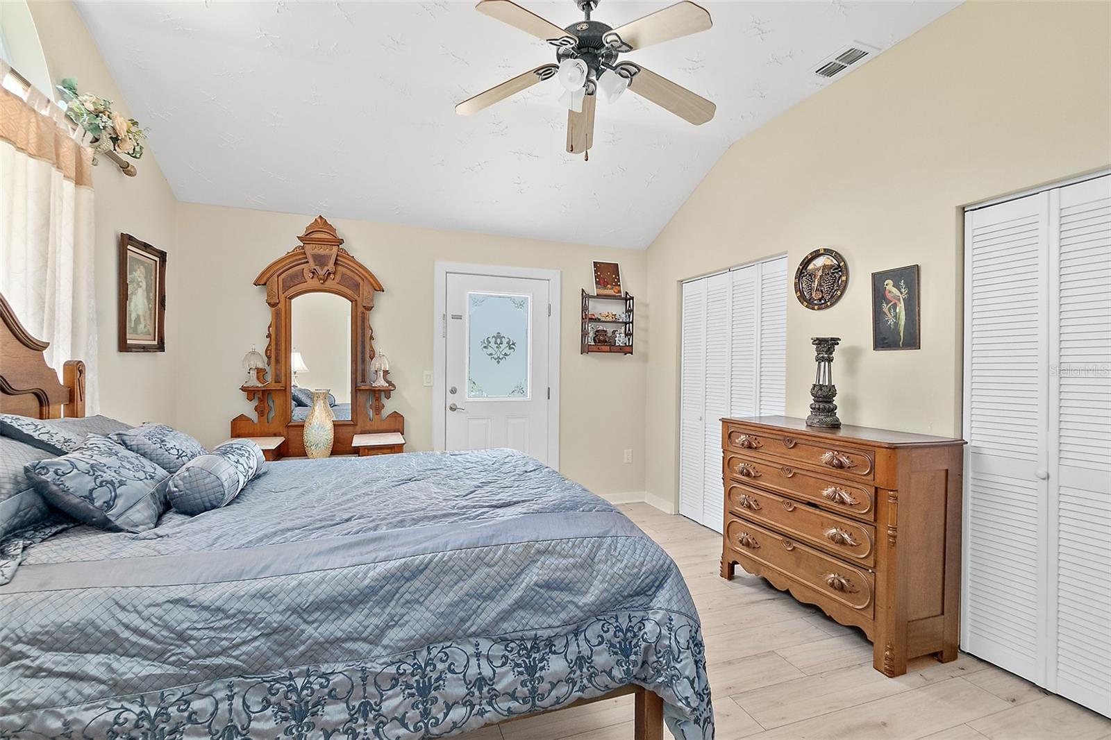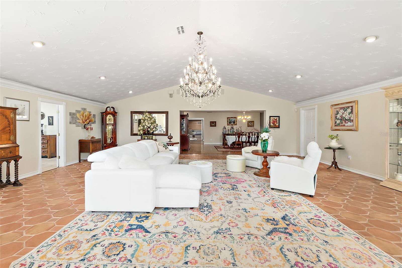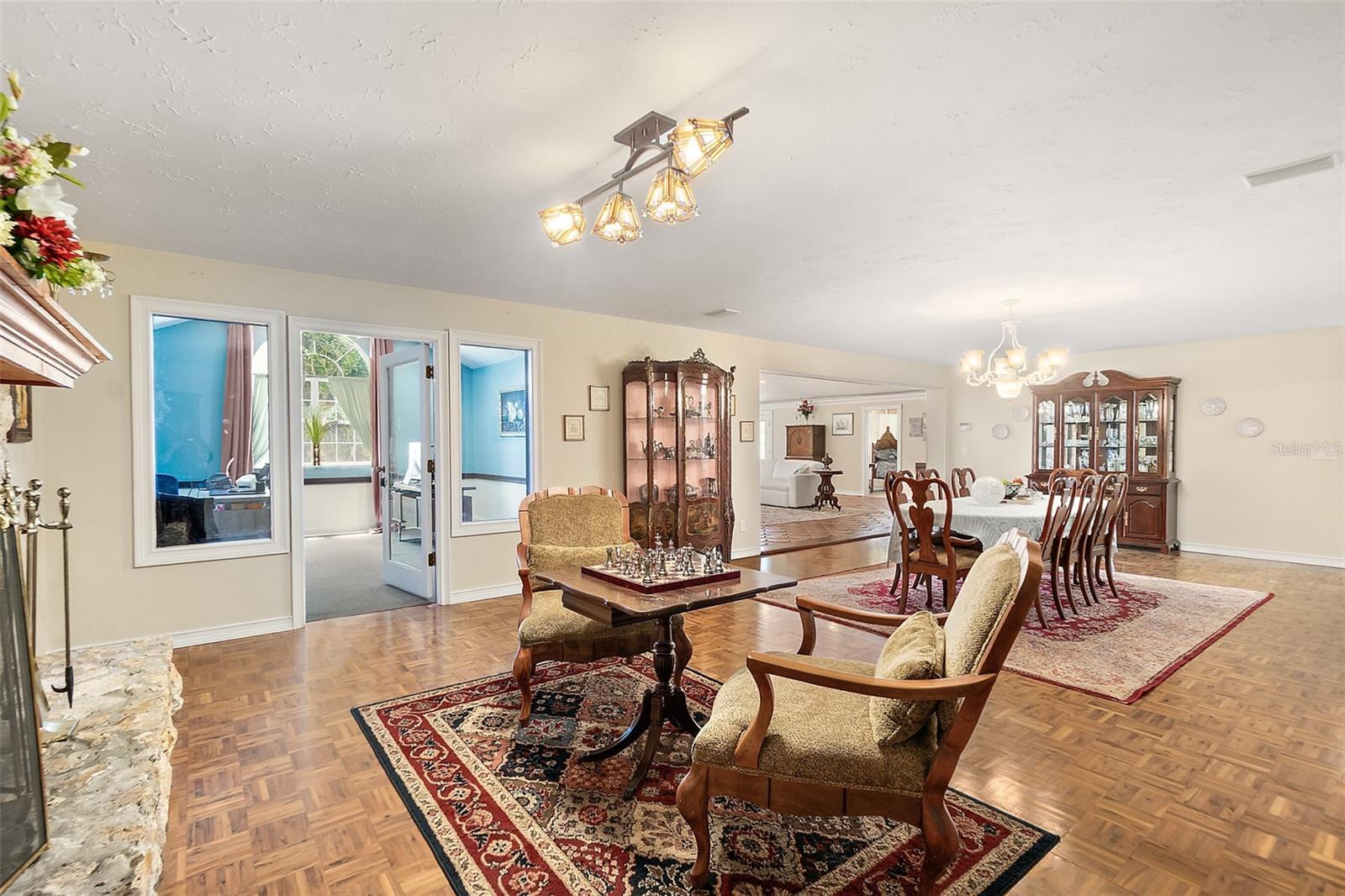 Welcome to 14951 Andalusia Trail — a one-of-a-kind custom estate that beautifully blends rustic charm, modern upgrades, and serene acreage living. Situated on 5.34 high-and-dry acres, this freshly remodeled home offers a rare combination of elegance, warmth, and functionality — perfect for multigenerational families, homesteaders, entertainers, or anyone seeking space and privacy. This expansive 6-bedroom, 4.5-bathroom property includes three primary suites, each designed with comfort and luxury in mind. From the moment you enter, you're greeted by vaulted cedar ceilings and walls, coquina stone fireplaces, and rich parquet wood flooring — all creating a welcoming, organic atmosphere that's hard to find in today’s market. The layout includes: Formal living room with soaring ceilings and a dramatic coquina fireplace Formal dining room with fireplace and natural light Family room with built-ins and open access to outdoor living Private office/library with vaulted ceilings Grand master suite featuring its own fireplace, sitting area, and exclusive access to two private balconies Fresh paint, updated fixtures, and premium finishes throughout The kitchen and baths have been thoughtfully updated as part of the remodel, blending function and form with timeless finishes. Step outside into your resort-style screened pool area surrounded by lush, mature landscaping. The space includes a fully equipped outdoor kitchen with built-in grill, prep counter, sink, and refrigerator — ideal for entertaining or relaxing in privacy. Additional outdoor features include: New pool heater and pump Two sheds for storage Two covered carport spaces Three fenced paddocks for animals or farming New artesian well with full filtration system Whole-house generator and two gas tanks New A/C system (2025) and new water heater This is not just a house — it’s a lifestyle property designed for comfort, independence, and connection with nature. Conveniently located just minutes from Palm Coast, Flagler Beach, and SR-100, yet tucked away on a quiet, private road with no HOA and endless potential. Was appraised $1100 000 after all the renovation