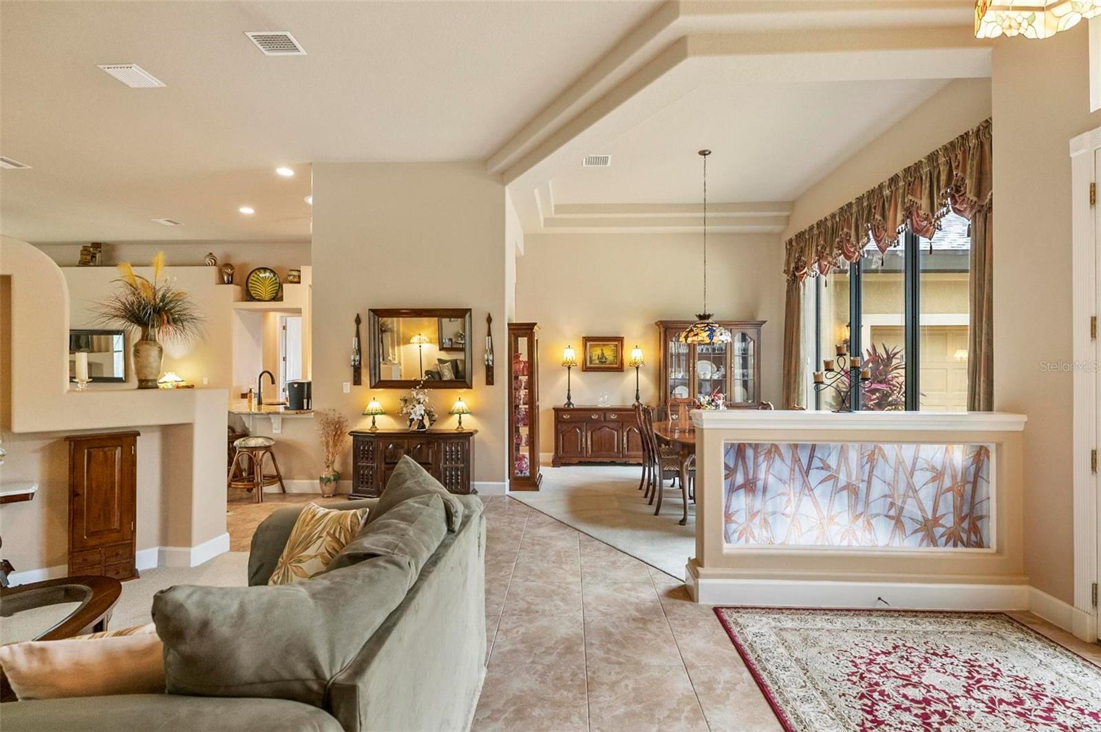 You'll be amazed by the beautifully landscaped front garden, impressed by the thoughtfully designed interior layout and features, and absolutely captivated by the serene backyard lake view! ICI Grand Stratford model in fabulous Creekside Village at Grand Haven offers 4 Bedroom, 3 Bathroom, 3 car garage, and 2633 Sqft living space complete with an oversized L-shaped POOL. This gem showcases 12’ceiling in the main living areas and 10’ in the bedrooms. Recent upgrades include a NEW ROOF and interior A/C unit in 2024. Meticulously tended, the property features a split floor plan and includes a formal dining room, family room, and breakfast nook for added privacy. The spacious living room features abundant windows and extra-wide sliding glass doors that flood the space with natural light. The primary suite includes a garden tub, oversized walk-in shower, dual vanities, and a large walk-in closet. Both guest bathrooms are equipped with a walk-in tub and shower combination. The elegant kitchen offers sitting area, 42” cabinets, porcelain tile backsplash, and granite countertop. Throughout the home, you’ll find luxury Tiffany-style light fixtures. Enjoy cozy winter evenings by the beautiful gas fireplace. Additionally, the home is equipped with a water softening system, which is beneficial for your health. Generously sized laundry room offers plenty of shelving and a utility sink. The oversized 3-car garage provides ample space not only for vehicles but also for extra storage, a workshop area, or hobby space—perfect for those who need flexibility and functionality. The pool patio overlooks the oversized, lush green backyard and the tranquil lake view. To enjoy the Florida lifestyle to the fullest, take advantage of the exceptional recreational activities this community offers: clubhouse, 2 public pools, 2 restaurants, fitness center, tennis courts, and countless walking trails with street lighting. If you've ever dreamed of living in paradise—this is your place!