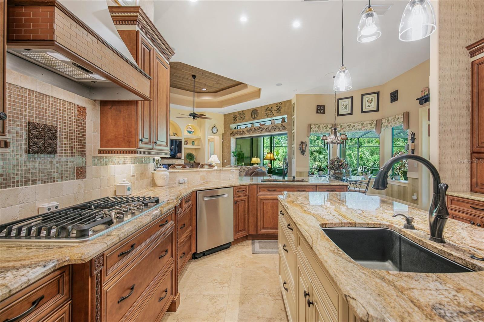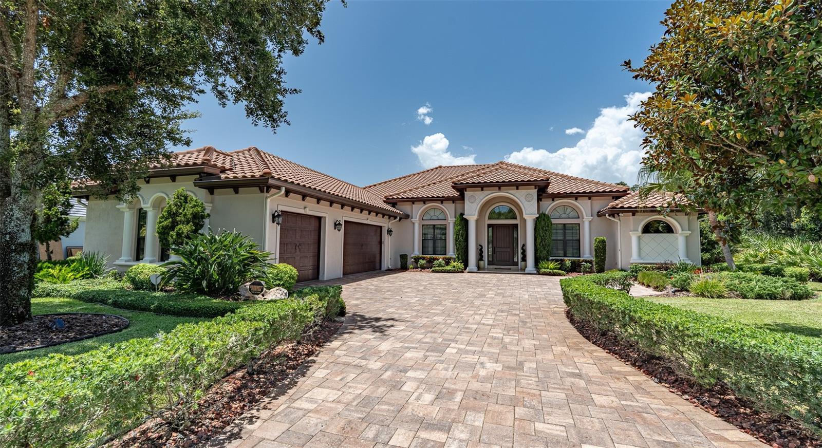 Guard-Gated Luxury Oasis in Hammock Dunes! Experience refined coastal living in this exquisite 3,984 sq ft custom-built estate situated on a quiet ½-acre cul-de-sac lot with total privacy. Featuring 3 bedrooms + den/office (4th bed option) and 3.5 baths, this home blends timeless craftsmanship with modern elegance. Step inside to soaring coffered ceilings, an open layout flooded with natural light, and designer finishes throughout. The gourmet kitchen showcases custom cabinetry, granite counters, Bosch appliances, and a large island perfect for entertaining. Enjoy seamless flow to the family room featuring a built-in wet bar and fireplace. The expansive primary suite offers a spa-inspired bath with soaking tub, walk-in shower, and dual custom closets. Two guest suites, each with private baths, provide ideal comfort for family or visitors. Step outside to your screened lanai with full outdoor kitchen, overlooking lush landscaping and a tranquil preserve — the perfect retreat for morning coffee or evening gatherings. Additional highlights include a 250-gallon owned propane tank, whole-house filtration system, oversized 3-car garage, and an enormous laundry room with desk and storage cabinetry. Located within the famed, 24-hour guard-gated Hammock Dunes community, residents enjoy optional memberships to world-class amenities — championship golf, tennis, fitness, dining, and private beach access.