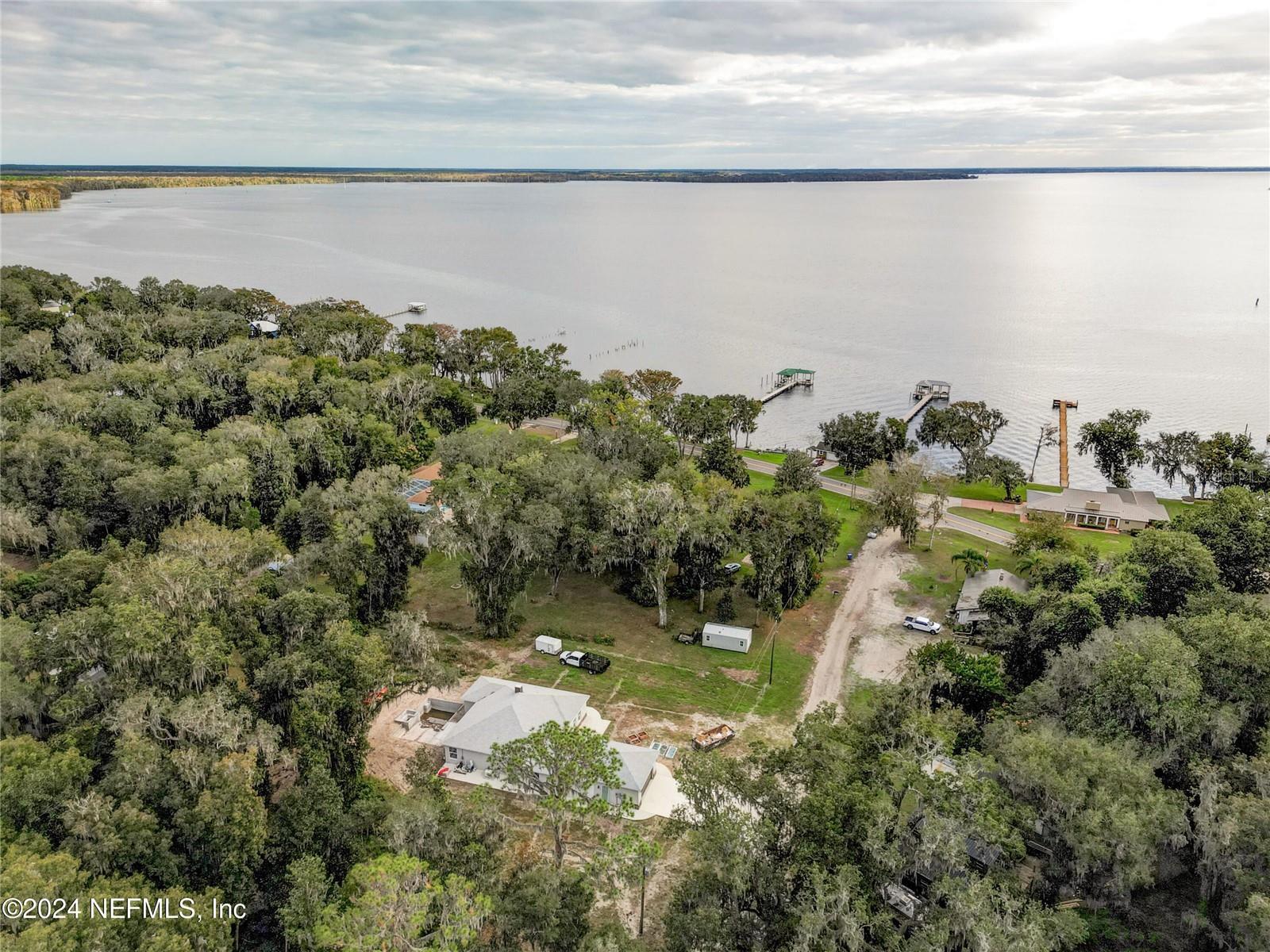 Mid-century charm meets riverfront serenity at this one-of-a-kind property on the St. Johns River. Set on 1.16 acres with land on both sides of County Road 13, this turnkey property is currently used as an executive retreat, the home is being offered fully furnished with curated designer mid-century pieces and is already listed across multiple short-term rental platforms, making it immediately income-producing. Whether envisioned as a personal vacation getaway or a savvy investment with short-term rental potential when not being used for personal use, this exceptional property delivers both lifestyle and return. Inside, you’ll find a vibrant blend of artful design and thoughtful updates. The 3-bedroom, 1-bath layout includes two Murphy beds—one in a bedroom/office hybrid space that opens to the living area—and brand-new tile floors, subflooring, baseboards, and windows throughout. Sunlight pours into the living room, framing spectacular river views that stretch out before you like a painting. The kitchen is as stylish as it is functional, with sleek quartz countertops, a colorful backsplash, garden sink, and abundant cabinetry. Outside, the details shine: paver walkways lead through lush gardens to three distinct courtyards, a brand-new pergola, and a beautifully finished patio. Sip morning coffee surrounded by nature, then stroll down to your private boathouse and dock with electricity and a boat lift. A 3-car garage with new doors, a carport for RV parking with plug-in, a new septic system, water softener with aerator, and even a chicken coop—this home offers a lifestyle as flexible as it is serene. With 2,430 total square feet including finished outdoor and garage spaces, there's room to stretch out or host in style. New Metal Roof in 2020, and recently upgraded electrical in 2024. Whether you utilize it as a short-term rental or keep it all to yourself, this property is a rare riverfront gem, blending vintage soul with modern comfort.