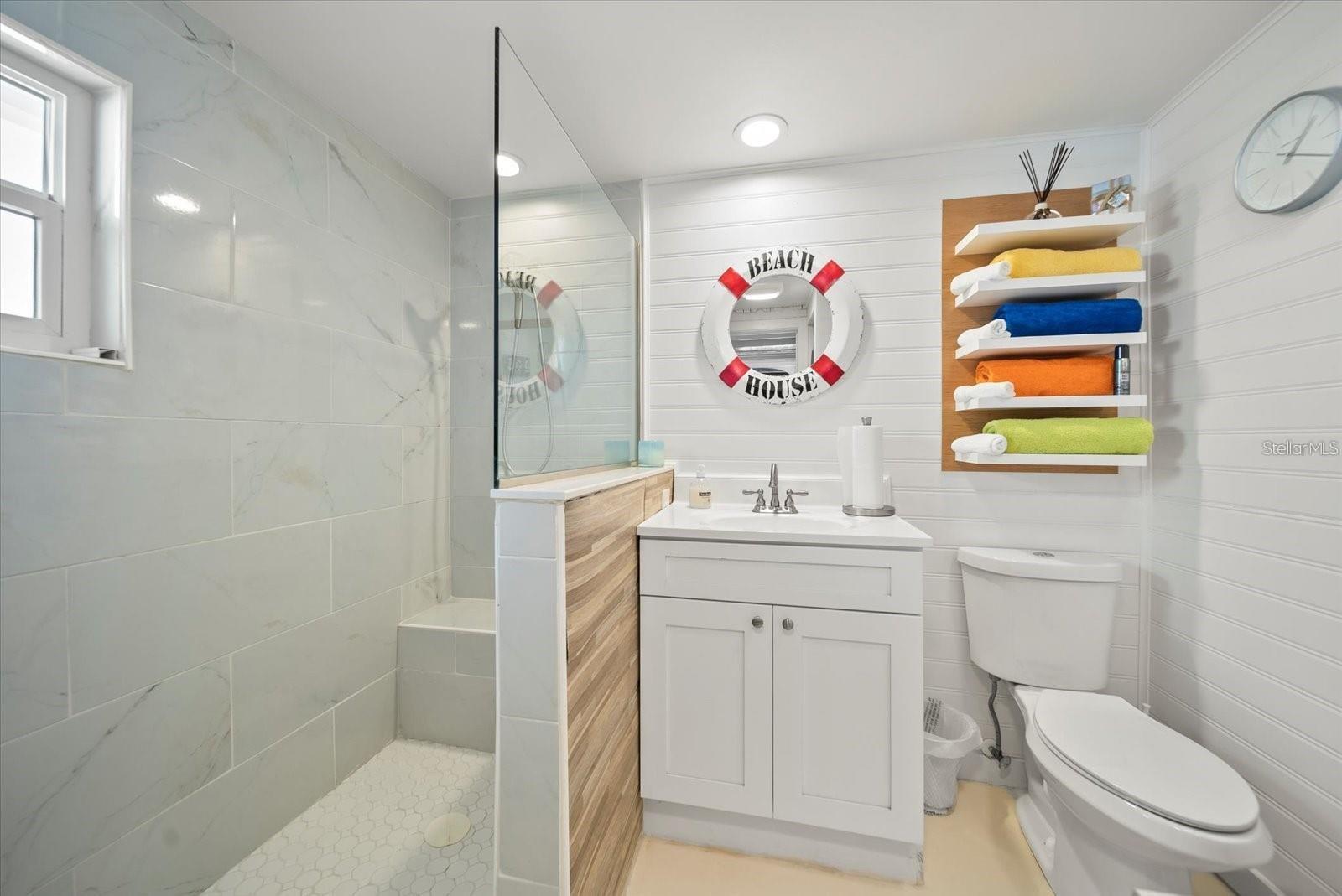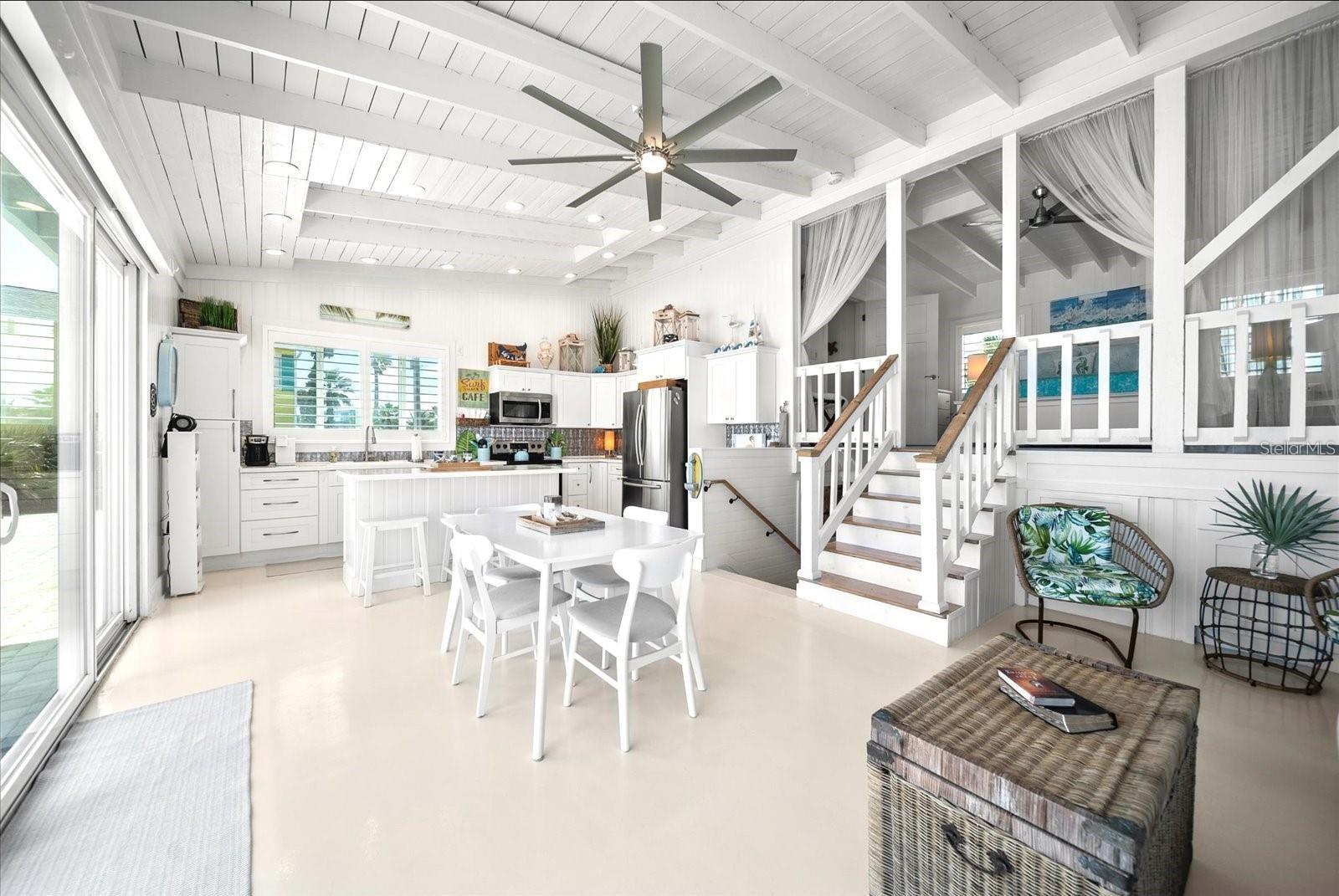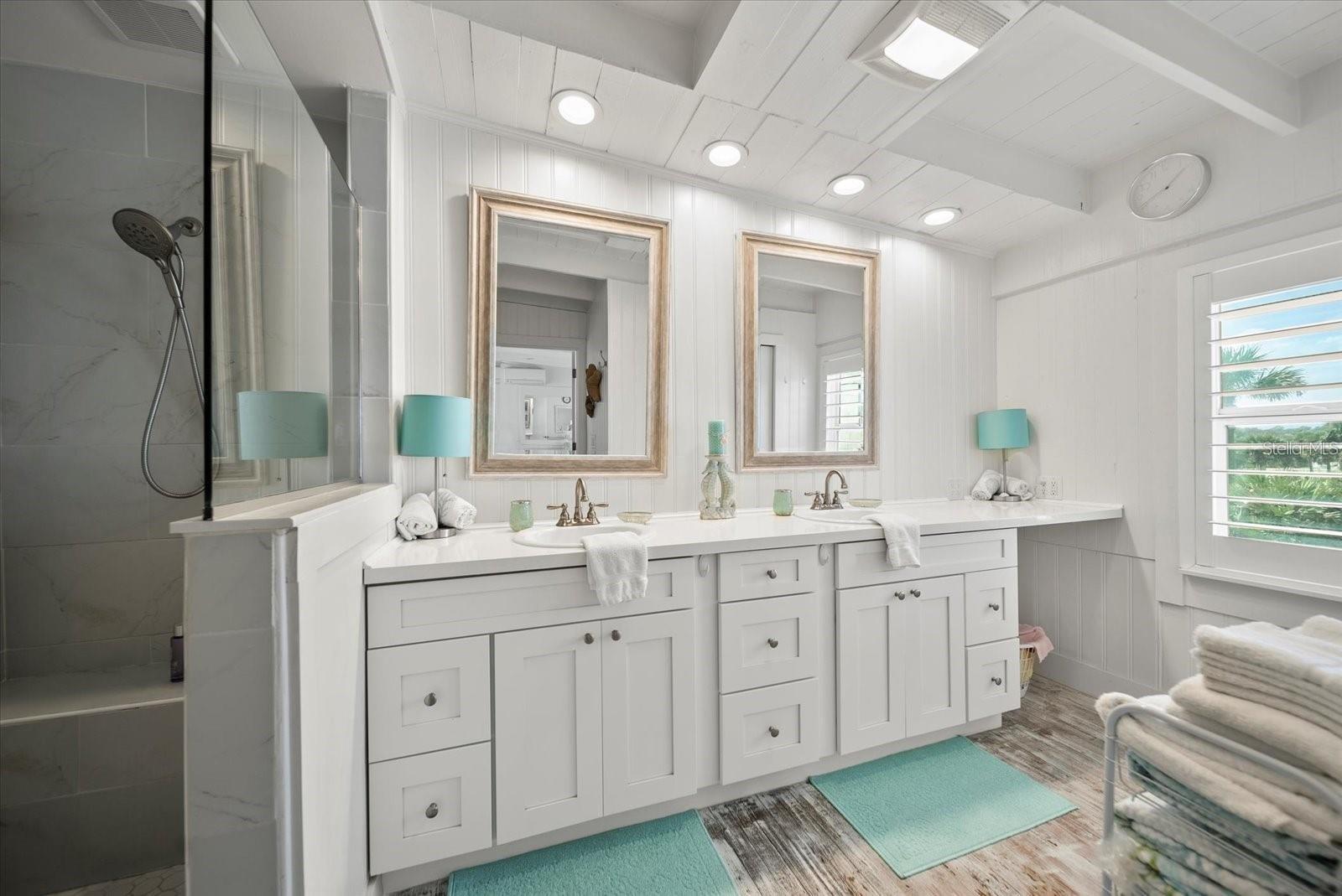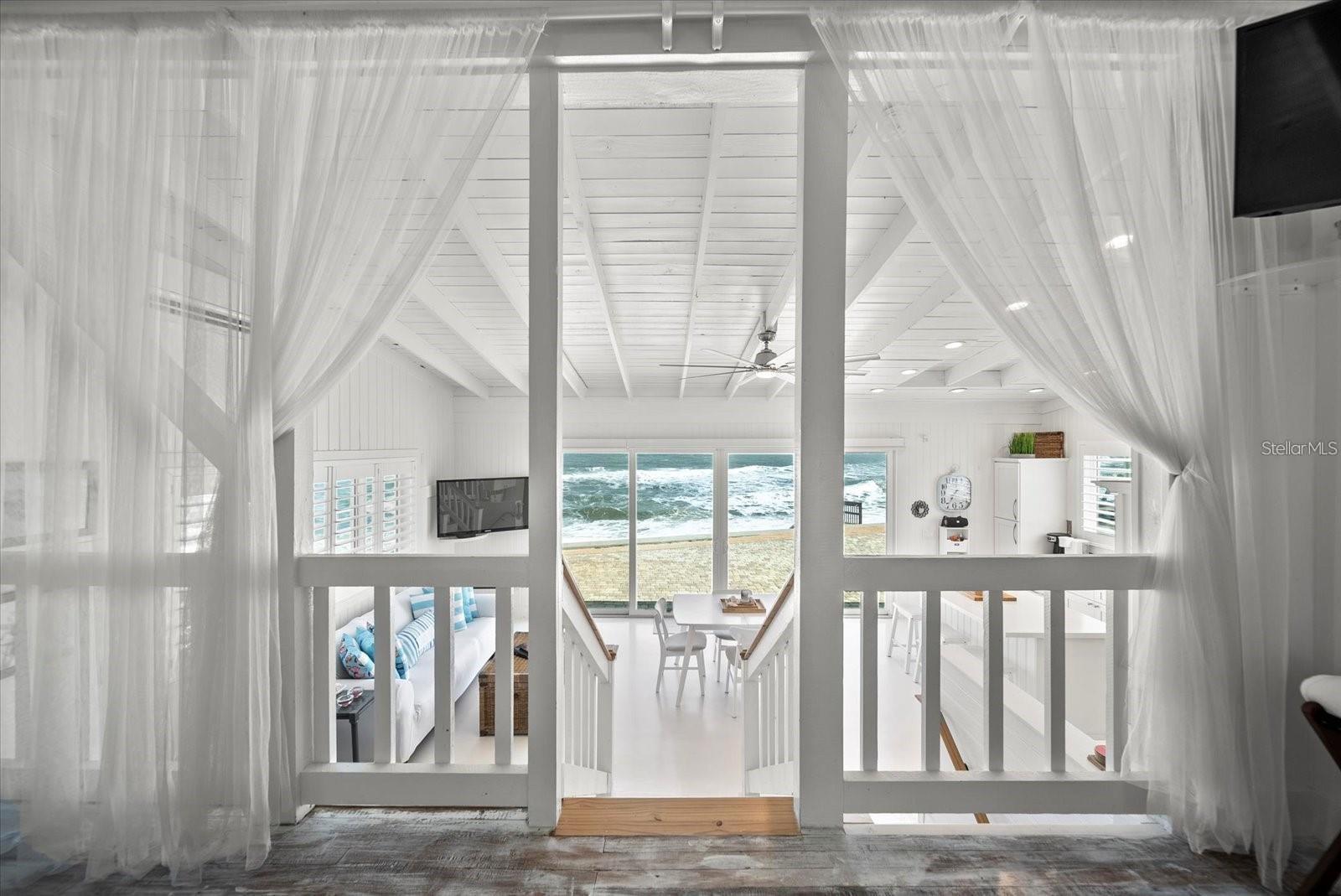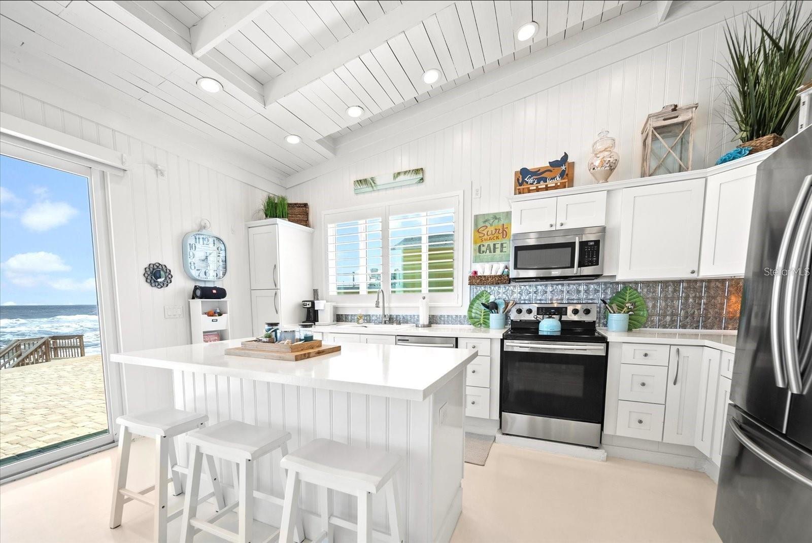 DIRECT OCEAN FRONT! Gorgeously remodeled beachfront home, as seen on HGTV Beachfront Bargain Hunt Restoration. The pictures will excite you, and they speak for themselves. If you are looking for a place to heal your body and soul – this is the place for you! THIS IS A NO PET RENTAL DUE TO OWNER ALLERGIES. This enchanting oceanfront hide-away welcomes you to unplug, relax and de-stress! Panoramic ocean views from the living room beckon you to take in this slice of paradise. The eight-foot sliding glass doors lead to a private expansive paved beachfront patio. The large plantation shutters provide privacy and give the home that island touch! Wake up to breathtaking sunrise views over the Atlantic from your master suite. Breathe in the clean salty ocean air while enjoying coffee on the porch as you listen to the sounds of the surf and watch the dolphins play! This gem of a home is well protected with a sea wall. Wind down your day under the starry skies and balmy breezes by your wood burning fire pit. For your entertainment, fun oceanfront restaurants and establishments are just minutes away. Sidewalk and bike path from county line to county line in place for bike riding or walking on A1A. Being directly on the Atlantic Ocean, there no streets to cross and nothing between you and the cinnamon sands of Flagler Beach except a few steps! This home sleeps 6 with a glorious Master Bedroom on the upper-level, opening to the Ocean view, a guest room on the lower level and 2 bunks tucked away on the lower level as well. This light and bright home is completely furnished in a charming beachside designer style. This is a hypoallergenic home – NO PETS, NO SMOKING ANYWHERE ON PREMISES.