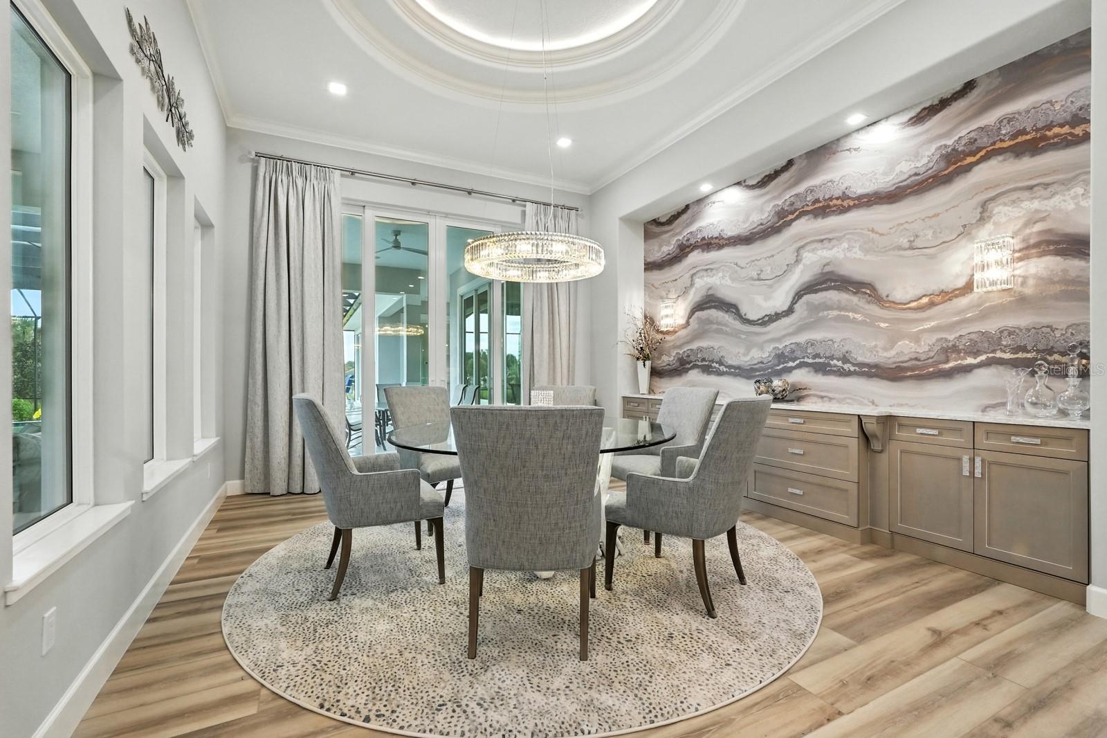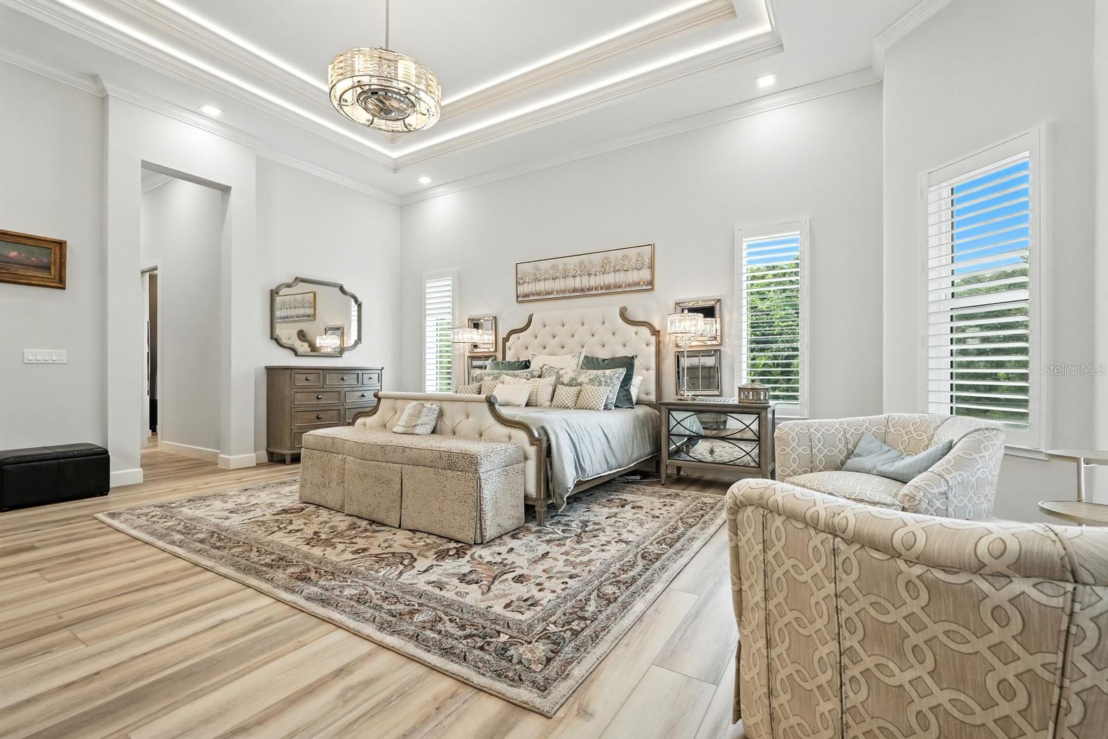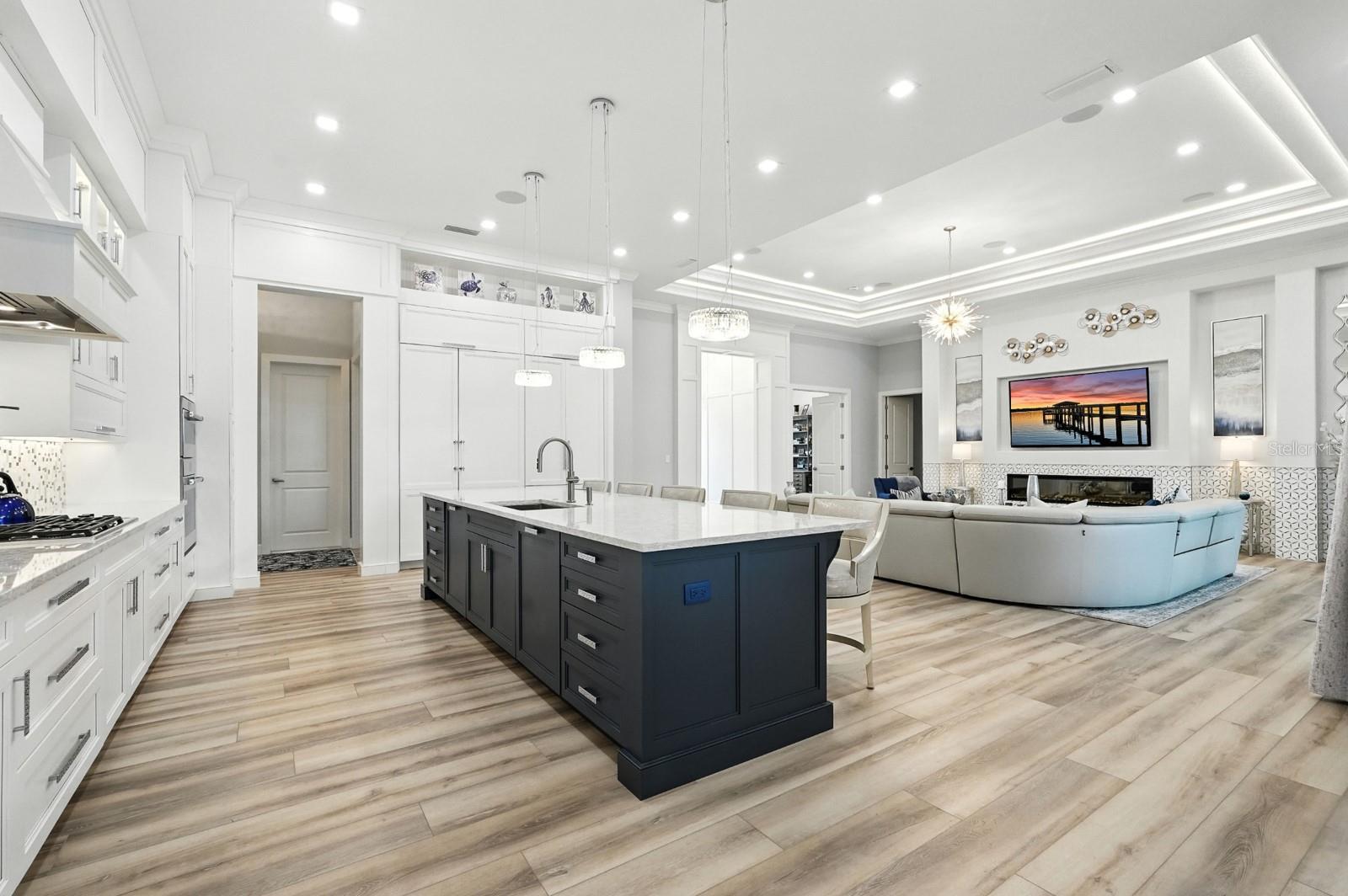 Step into the most exclusive community in Flagler County — Island Estates at Hammock Dunes! This private island enclave is a rare sanctuary where luxury, privacy, and the ultimate Florida lifestyle converge. Completed in 2022, this extraordinary estate is designed for those who dream of boating from their backyard, practicing golf on their own greens, and hosting unforgettable gatherings against a breathtaking waterfront backdrop. From the moment you pass through the double entry doors, sweeping views of the Intracoastal Waterway set the tone for the home’s elegance. Every detail has been thoughtfully curated, and brought to life by master builder Charles Rinek. The open-concept floor plan showcases five bedrooms, four and a half baths, an office, and a private casita, blending expansive entertaining areas with serene private retreats. At the center of it all is the chef’s kitchen, a true showpiece with Sub-Zero, Wolf, and Cove appliances, a massive island with seating, a stylish mosaic backsplash, and designer pendant lighting. A separate butler’s pantry with Sub-Zero wine storage and a prep sink ensures effortless entertaining. Just steps away, the living room stuns with soaring tray ceilings, a custom feature wall with a sleek fireplace, and wide-plank luxury vinyl flooring that flows throughout the home. The dining room is equally memorable with its dramatic onyx-inspired accent wall and contemporary chandelier, creating a striking backdrop for intimate dinners or grand celebrations. The owner’s retreat is a sanctuary of its own, featuring two oversized custom walk-in closets and a spa-like bath with dual vanities, quartz counters, and an oversized glass-enclosed shower with dual shower heads. Guest accommodations are equally luxurious, with a private suite and two spacious bedrooms joined by a Jack-and-Jill bath, all designed to comfortably fit king-sized beds. A detached casita adds even more flexibility with its own private entry, bedroom, full bath, and dedicated office. Outdoors, the property transforms into a private resort. The screened lanai encloses an infinity-edge pool and spa accented by fire bowls and water features, while a sunken firepit creates a dramatic focal point for evening gatherings. Multiple lounging and dining areas, a fully equipped outdoor kitchen, and a built-in misting system make entertaining effortless year-round. Two putting and chipping greens extend the luxury lifestyle, inviting fun between boat rides from your private dock. The covered dock is a tranquil waterfront escape out of your dreams. The massive space with built-in seating offers sweeping views up and down the Intracoastal. Watch the boats pass by and dolphins at play as you relax in the shade! Additional features elevate the home’s prestige even further, including a four-car garage with staircase leading to air-conditioned storage above, an EV charging station, a whole-house generator, and an advanced security system. This home is more than a residence — it is a statement of prestige, where every day feels like a coastal retreat and every moment embodies the ultimate Florida lifestyle.