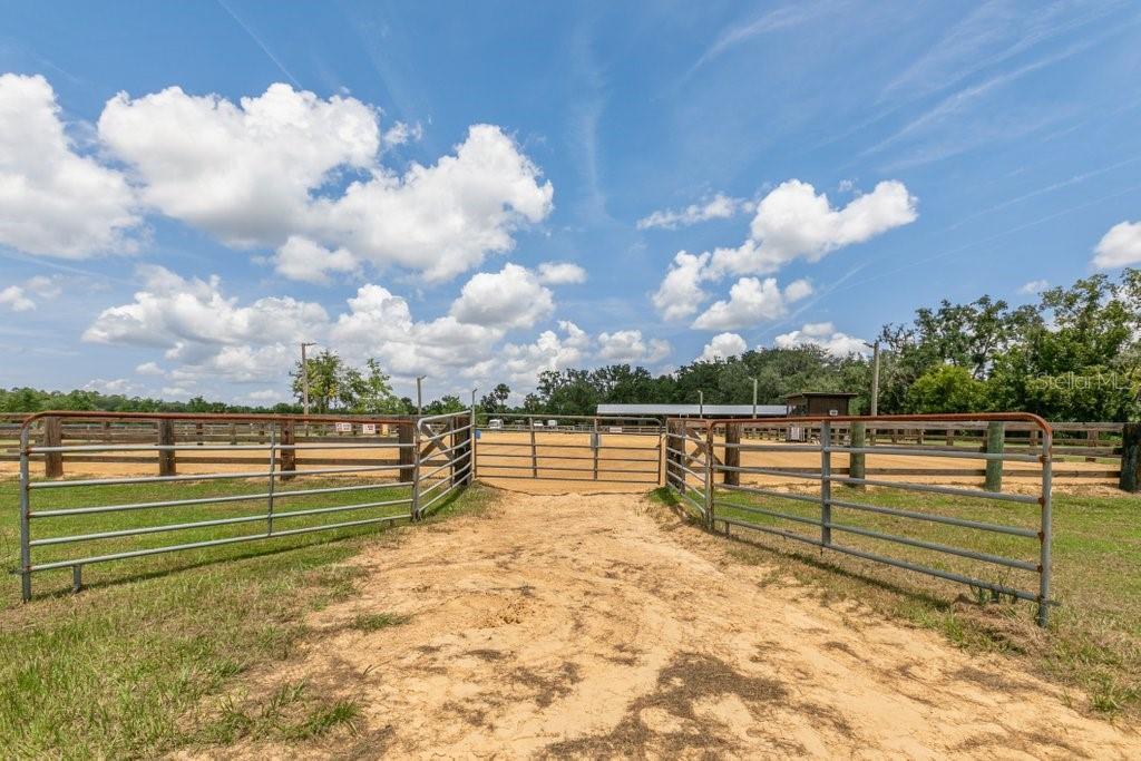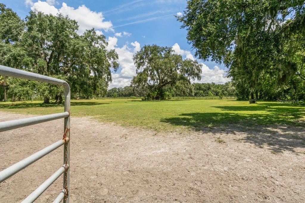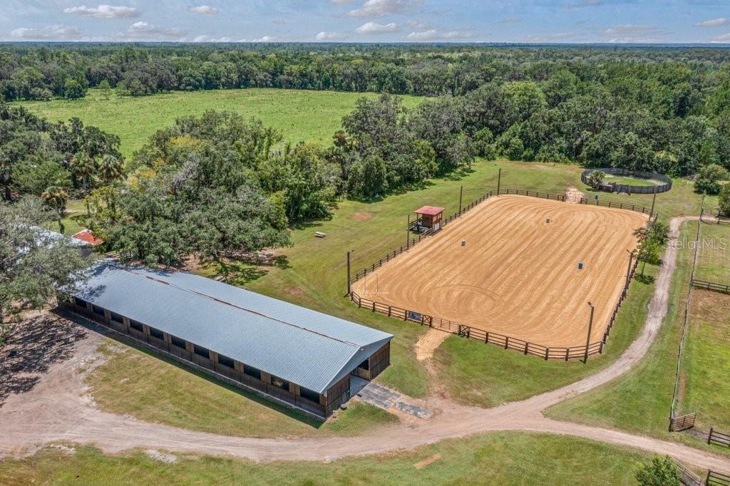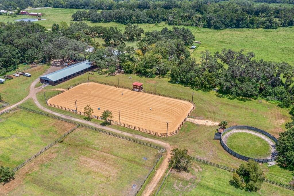 Under contract-accepting backup offers. Welcome to Split Oak Farm — a distinguished 54-acre equestrian estate where world-class facilities meet the serenity of Florida's horse country. Perfectly positioned just one hour from the prestigious World Equestrian Center and only 30 minutes from the sandy shores for oceanfront riding, this property offers an unparalleled lifestyle for both professional competitors and passionate horse enthusiasts. From the moment you arrive, you'll be captivated by the farm's thoughtful design and pristine presentation. A grand 150' × 250' lighted arena takes center stage, bordered by 29 oversized 12' × 14' stalls, 14 lush green pastures, a professional round pen, and peaceful riding trails that wind through the property. Covered wash racks, an air-conditioned tack room, and a welcoming lounge provide both comfort and efficiency, while safe fencing and manicured grounds reflect a commitment to excellence. Currently operating as a thriving full-service boarding and training facility, Split Oak Farm enjoys a sterling reputation, a loyal clientele, and steady income from boarding, lessons, clinics, and youth camps. This turnkey offering includes premium equipment, tractor, skid steer, UTV, two Conex storage units, flatbed trailer, dump trailer, and arena drag, ensuring a seamless transition for its next steward. With Florida's year-round riding climate, quick access to competition venues, and the rare opportunity to combine business success with a dream equestrian lifestyle, Split Oak Farm stands as more than just a property, it is a legacy in the making. Seller financing is available, offering flexibility for the right buyer to step into this exceptional offering and make it their own.