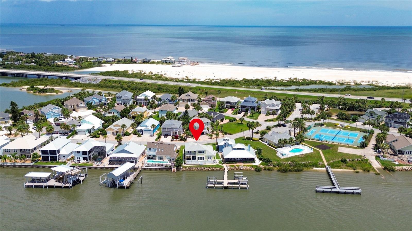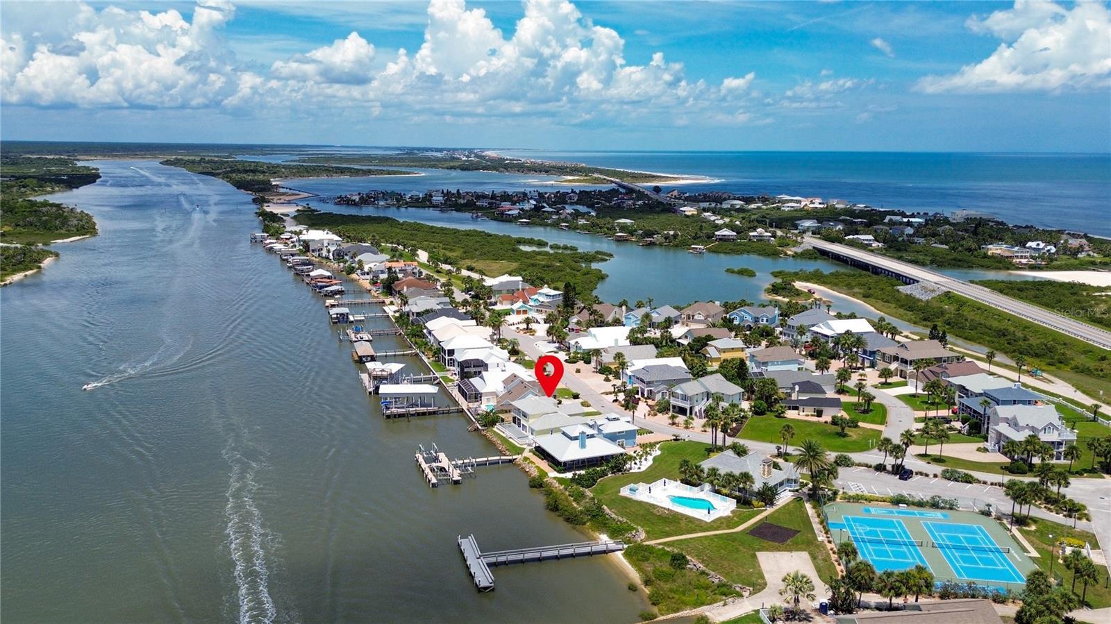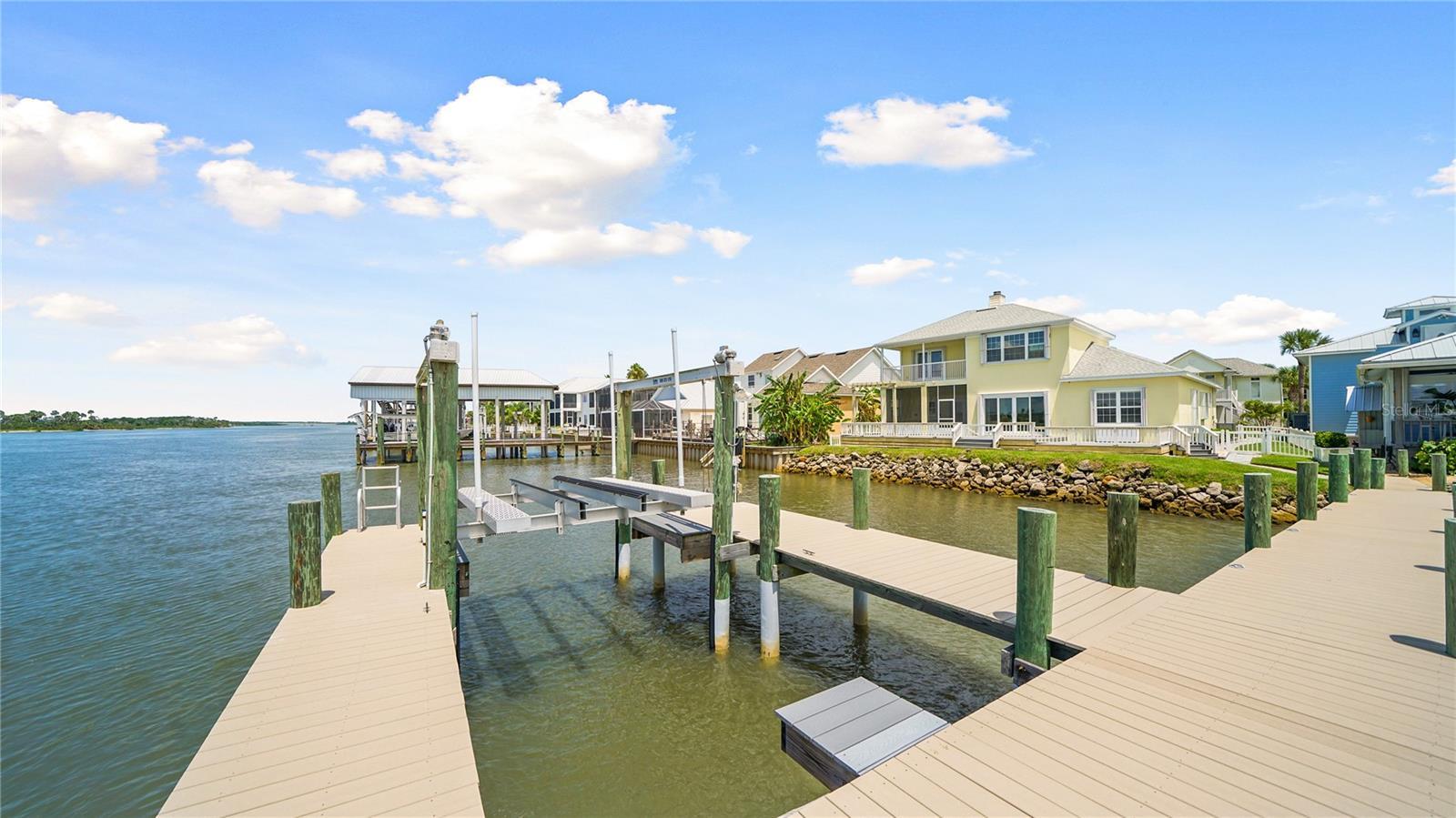 Welcome to 9179 June Lane, a direct Intracoastal front retreat in the private, gated community of Summer Island in St. Augustine. This high-and-dry home has never flooded, offering peace of mind along with breathtaking west-facing views—perfect for enjoying unforgettable sunsets over the Matanzas River. Across the water lies a protected preserve that will never be built on, ensuring your views remain pristine. With 70 feet of waterfront, a boat lift, dipped pilings for durability, and a dock crafted from top-grade marine materials including composite decking, you’ll enjoy a low-maintenance, long-lasting setup ready for boating at any tide. Inside, the home offers a thoughtful 3-bedroom layout, highlighted by two primary suites. The main-level primary suite provides convenience and accessibility, while the second-floor primary suite features its own private balcony overlooking the Intracoastal—an ideal retreat for sunset views. The third bedroom is generously sized, perfect for family, guests, or a home office. Elegant details such as crown molding pair with modern updates throughout, including a fully renovated kitchen, bathrooms, and flooring. For added security and efficiency, the home is equipped with hurricane-rated windows, sliders, and storm shutters, and all major systems have been updated including a 2015 roof and water heater, 2021 HVAC, and complete re-plumbing. The exterior is equally impressive, with professional landscaping, a paver driveway and walkways, a composite back deck, freshly painted exterior, and a fully equipped outdoor kitchen with plumbing—perfect for entertaining with a view. Best of all, the beach is just across the street, making this a rare opportunity to enjoy both riverfront living and ocean access within a gated community that also offers resort-style amenities including a clubhouse, pool, tennis and basketball courts, a community dock with boat launch, and underground utilities. All information pertaining to the property is deemed reliable, but not guaranteed. Information to be verified by the Buyer. Be advised that cameras may exist recording audio and video inside/outside the property, such as ring doorbells. Photos are digitally enhanced and could be altered, please verify.