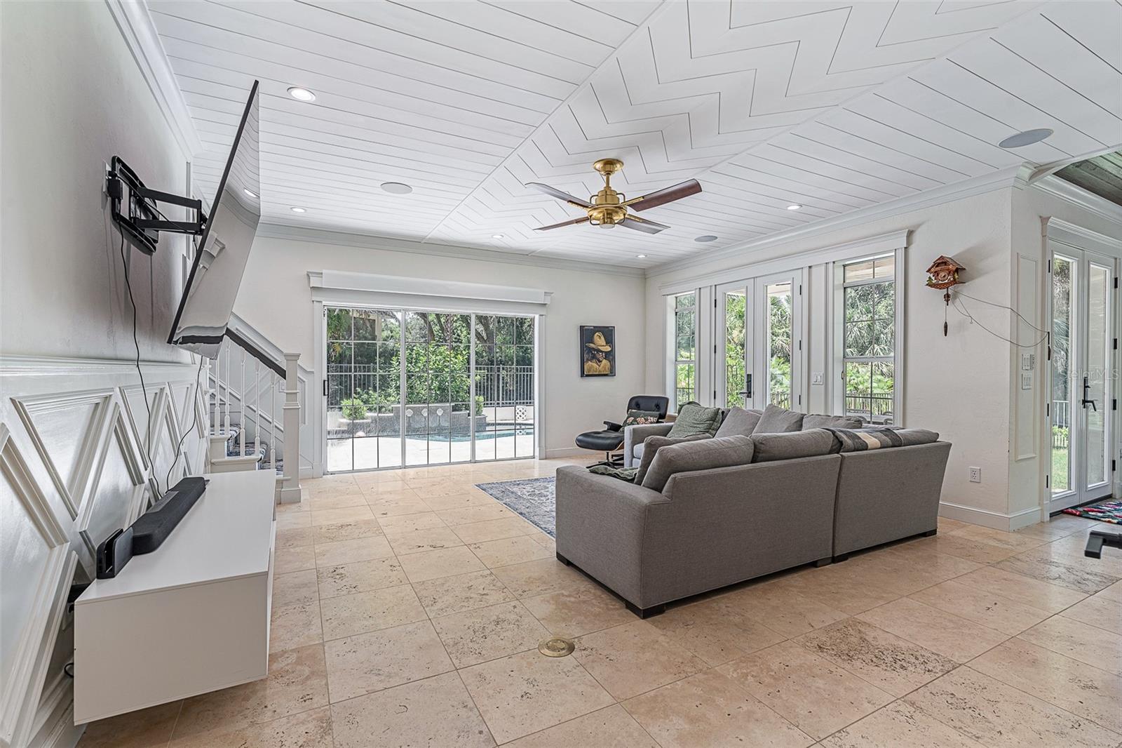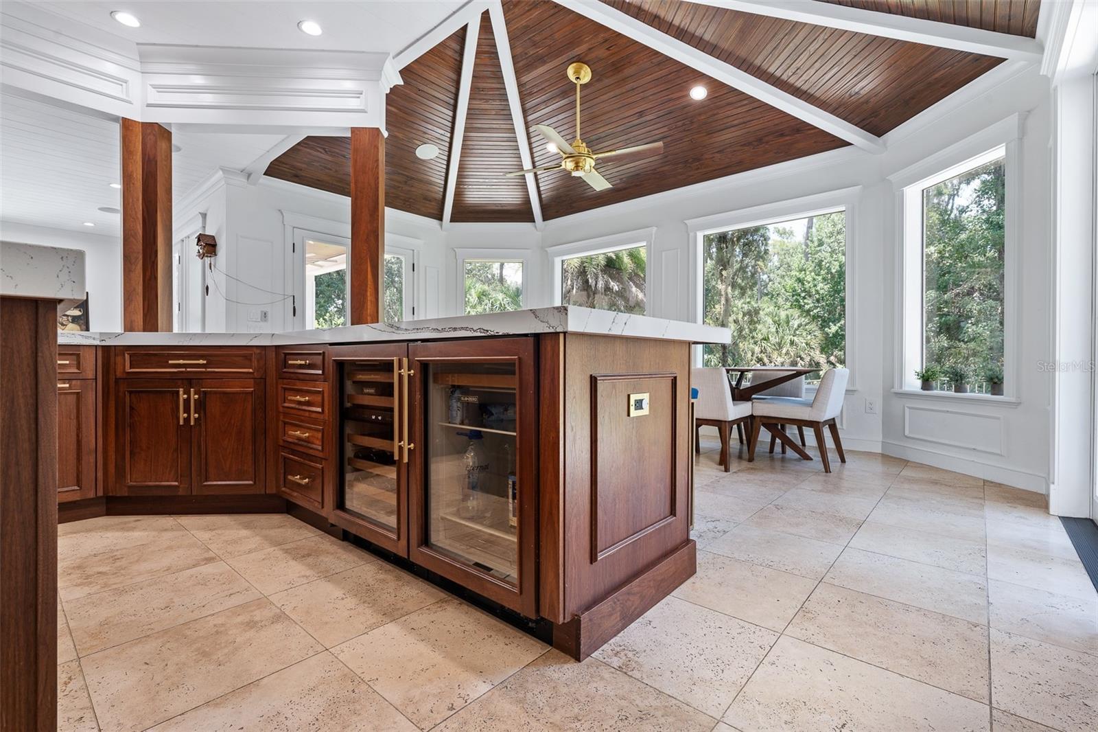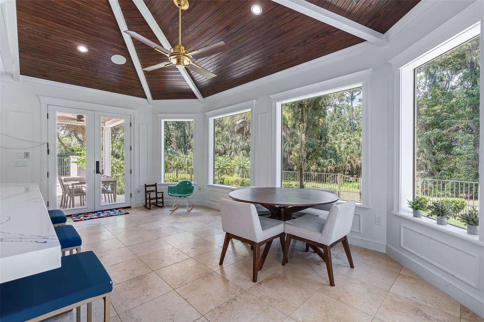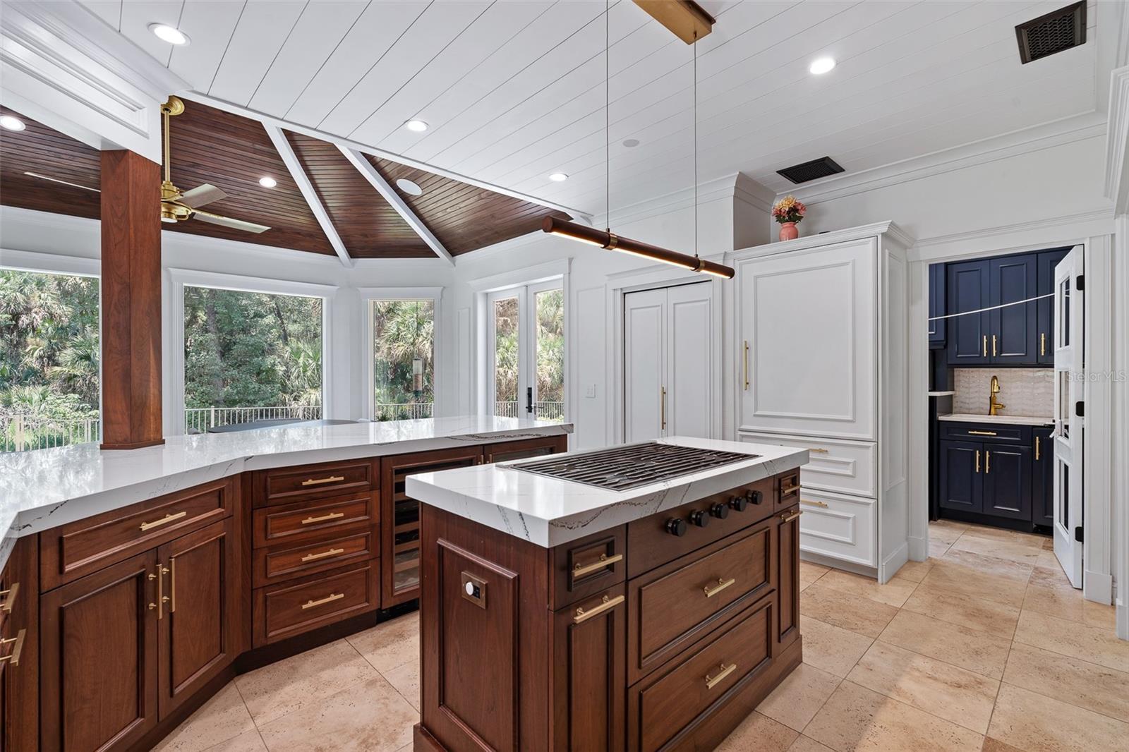 Old Florida charm meets modern luxury in this stunning estate home located in the sought-after Sugar Mill Plantation community, with easy access to beautiful downtown Flagler Beach. Surrounded by lush landscaping and majestic oaks, this residence offers both timeless elegance and contemporary comfort. Step through custom double steel entry doors into a dramatic two-story foyer with travertine floors and a grand chandelier. The formal dining room boasts rich Cypress wood floors, crown molding, custom trim work, and expansive windows overlooking a private side yard. The completely remodeled gourmet kitchen is a chef’s dream, featuring a Sub-Zero cabinet-front refrigerator, Wolf appliances, double oven, Cambria quartz countertops, gas range, two beverage fridges, built-in coffee/espresso system, and pantry closet. A charming breakfast nook with wood ceiling details, French doors, and large windows offers picturesque views and abundant natural light. The family room showcases travertine flooring, vanishing sliders to pool with electric shades, and additional access to the covered lanai through French’s doors. A private office with Cypress wood floors, custom built-ins and bay window for your private workspace. Downstairs completed with custom grand half bath perfect for guests, and picture-perfect laundry room with cabinetry, sink, and outdoor access. Upstairs, the primary suite features vaulted ceilings, Cypress wood floors, French doors to a private tiled balcony overlooking the preserve, custom walk-in closet, and a renovated spa bath with clawfoot tub, dual quartz vanities, linen tower, and walk-in tile shower. Bedroom 2 is set up like a junior suite- a spacious guest suite with bay window, crown molding, ensuite bath with soaking tub and walk-in showers, Plus another oversized bedroom 2 with wood floors, walk-in closet, and serene views. Additional bathroom 3 upstairs with tile tub/shower. All bedrooms upstairs, grand in size and private. The outdoor living space is an entertainer’s paradise with an electric heated pool, travertine decking, outdoor shower, fenced yard, and complete privacy surrounded by mature trees. Anchored on the end of the cul-de-sac with preserve tree lines. Additional highlights include: NEW ROOF 2024, 2-car garage with Shark coating floors, Whole-house water filtration system, under stair wine storage and additional upstairs storage closet, Crestron smart home automation (audio, lighting, blinds, garage, security cameras), Landscape lighting & irrigation system, Whole-house generator plug, 90-gallon hybrid hot water heater (2024), Septic serviced June 2025. With Cypress wood floors, travertine tile, Cambria quartz countertops, and custom crown molding throughout, this home blends refined craftsmanship with modern upgrades. Sugar Mill Plantation is renowned for its tranquil streets lined with sweeping oaks, offering a true Old Florida setting, just minutes from Flagler Beach’s shops, restaurants, and sandy shoreline. Experience timeless Old Florida charm blended with modern luxury in one of Flagler Beach’s most beautiful communities—this home truly has it all.