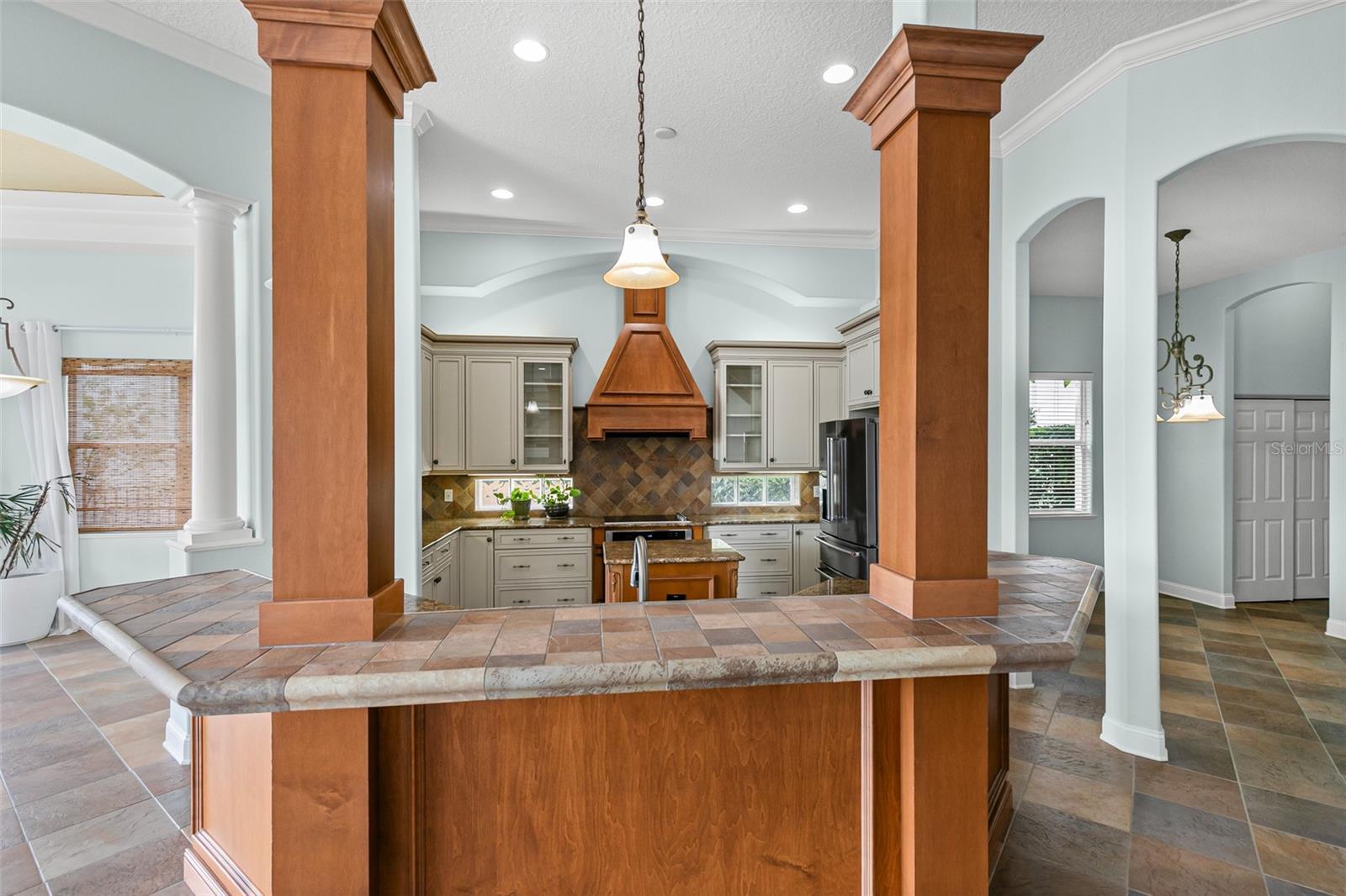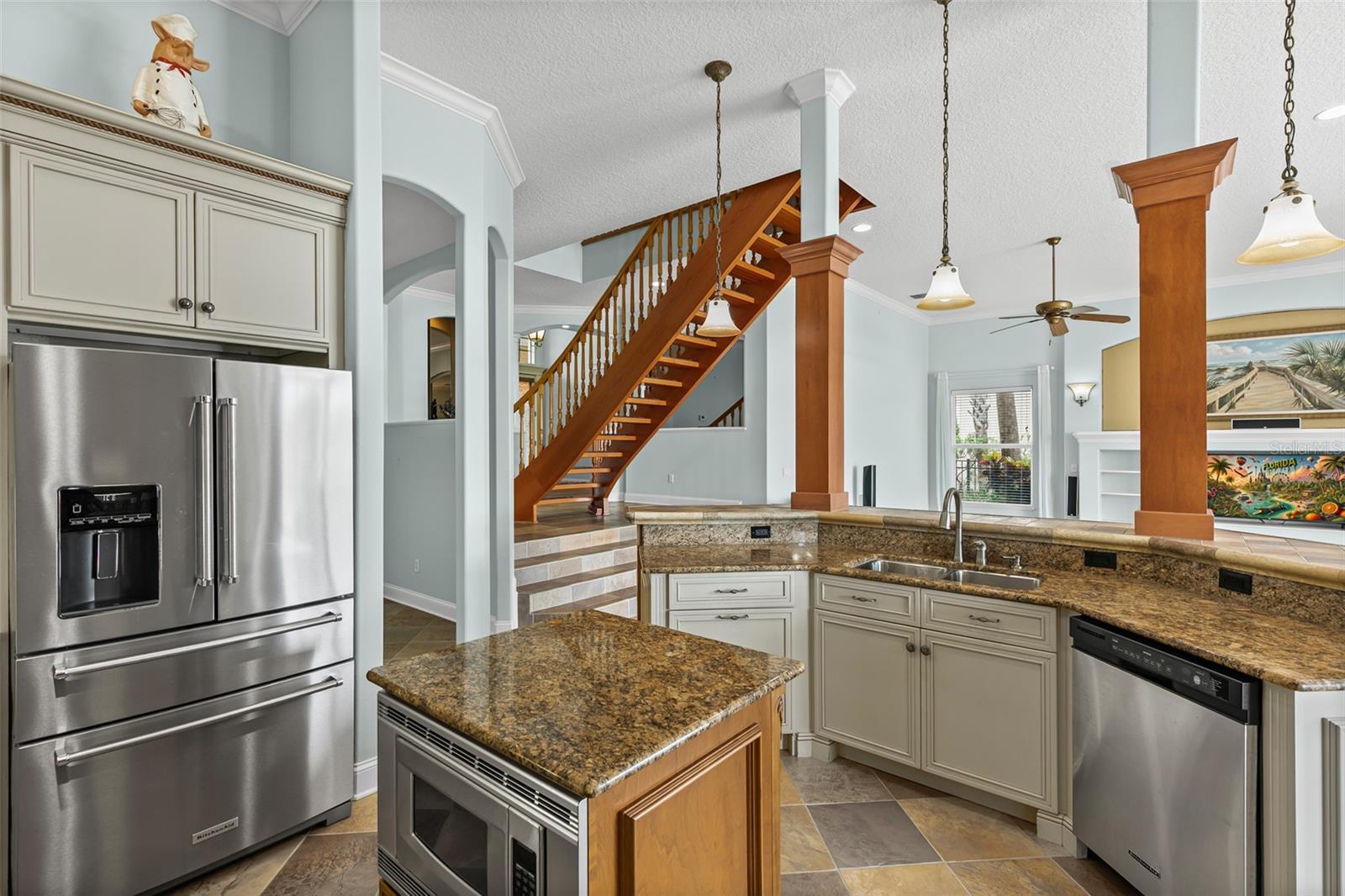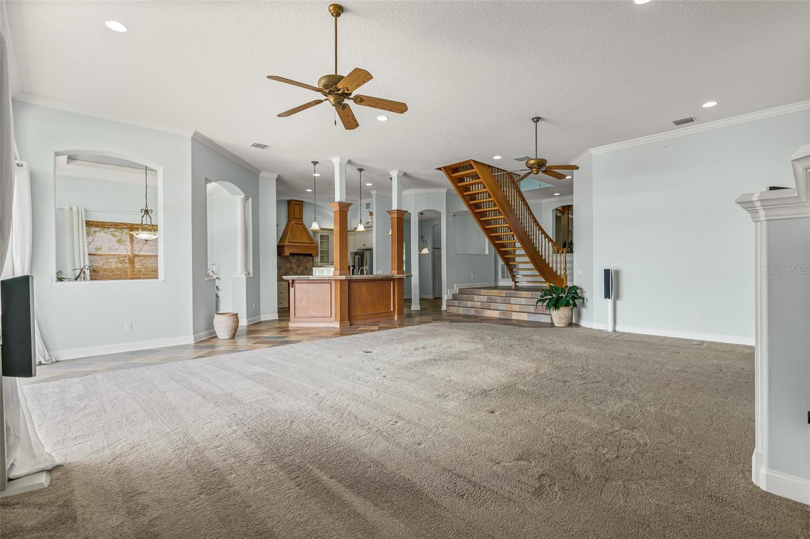 - Built-in Features, Ceiling Fans(s), High Ceilings, Kitchen/Family Room Combo, Open Floorplan, PrimaryBedroom Upstairs, Solid Surface Counters, Solid Wood Cabinets, Walk-In Closet(s), Window Treatments