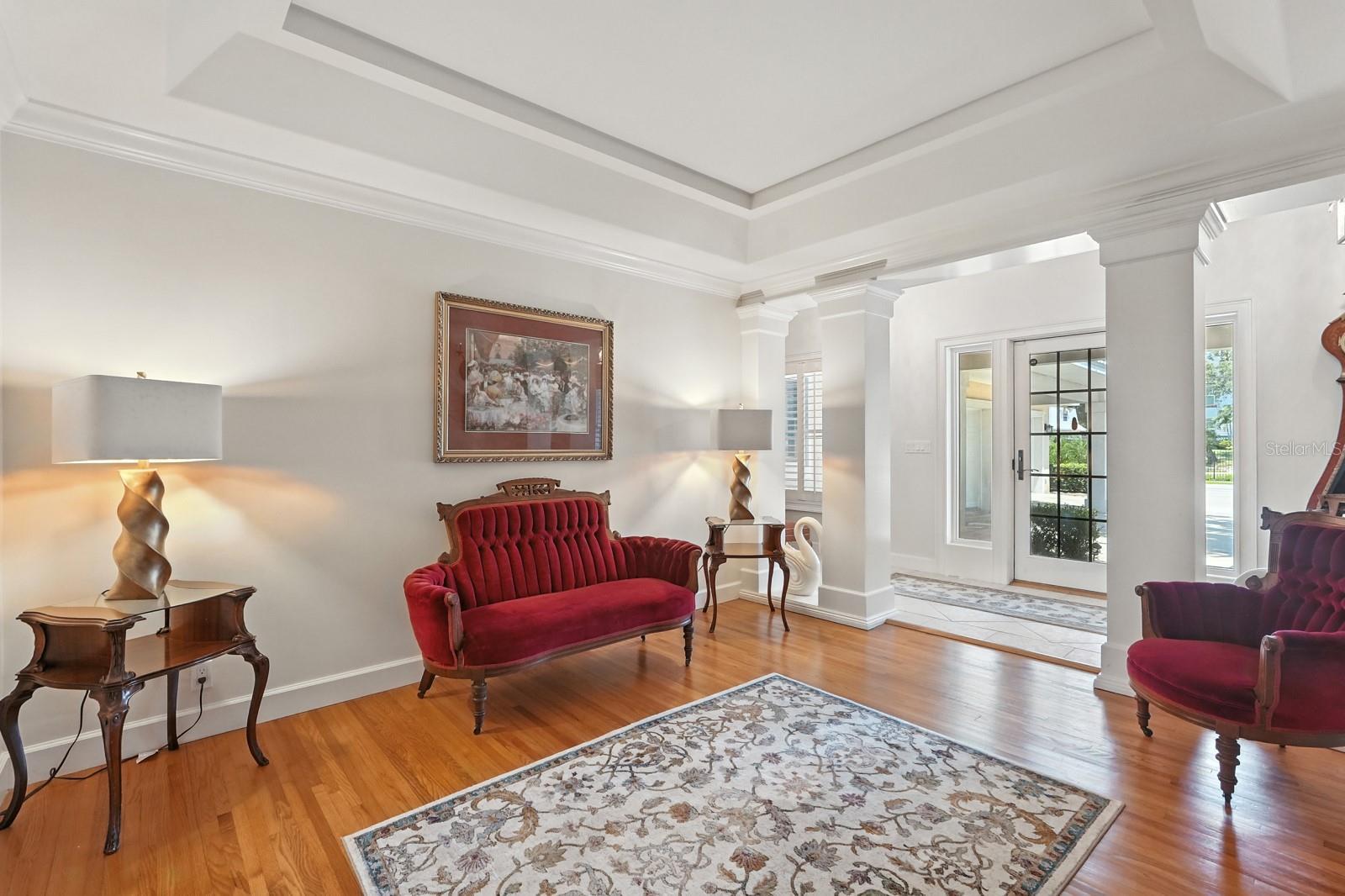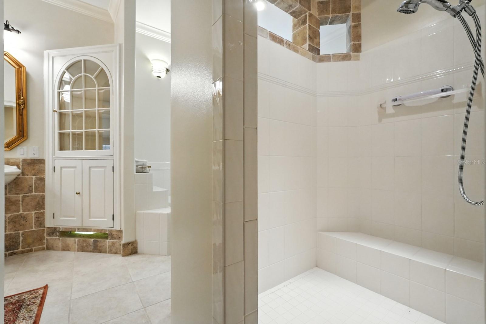 - Ceiling Fans(s), Central Vaccum, Chair Rail, Crown Molding, Dry Bar, Eat-in Kitchen, High Ceilings, Kitchen/Family Room Combo, Primary Bedroom Main Floor, Split Bedroom, Stone Counters, Thermostat, Window Treatments