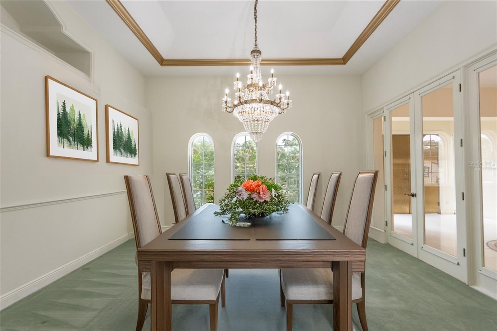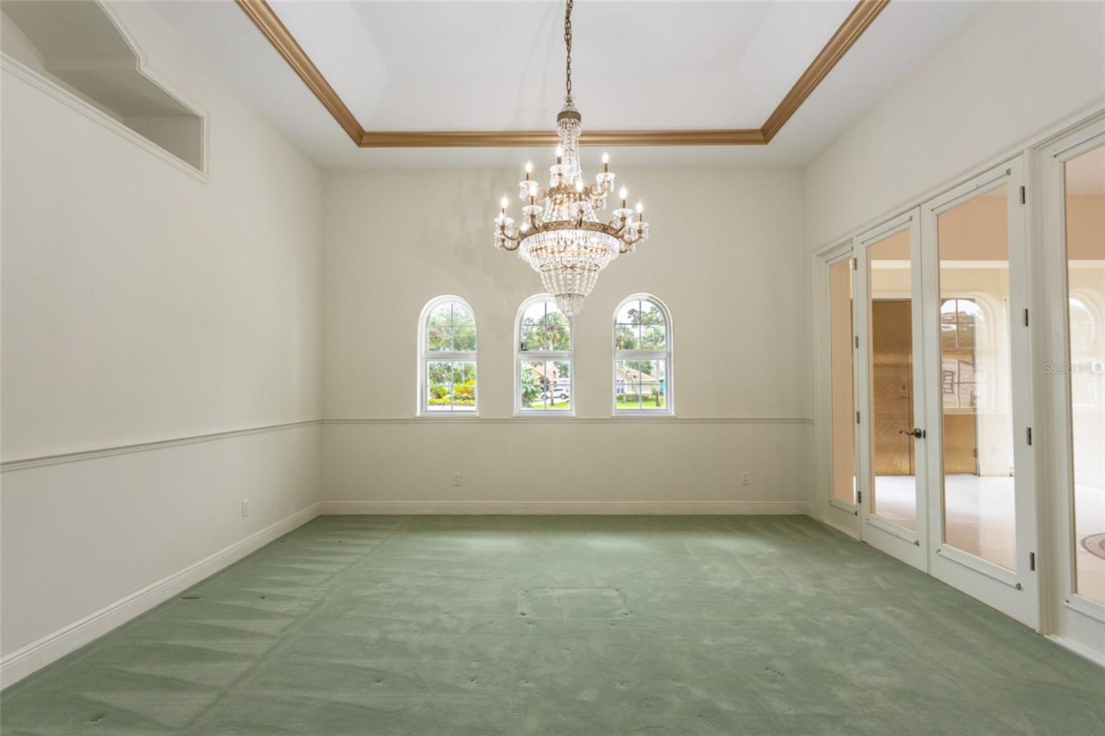 - Built-in Features, Ceiling Fans(s), Crown Molding, Eat-in Kitchen, High Ceilings, Primary Bedroom Main Floor, Thermostat, Tray Ceiling(s), Walk-In Closet(s), Window Treatments
