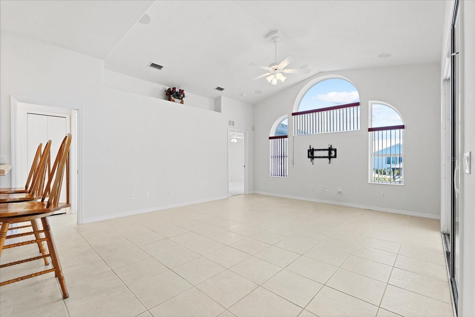 - High Ceilings, Primary Bedroom Main Floor, Solid Wood Cabinets, Window Treatments
