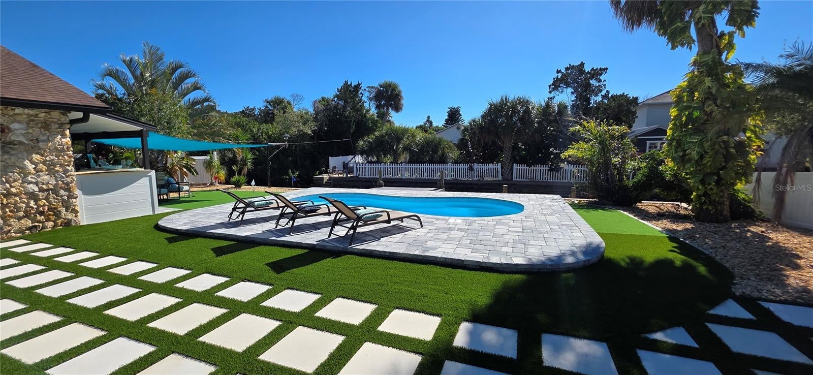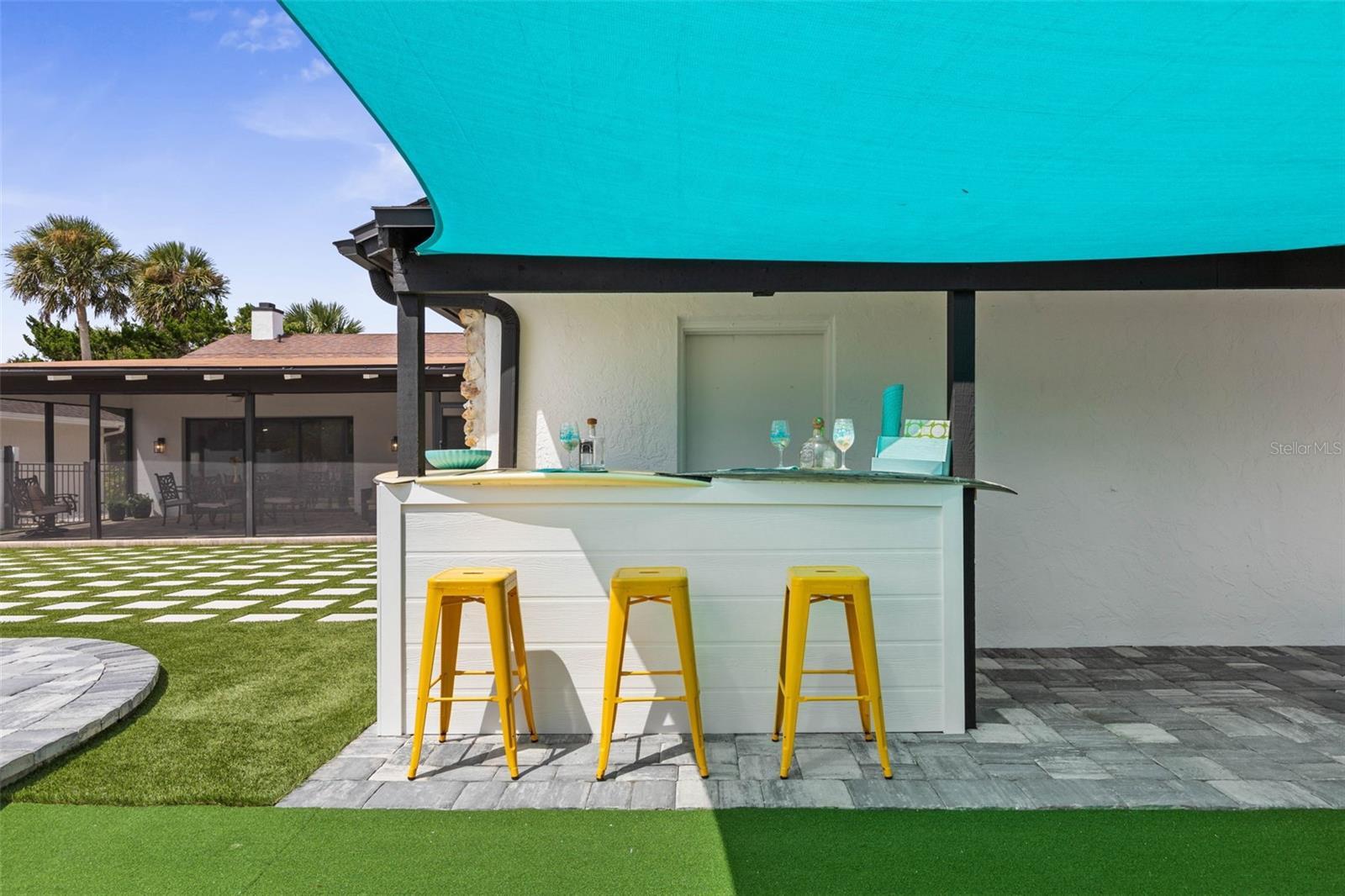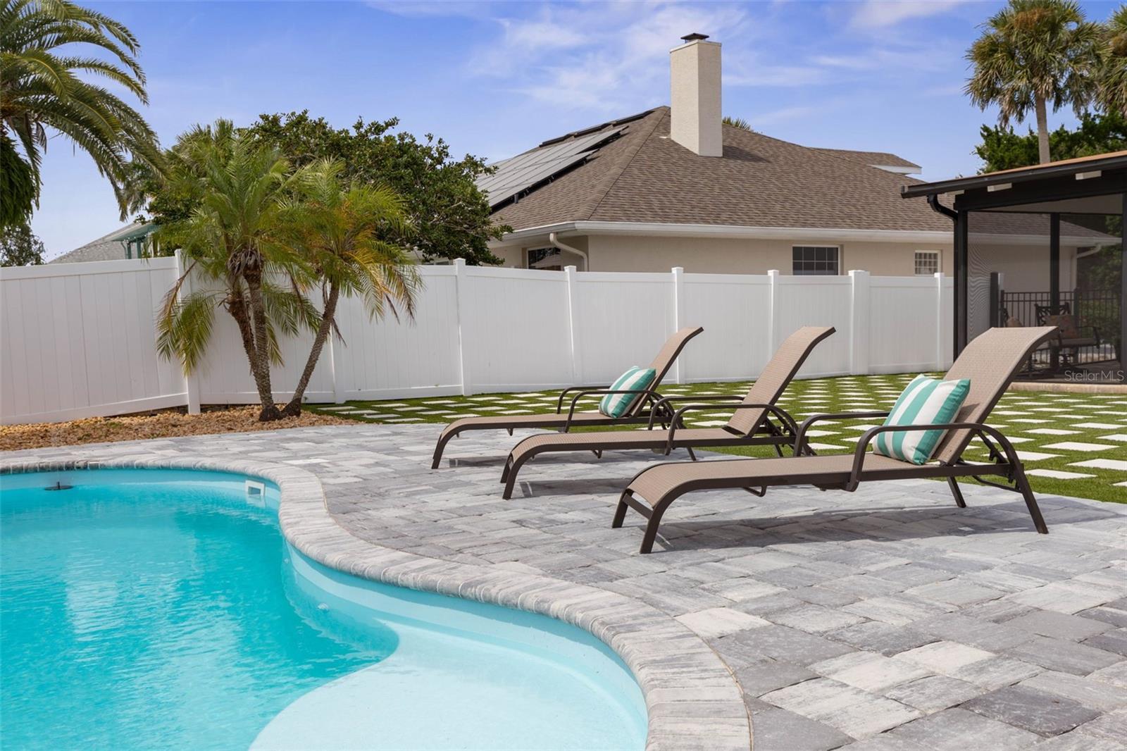 Your coastal lifestyle in Flagler Beach is here — just steps from the sand and only five homes from the Intracoastal. Recent price improvement for this spectacularly remodeled and exquisitely appointed, this waterfront residence on a saltwater canal offers a private dock, new pool and putting green and brand new luxury finishes throughout. The chef’s kitchen is a showpiece, featuring quartz counters, a built-in refrigerator, and a commercial gas range. The dining room includes a built-in wine bar with a double wine refrigerator — perfect for entertaining. An open great room with vaulted ceilings, stone fireplace, and dual sets of sliders seamlessly connect indoor and outdoor living. The thoughtful floor plan includes 4 bedrooms and 3.5 baths. The primary suite is a retreat with dual sinks, a walk-in shower with rain and handheld fixtures, and a large, custom walk-in closet with built-ins. One guest bedroom — large enough to serve as a second primary — enjoys a private ensuite bath, while the remaining two bedrooms share a Jack-and-Jill designed bath, ensuring every bedroom has direct bathroom access. A powder room is conveniently available for guests. Additional features include a separate laundry room with washer, dryer, built-in cabinetry, and folding area, plus an 650 sq. ft. oversized two-car rear accessed garage through with an 18' garage door and access to the backyard bar and entertainment space. Outdoor living is equally impressive. A large screened, pavered and covered lanai with a built-in summer kitchen and your own putting green next to a playful surfboard-topped bar by the pool create an entertainer’s paradise! The property showcases a low-maintenance paver and concrete driveway with an electronic privacy gate, while the backyard and driveway feature modern paver stone inlays surrounded by artificial turf for a clean, upscale finish. Energy-efficient geothermal heat pump systems provide heating and cooling, while new impact-resistant casement windows further enhance comfort and peace of mind. Beyond your dock, enjoy quick access to the Intracoastal Waterway for boating, inshore fishing, or ocean excursions. Just blocks away, Flagler Beach offers a laid-back, golf cart or walkable coastal lifestyle with its iconic pier, vibrant downtown restaurants and shops, and abundant opportunities for recreation on both land and water. This is a rare opportunity to own a fully remodeled, turnkey home that combines premium finishes, thoughtful design, private dockage, and a sought-after coastal location. Owner financing available!