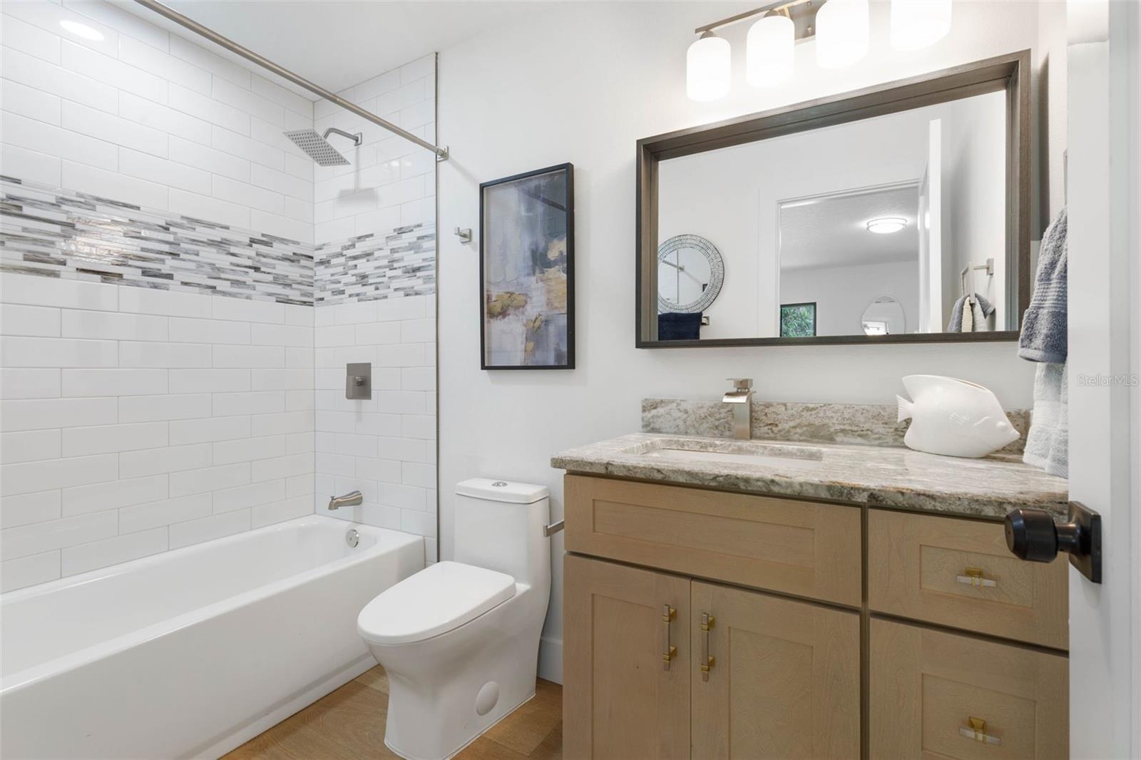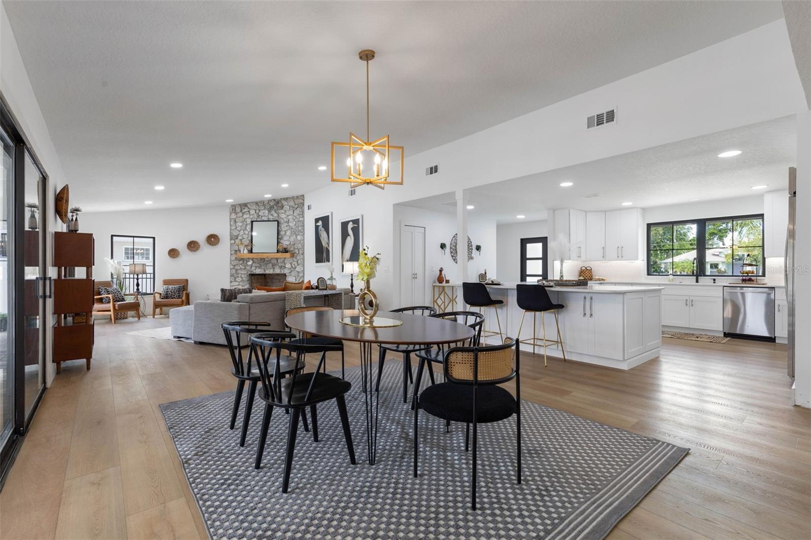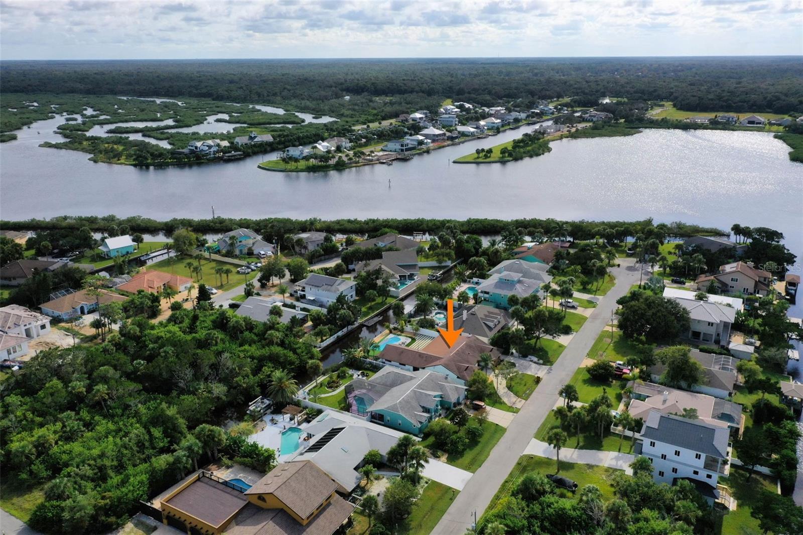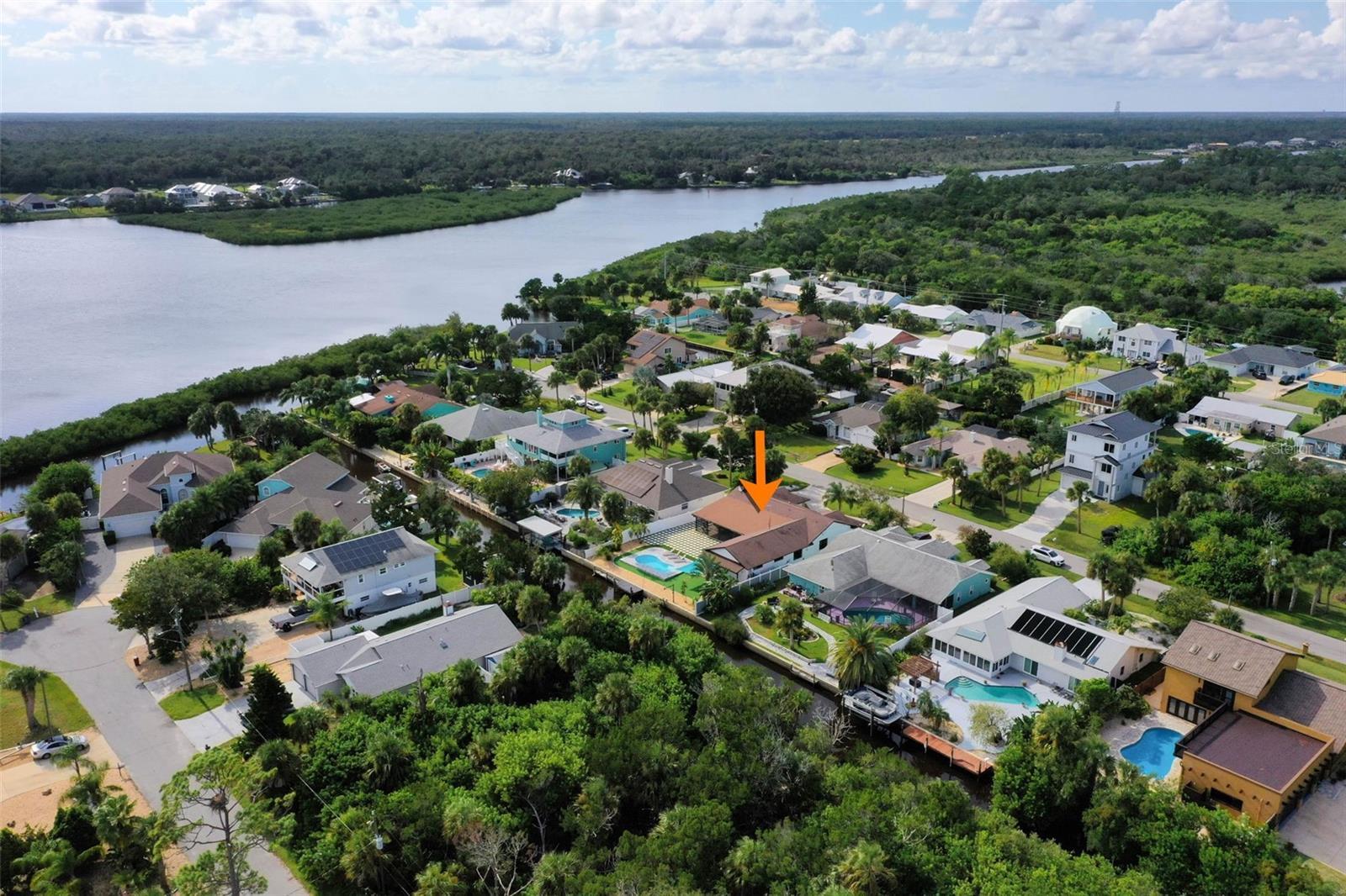 Your coastal lifestyle in Flagler Beach is here — just steps from the sand and only five homes from the Intracoastal. Recent price improvement for this spectacularly remodeled and exquisitely appointed, this waterfront residence on a saltwater canal offers a private dock, new pool and putting green and brand new luxury finishes throughout. The chef’s kitchen is a showpiece, featuring quartz counters, a built-in refrigerator, and a commercial gas range. The dining room includes a built-in wine bar with a double wine refrigerator — perfect for entertaining. An open great room with vaulted ceilings, stone fireplace, and dual sets of sliders seamlessly connect indoor and outdoor living. The thoughtful floor plan includes 4 bedrooms and 3.5 baths. The primary suite is a retreat with dual sinks, a walk-in shower with rain and handheld fixtures, and a large, custom walk-in closet with built-ins. One guest bedroom — large enough to serve as a second primary — enjoys a private ensuite bath, while the remaining two bedrooms share a Jack-and-Jill designed bath, ensuring every bedroom has direct bathroom access. A powder room is conveniently available for guests. Additional features include a separate laundry room with washer, dryer, built-in cabinetry, and folding area, plus an 650 sq. ft. oversized two-car rear accessed garage through with an 18' garage door and access to the backyard bar and entertainment space. Outdoor living is equally impressive. A large screened, pavered and covered lanai with a built-in summer kitchen and your own putting green next to a playful surfboard-topped bar by the pool create an entertainer’s paradise! The property showcases a low-maintenance paver and concrete driveway with an electronic privacy gate, while the backyard and driveway feature modern paver stone inlays surrounded by artificial turf for a clean, upscale finish. Energy-efficient geothermal heat pump systems provide heating and cooling, while new impact-resistant casement windows further enhance comfort and peace of mind. Beyond your dock, enjoy quick access to the Intracoastal Waterway for boating, inshore fishing, or ocean excursions. Just blocks away, Flagler Beach offers a laid-back, golf cart or walkable coastal lifestyle with its iconic pier, vibrant downtown restaurants and shops, and abundant opportunities for recreation on both land and water. This is a rare opportunity to own a fully remodeled, turnkey home that combines premium finishes, thoughtful design, private dockage, and a sought-after coastal location. Owner financing available!