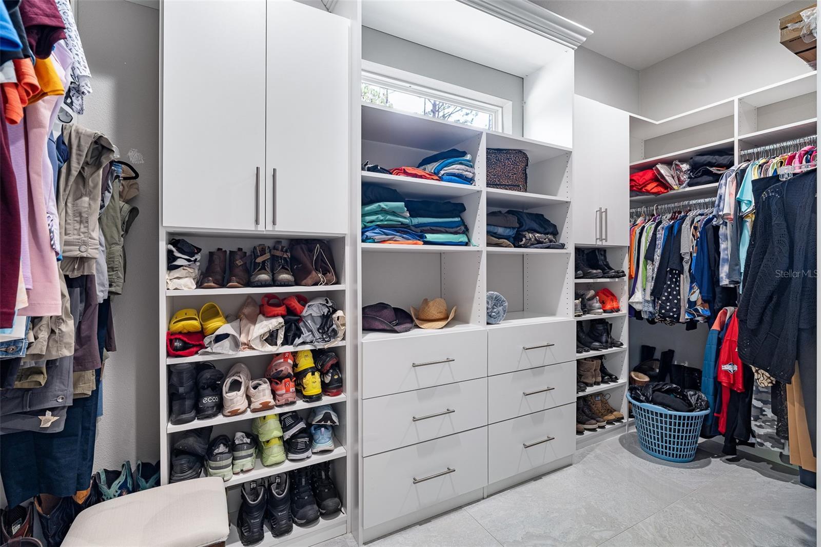 - Built-in Features, Ceiling Fans(s), Coffered Ceiling(s), Crown Molding, Eat-in Kitchen, High Ceilings, Kitchen/Family Room Combo, Open Floorplan, Primary Bedroom Main Floor, Solid Surface Counters, Solid Wood Cabinets, Split Bedroom, Stone Counters, Thermostat, Tray Ceiling(s), Walk-In Closet(s), Window Treatments