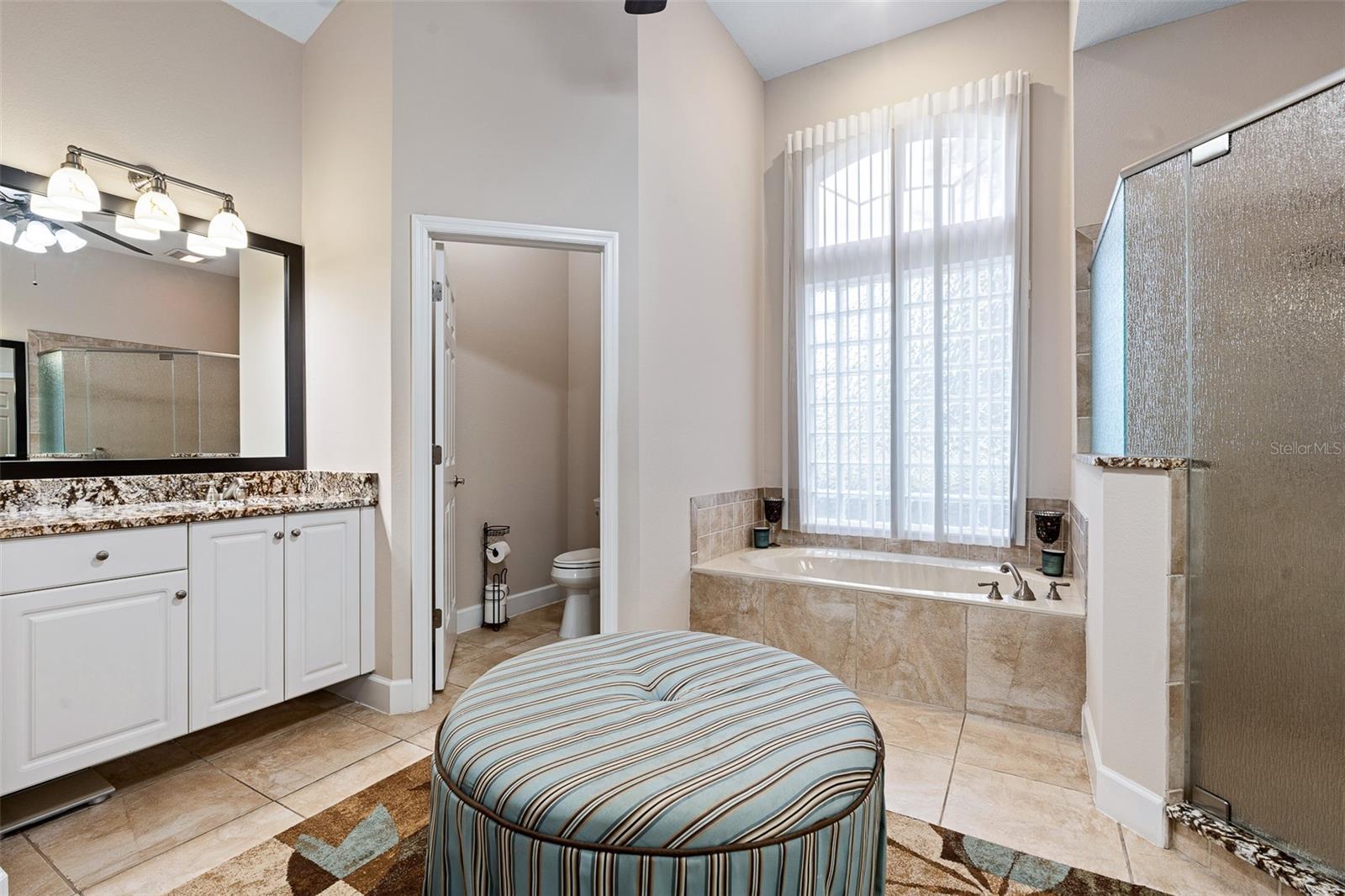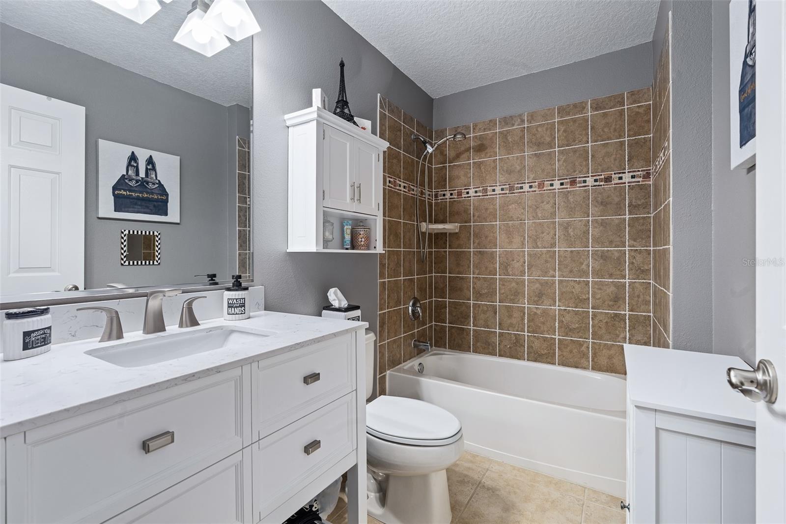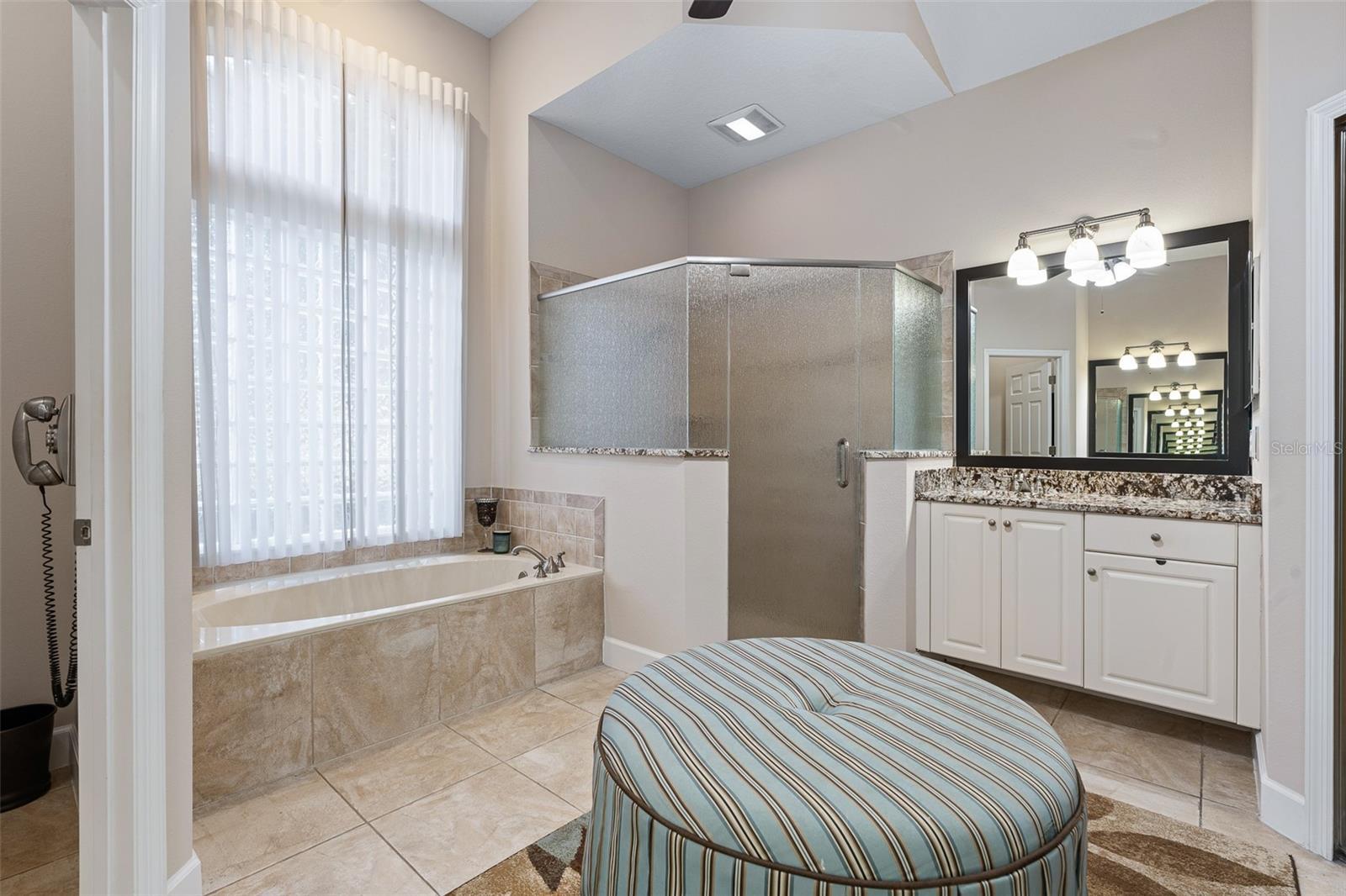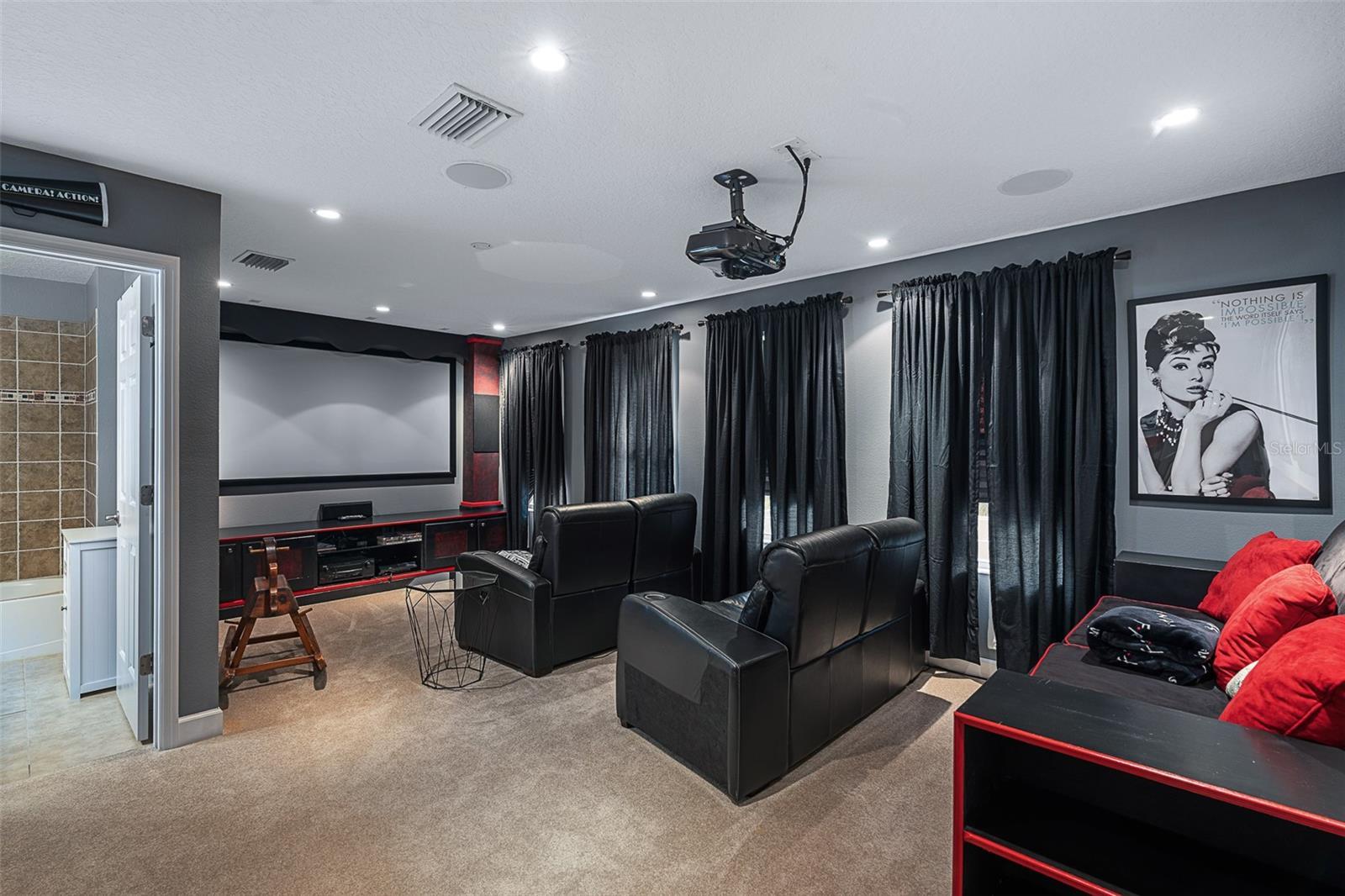 One or more photo(s) has been virtually staged. Welcome to 945 Stone Lake Drive in the prestigious gated community of Plantation Bay, offering a $25,000 ROOF CREDIT to make this already impressive property even more appealing. This spacious home has four bedrooms plus a private theater room, along with an extended air-conditioned Florida room that adds incredible flexibility for entertaining, relaxing, or creating an additional office or fitness space all overlooking your SOLAR heated POOL. Step inside through double glass entry doors to find tile floors with mosaic tile accents. The formal dining room boasts a large window, crown molding, and plush carpet, while the formal living room offers high ceilings, crown molding, and comfortable finishes. The renovated kitchen is a showpiece with 42-inch white cabinetry featuring soft-close dovetail construction and pull-outs, complemented by a mosaic tile backsplash, granite countertops, and a copper sink. Stainless steel apps include a double oven, and a pantry closet provides excellent storage. The breakfast nook opens to the Florida room and features additional countertop and breakfast bar seating that flows into the family room, where you'll enjoy tile floors, gas fireplace, crown molding, and serene views of the pool. The master suite is a retreat with upgraded carpet, tray ceiling with crown molding, surround sound, and dual walk-in closets with built-ins. The spa-inspired bath includes dual sinks with granite countertops, walk-in tile shower, soaking tub, and private commode. With a split floor plan, bedrooms 2-4 are on the other wing of the home. Each with custom built-ins with closet, one with walk-in closet. Sharing Bathroom 2 with granite countertop with 2 sinks, tile tub/shower and door to pool area. Upstairs, the bonus theater room has built-in chairs, blackout curtains, projection screen, mini-split AC, and full surround sound connected to the Control4 system. Upstairs completed with a third bathroom with quartz vanity and tile tub/shower combo. Outdoors, enjoy your private oasis with a four-year-old solar-heated screened pool, extended paver lanai, and preserve views for ultimate privacy. The extended Florida room with its own AC is the perfect spot for entertaining or relaxing year-round. Other upgrades include Control4 smart-home integration with surround sound, lighting, and cameras; mini-split AC units in the master, and upstairs; paver driveway and walkway, laundry room with cabinetry, and widened 2-car garage with built-ins, sink, hot water heater (2021), ceiling racks, generator plug, AC system from 2019, and whole-house water filtration system. Living in Plantation Bay means enjoying one of Florida's premier golf and country club communities. 45 holes of championship golf, 9 lighted Har-Tru tennis courts, 10 pickleball courts, new 30-million-dollar Founders Clubhouse, additional Prestwick Clubhouse, a state-of-the-art fitness center and spa, multiple resort-style pools with cabana bar and grill, miles of walking and biking paths and fully activities calendar. Memberships are available at various levels, from full golf privileges to social memberships for dining and club events. Buyers of this home, who want to receive a substantial discount on initiation fee at the club, ask listing agent for details. This home combines spacious living, luxury amenities, and a prime location with an unbeatable community lifestyle-plus the added value of a $25,000 roof credit. Don't miss your chance to make it yours.
