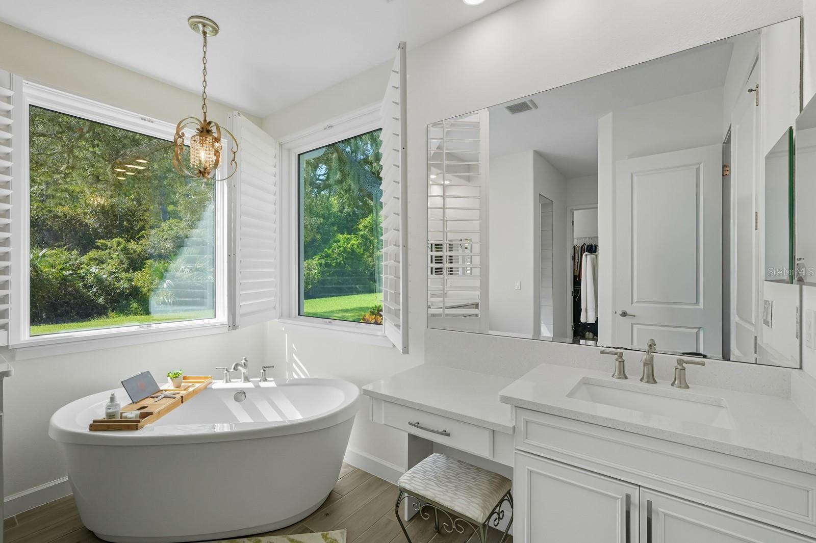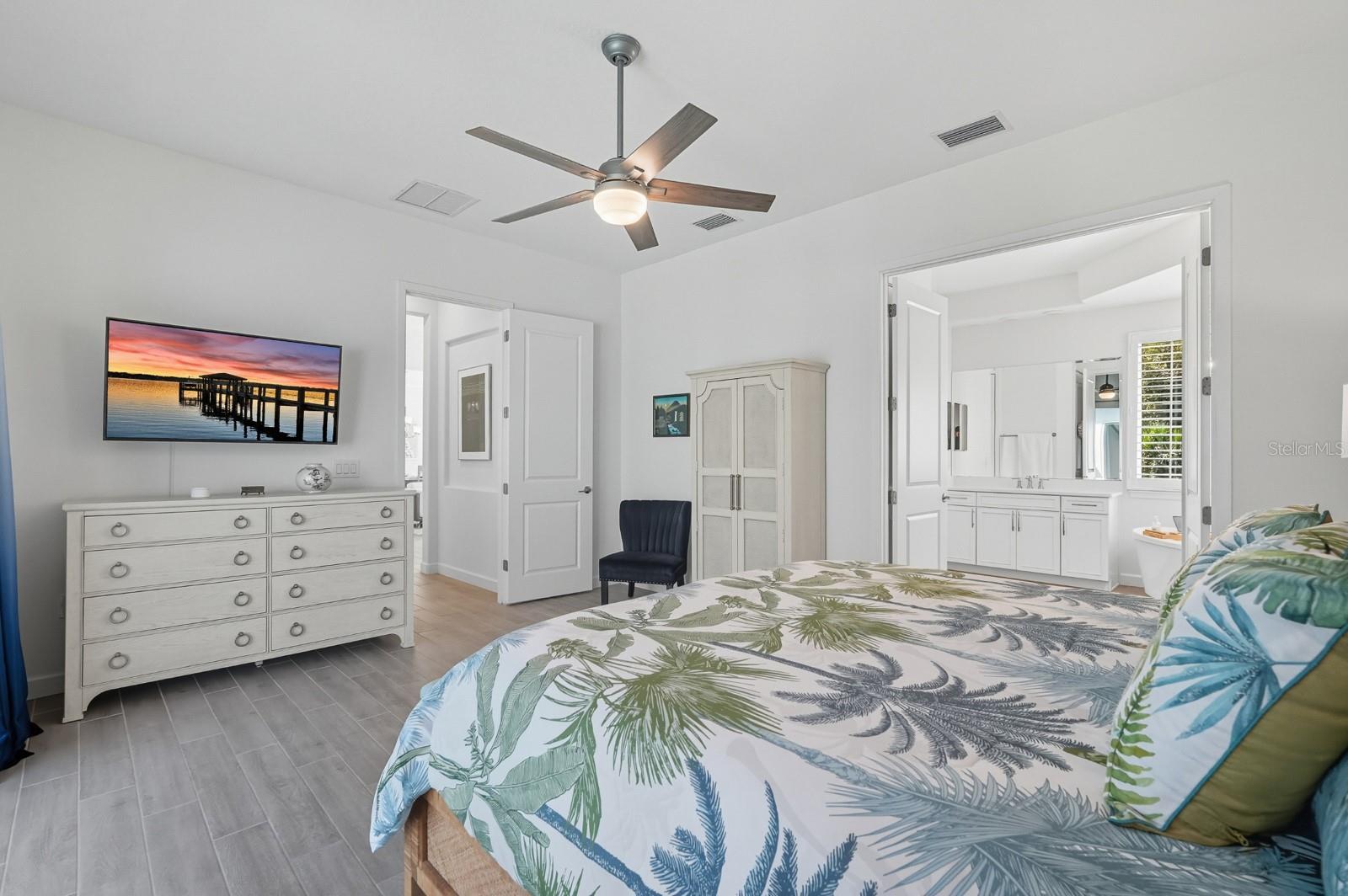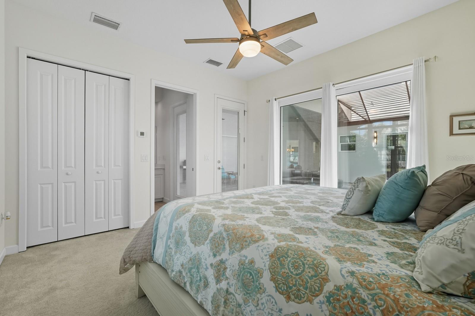- Attic Ventilator, Ceiling Fans(s), Coffered Ceiling(s), Crown Molding, High Ceilings, Open Floorplan, Primary Bedroom Main Floor, Thermostat, Walk-In Closet(s)