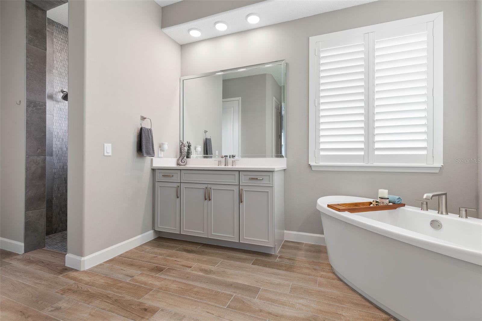 - Built-in Features, Cathedral Ceiling(s), Ceiling Fans(s), Eat-in Kitchen, High Ceilings, Kitchen/Family Room Combo, Living Room/Dining Room Combo, Open Floorplan, Primary Bedroom Main Floor, Solid Surface Counters, Solid Wood Cabinets, Split Bedroom, Stone Counters, Thermostat, Tray Ceiling(s), Walk-In Closet(s), Window Treatments