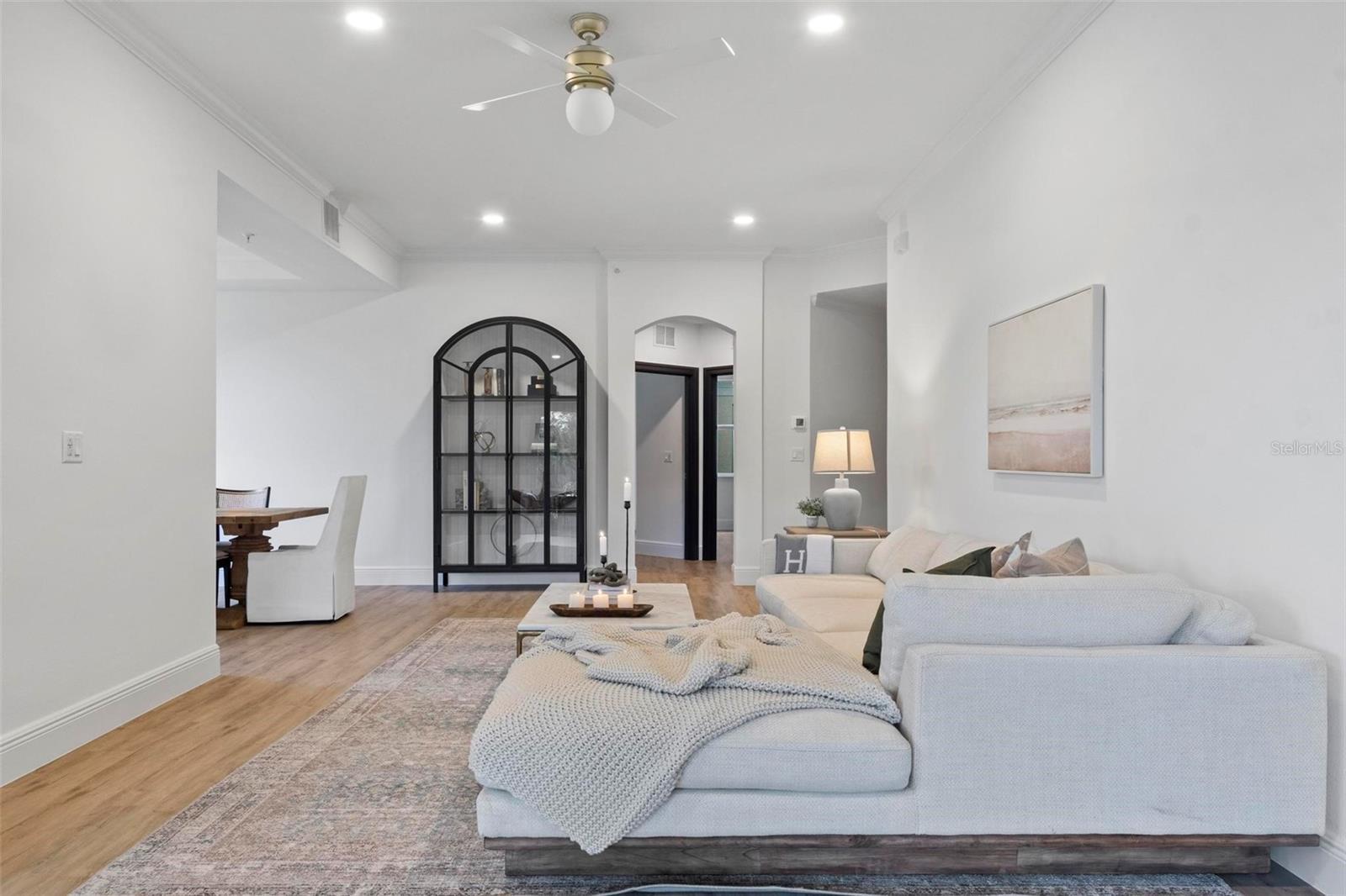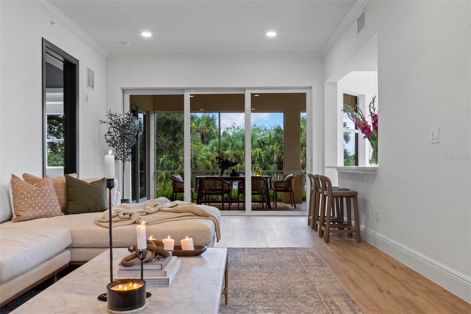 Introducing The Oakmont at Grand Vista, Grand Haven’s newest Intracoastal development. This 3-bedroom, 3-bath ground-level corner residence spans 2,167 square feet and represents an incredible opportunity to enjoy a peaceful and relaxed coastal lifestyle. Perfectly positioned just steps from the Grand Haven Golf Club clubhouse, this home offers serene views and the gentle ambiance of the Intracoastal Waterway. Concrete block construction, high-impact windows and doors, and a Flood Zone X location ensure strength, safety, and lasting peace of mind. Inside, 10-foot ceilings, crown molding, and 7-inch baseboards establish an open, elegant atmosphere. The gourmet kitchen showcases European-style cabinetry with deep pull-out drawers, luxury quartz countertops, stainless steel GE appliances, and a custom Italian tile backsplash. The formal dining area and cozy café nook create a seamless flow for entertaining or unwinding at home. The primary suite is a tranquil retreat, featuring dual closets with custom built-ins and a spa-inspired bath with a freestanding soaking tub, walk-in shower, dual vanities, and private water closet. Two guest suites—one with its own ensuite bath—offer comfort and privacy for family and visitors. Additional highlights include a laundry room with sink and storage, a private 2-car garage with epoxy floor, and a screened-in patio with tile flooring—perfect for morning coffee or evening relaxation. Residents of Grand Vista enjoy resort-style amenities including a pool, fitness center, café, tennis and pickleball courts, and scenic walking trails along the Intracoastal. With low monthly fees covering water, sewer, cable, internet, maintenance, etc. The Oakmont combines thoughtful design, convenience, and tranquility in one of Palm Coast’s most desirable communities.