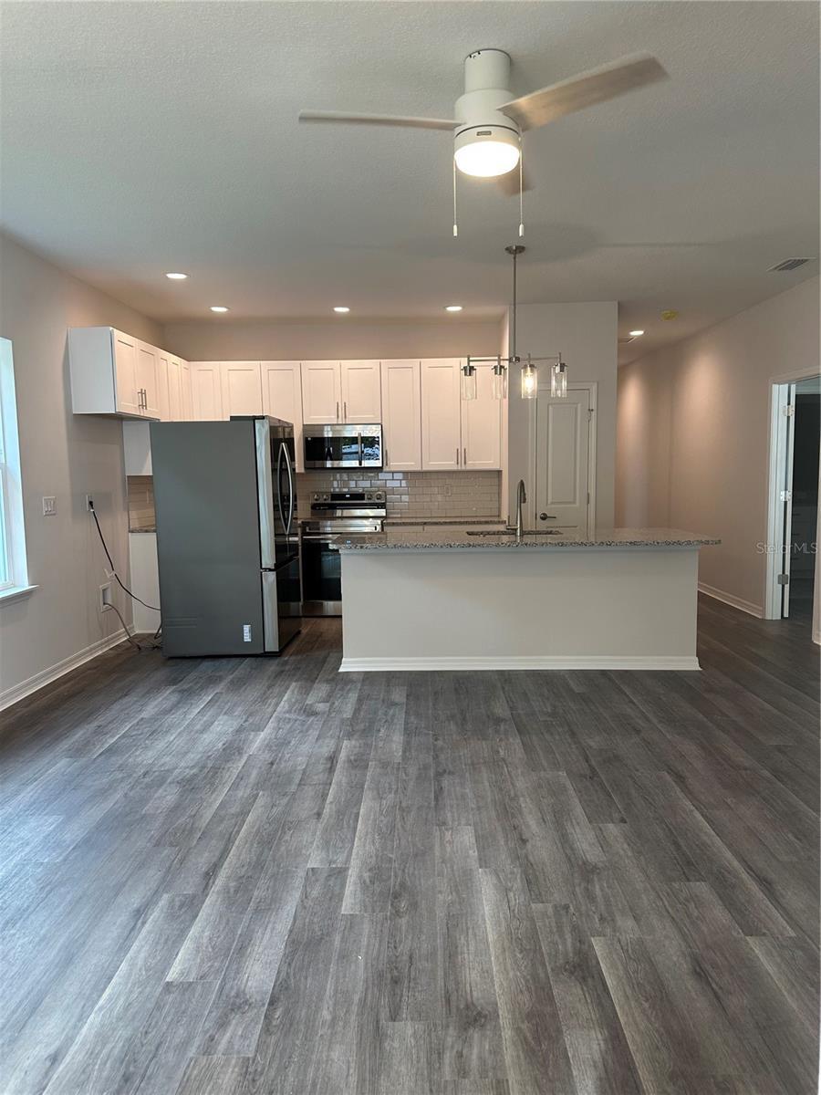 - Ceiling Fans(s), High Ceilings, Living Room/Dining Room Combo, Primary Bedroom Main Floor, Solid Surface Counters, Split Bedroom, Walk-In Closet(s)