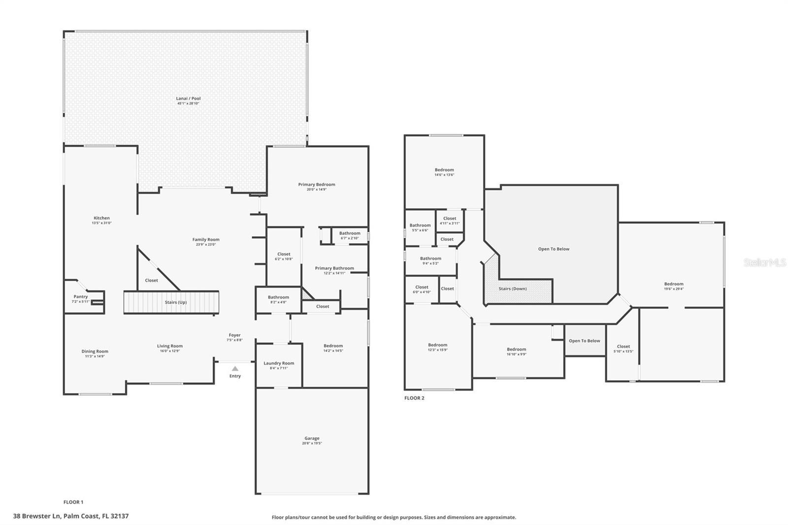 2023 ROOF. SOLAR PANELS RENOVATED KITCHEN REMODELED PRIMARY NEW FLOORING Welcome to 38 Brewster Lane, a spacious 6-bedroom, 3-bath pool home offering nearly 4,000 square feet of living space and a flexible layout ideal for large households and multi-generational living. Located in a convenient Palm Coast neighborhood within walking distance to AdventHealth Palm Coast, this property combines comfort, modern upgrades, and exceptional functionality. Inside, the home features soaring 20-foot ceilings, abundant natural light, and a welcoming open floor plan. The main level includes the primary suite plus a second bedroom with new ceramic tile flooring—an ideal setup for guests, extended family, or a private home office. The primary bathroom has been updated with fresh, modern finishes for added comfort. The fully remodeled kitchen is designed for everyday living, featuring soft-close cabinetry, stainless steel LG appliances, a built-in oven, cooktop, and Samsung refrigerator. The spacious eat-in area offers views of the pool, making it perfect for casual meals or morning coffee. Upstairs, you’ll find a versatile layout with multiple bedrooms, including one with a private sitting area and another with an efficiency-style setup—ideal for teens, in-laws, or visitors seeking additional space. New carpet installed in 2024 adds comfort and warmth, and the dual-access staircase provides architectural character and ease of movement throughout the home. Step outside to your private screened-in pool area, complete with a child safety fence, updated pool pump and filter, and a vinyl-fenced backyard. The oversized shed offers additional storage, and triple sliding doors seamlessly connect indoor and outdoor living areas—perfect for enjoying Florida’s year-round sunshine. This home also features a 2023 roof and solar panels (paid off at closing) to help with energy efficiency, keeping average electric bills between approximately $80–$250 per month (amounts may vary). Additional highlights include an updated HVAC system, abundant storage space, and an easy-care lot with no HOA. Location is a key advantage—you’re approximately a 13-minute walk or 5-minute drive to AdventHealth Palm Coast, and just minutes from shopping, schools, parks, restaurants, and major roadways for easy commuting. If you’ve been searching for a well-maintained, spacious Palm Coast home with a pool, solar panels, upgraded kitchen, and a flexible floor plan, this property offers outstanding value and convenience. Buyers are encouraged to verify all measurements and information.