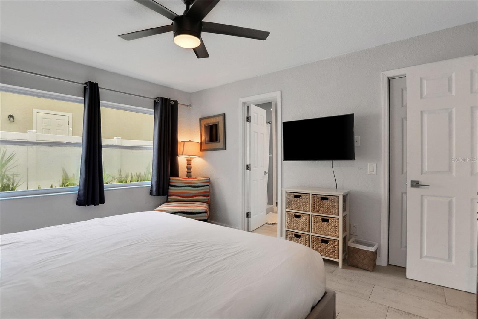 - Ceiling Fans(s), Eat-in Kitchen, Open Floorplan, Primary Bedroom Main Floor, Solid Surface Counters, Solid Wood Cabinets, Thermostat, Walk-In Closet(s), Window Treatments
