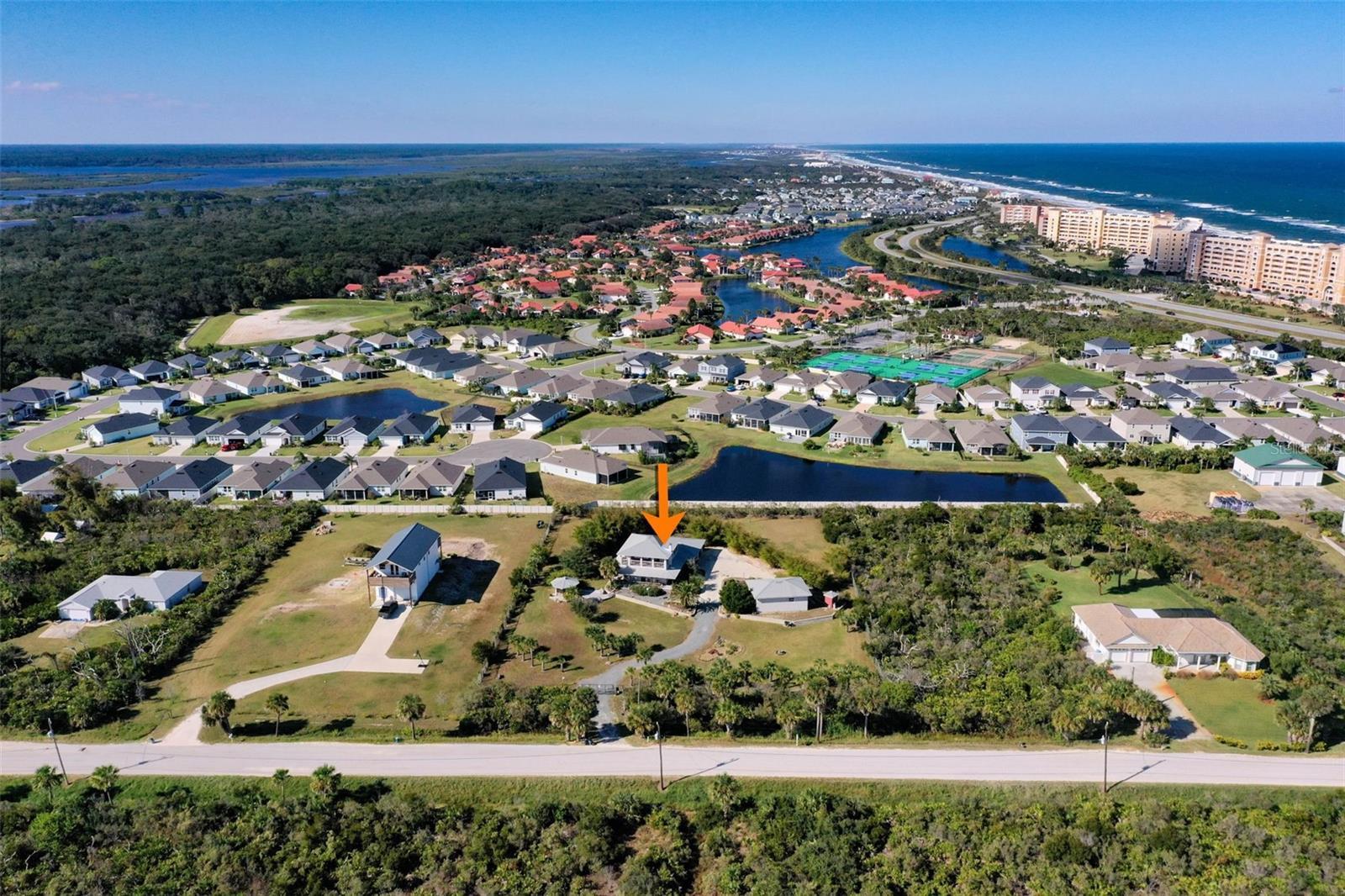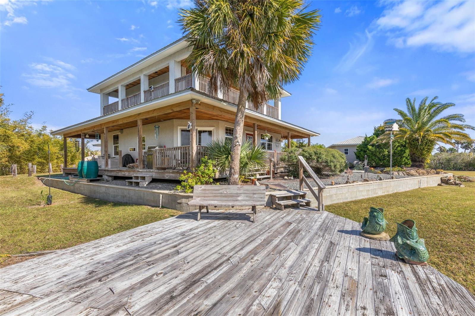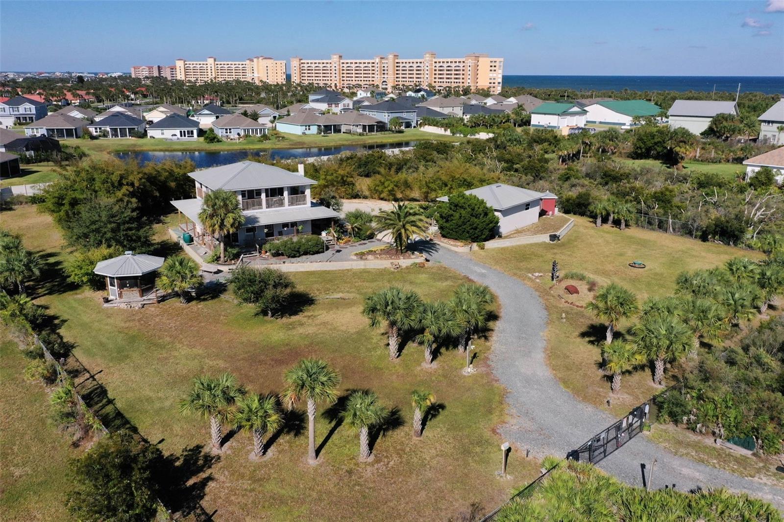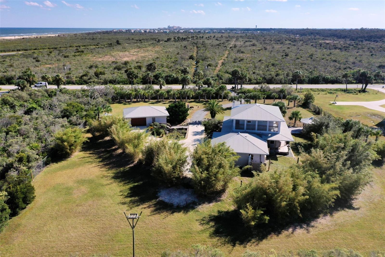 Welcome to your rare, Old Florida 1.45 Acre compound, steps away from the Atlantic Ocean! The current owner is the ONLY owner and built this enduring, concrete poured, first and second floor including walls, fortress that can and has weathered the storms (literally), for almost the past 20 years! This home also includes a safe room, complete with concrete walls! Your front view along with your first and second floor wrap around decks, will have an expansive view of protected Washington Oaks to the south. You will be delighted with ocean views from the Southeast 2nd floor wrap around porch (this corner of the porch is PERFECT for a hammock!) This home was designed for Florida living at its finest. High ceilings throughout the first floor of the main house. Fantastic kitchen with double oven and gas cook top. The preferred gas cooking upgrade is only complete with the included hood to complete the experience. Double dishwasher accommodates all schedules! Free standing, Vermont castings wood burning fireplace makes for a cozy environment when the temperature does dip, adding a cuddled up ambiance by the ocean! The second floor is for OWNERS ONLY - your main suite has a great sitting area by the sliders out to the wrap around porch. Well appointed ensuite bath includes dual shower, vanity with a view and laundry chute conveniently included, directly to the laundry room! The guest house is a separate dwelling, complete with an 18' x 24' garage, and is also a concrete poured structure. The third bedroom and third full bath are located in the Guest House dwelling. Ample bedroom with full bath keeps all guests/visitors comfortable and is just steps from the main house. This is all located on your sprawling, fenced 1.45 acre compound, complete with a coded gate from the main road. There is plenty of space for a few ADU's, a luxury travel coach or a large boat. Bamboo clusters surround the back of the house providing a tropical feel as well as some natural privacy. This expansive backyard even includes an Osprey perch as well as numerous birdhouses scattered throughout the property. All of this amazing property would not be complete without the gazebo that is caddy corner to the Southwest corner of the main house. Just over 1,400 feet to the ocean and just over 2,000 feet to the ICW. You are only 3 minutes from Bing's Landing to launch your boat! 7 minutes to Publix supermarket and less than 8 minutes to I-95! You are less than 20 miles to historic St. Augustine. Less than 75 miles to Jacksonville International Airport! Contact me TODAY to secure this unique and amazing FL Gem for those that need some elbow room and no HOA!