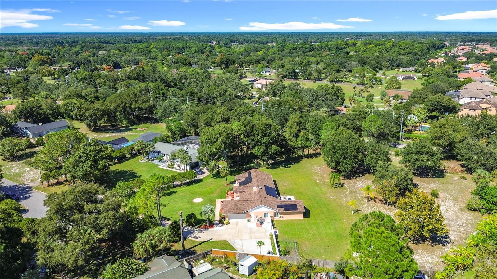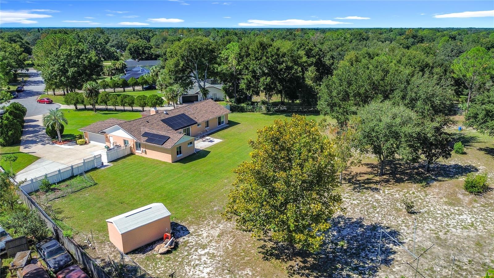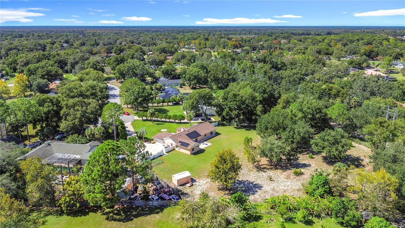 Under contract-accepting backup offers. Your dream home just hit the market! Tucked away at the end of a quiet cul-de-sac, this stunning 5-bedroom, 3-bath retreat sits on an incredible 1.5+ acre lot—one of the most unique in the area! With a new roof and gutters (2025), HVAC (2023), and fully paid-off solar panels, this home blends comfort, efficiency, and peace of mind. Step inside to a freshly painted exterior, a cozy wood-burning fireplace, and a recently renovated owner's suite designed for pure relaxation. The open, light-filled layout invites connection and comfort, while the sprawling lot offers endless possibilities—build a second home, garden, or create your private backyard paradise. Plus, with no mandatory HOA, you have the freedom to make it truly yours. Enjoy the perfect blend of modern updates, space, and serenity—a one-of-a-kind Florida retreat ready to welcome you home.