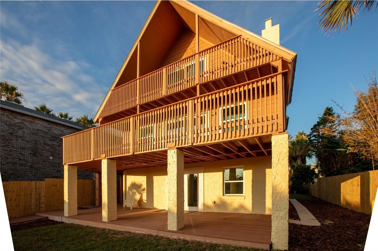 One or more photo(s) has been virtually staged. DIRECT OCEAN FRONT 3/3 +bonus room HOME makes you feel like you are always on VACATION! The moment you step inside you are transported back to summer at the beach house of your childhood but with lots of recent UPDATES! It has towering vaulted ceilings with lots of glass giving spectacular views of the BEACH beyond the dunes and EXPANSIVE DECKS where you can breathe in the OCEAN air! Watch the sunrise while you sip your morning coffee on the deck. The entire exterior was FRESH PAINTED in September, with elastomeric on the stucco & Sherwin Williams on the wood, it has newer PAINT inside, BRAND NEW FENCING, recently updated kitchen with NEW CABINETS, NEW QUARTZ counter tops, Built-in GE 9800 FRIDGE, NEW DOUBLE OVEN, island hood, NEW wood look TILE throughout, Anderson windows, 2 NEW windows facing the ocean, Craftsman doors, 30 year METAL ROOF replaced in 2023, and recently rebuilt PRIVATE BEACH walk over which is an option that many comparable homes in the neighborhood could not boast. ALL 3 BATHROOMS have recently been REMODELED and UPDATED. Entire 3rd floor is dedicated to Master Suite-with glass wall for ocean views or close the curtains for privacy, plus catwalk to private 3rd floor balcony. Tongue & groove cedar that has been painted white for an open feel to the vaulted A-frame space that feels massive. There is a bonus room downstairs that would make a great office, extra living space or has room for multiple bunk beds. Door at top of stairs allows you to close off the downstairs for guests, kids, etc... Backyard has room for a pool & two outdoor showers. Lot base elevation is approximately 13’ and ZONE X, meaning lenders will not require flood insurance. There are multiple layers of dunes between the beach and the house, making this one of the best areas to own OCEAN FRONT property in St. Johns County! This would make a spectacular primary home, second home or a VACATION RENTAL in high demand! It’s not currently used as a vacation rental property but was a few years ago, renting for roughly $8-12k per week at the time. All measurements, dimensions and important info to be verified by buyer. This listing contains some virtually staged photos.