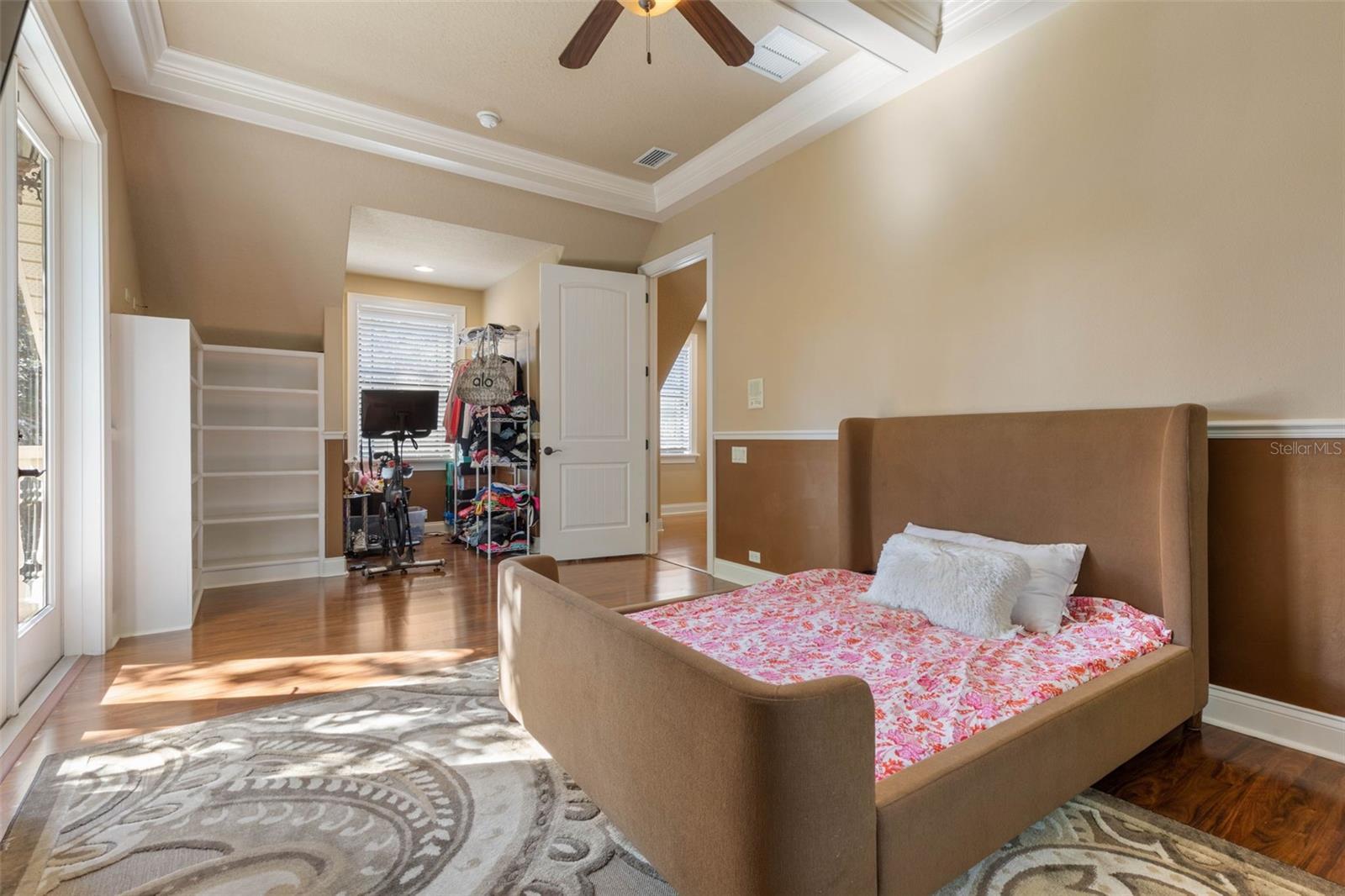 - Ceiling Fans(s), Crown Molding, Eat-in Kitchen, High Ceilings, Primary Bedroom Main Floor, Solid Surface Counters, Solid Wood Cabinets, Tray Ceiling(s), Walk-In Closet(s)