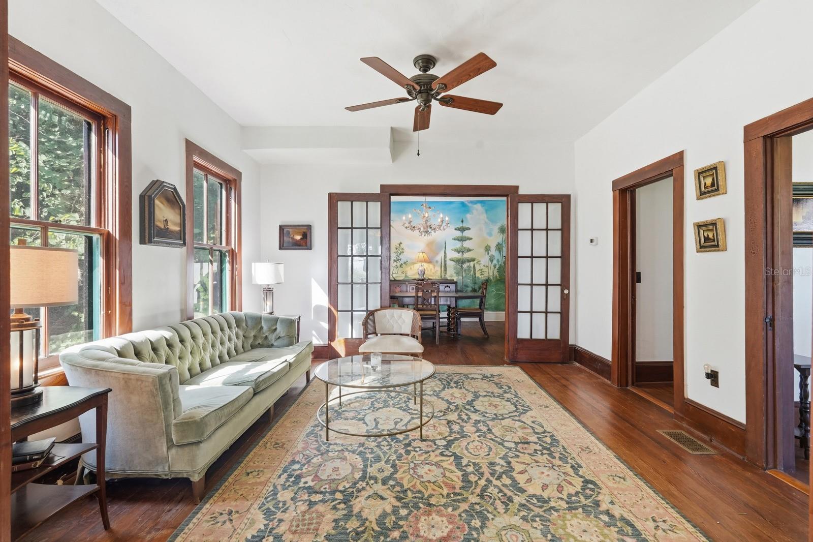 Under contract-accepting backup offers. Welcome to Moonwake — a rare and enchanting historic retreat on Drayton Island, where time slows, nature surrounds, and Old Florida charm meets extraordinary craftsmanship.Tucked away on the peaceful shores of Lake George and accessible only by private boat or the island ferry, Moonwake is more than a property — it’s a destination, a legacy, and a lifestyle. Designed in the late 1800s by renowned American designer Gustav Stickley, this one-of-a-kind estate is a masterpiece of rustic architecture and timeless design. The main home offers 5 bedrooms and 2 baths, beautifully curated with original Stickley touches and furnished with select authentic Stickley pieces that will convey with the sale. Rare for historic Florida homes, Moonwake features a true concrete-floor basement, adding both storage and structural integrity. A charming separate structure—known as the Cook’s House—provides an additional 1 bedroom and 1 bath. Currently operating as a highly successful 5-star Airbnb, this guest cottage generates over $20,000 annually, making it a perfect blend of personal retreat and income opportunity. Step outside and you’ll discover grounds designed to inspire: a vibrant butterfly and pollination garden, towering oaks dripping in Spanish moss, and open skies that glow at sunset—where “Moonwake” earns its name as moonlight shimmers across the lake. An all-house generator ensures comfort and security year-round, while a pontoon boat conveys with the property, offering immediate adventure on Florida’s second-largest lake. The included boat slip at the Drayton Island RV Resort is transferable, adding unmatched convenience for island living. Situated on agriculturally zoned land, Moonwake offers uncommon privacy, natural beauty, and a chance to own a true piece of Florida history. Whether you’re seeking a serene homestead, an exclusive getaway, or an income-producing island escape, Moonwake invites you to slow down, breathe deeply, and experience the unforgettable magic of Drayton Island.