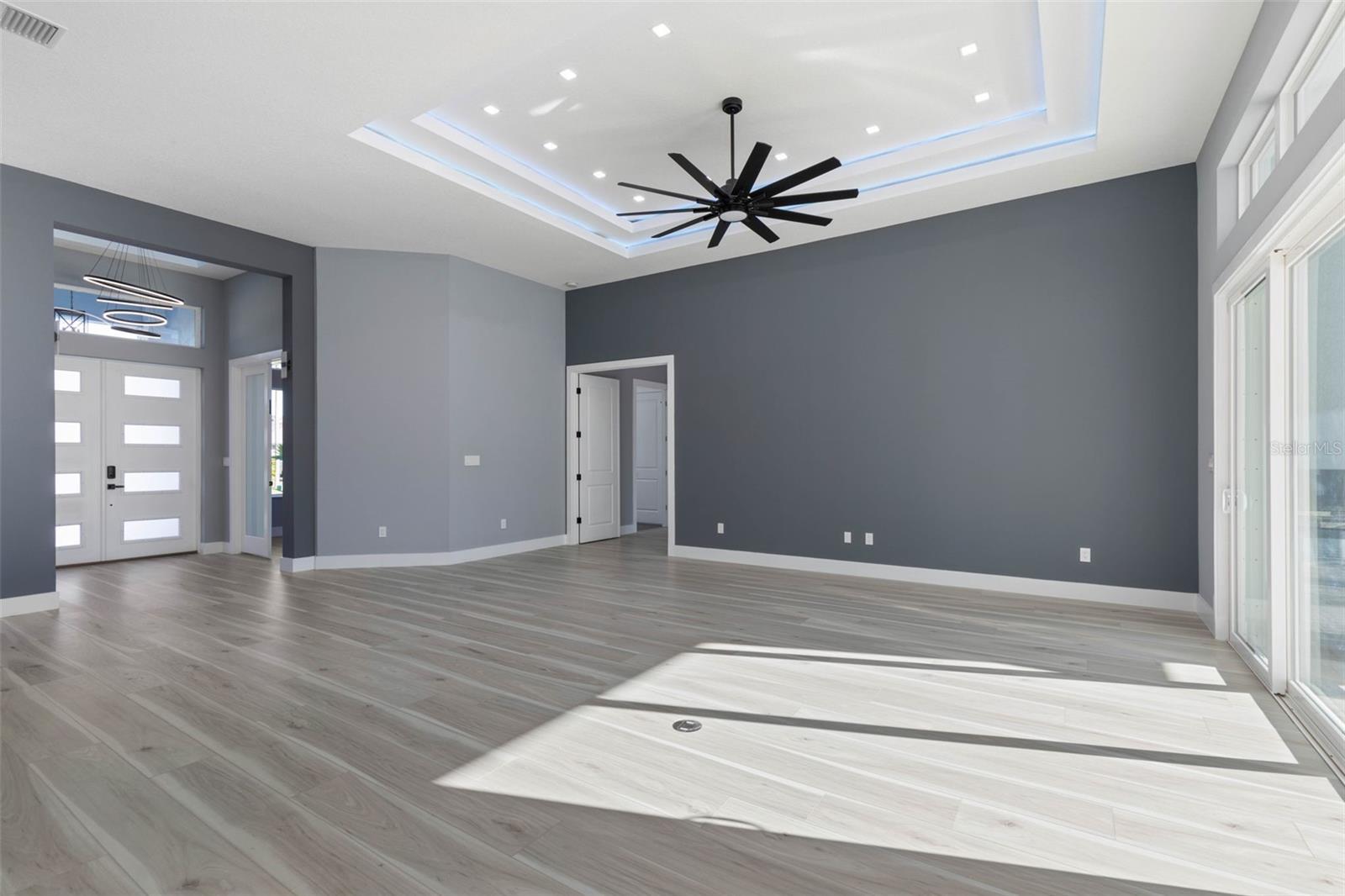 - Ceiling Fans(s), Eat-in Kitchen, High Ceilings, Kitchen/Family Room Combo, Open Floorplan, Primary Bedroom Main Floor, Solid Surface Counters, Split Bedroom, Tray Ceiling(s), Walk-In Closet(s)