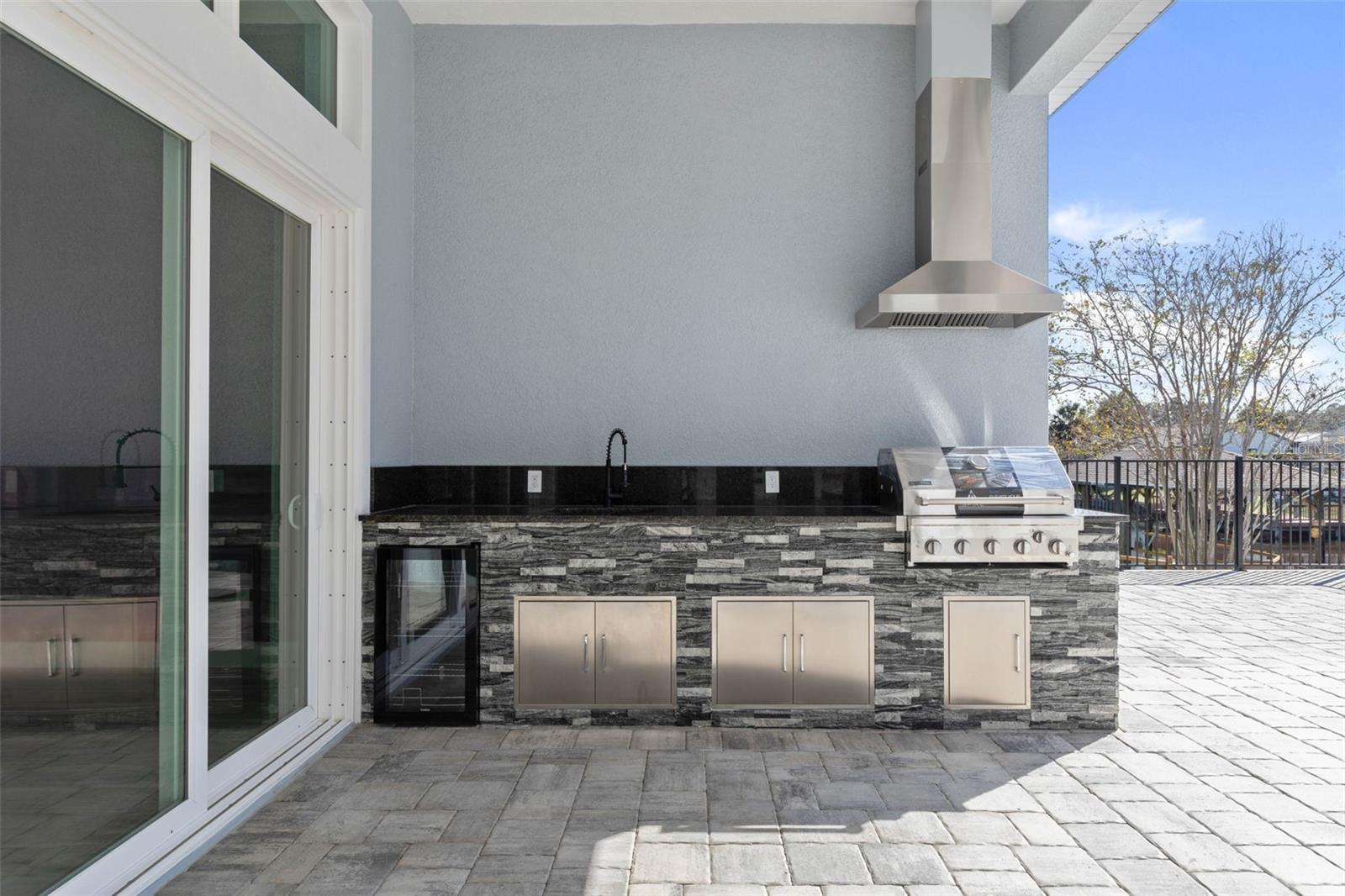 - Lighting, Outdoor Grill, Outdoor Kitchen, Rain Gutters, Sliding Doors, Sprinkler Metered