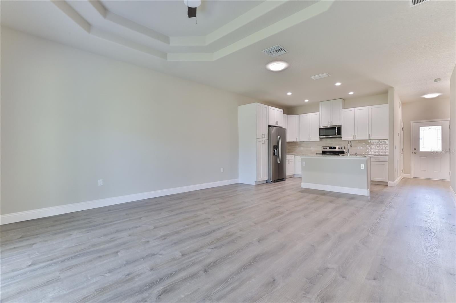 Beautiful Duplex for rent ! 3 bedrooms , 2 Bath : Many upgrades throughout : 12 ft. Trey ceilings, vinyl waterproof floor ,Tile, upgraded Kitchen with SS appliances including refrigerators, 42 inch Cabinets, Granite counter tops, sliding doors with blinds in between to reduce dust, Ceiling fans, LED light fixtures, kitchen exhaust fan and more, as well as painted flooring in the garage . Master suite has trey ceiling, walk in closet. In the Garage you will find access to attic, instant water heater (tankless water heater), walking distance to Publix, schools, hospital, Beach, US-1 (straight route to Daytona Beach) and many of our local favorite restaurants! Actual photos, available 12/01/2025