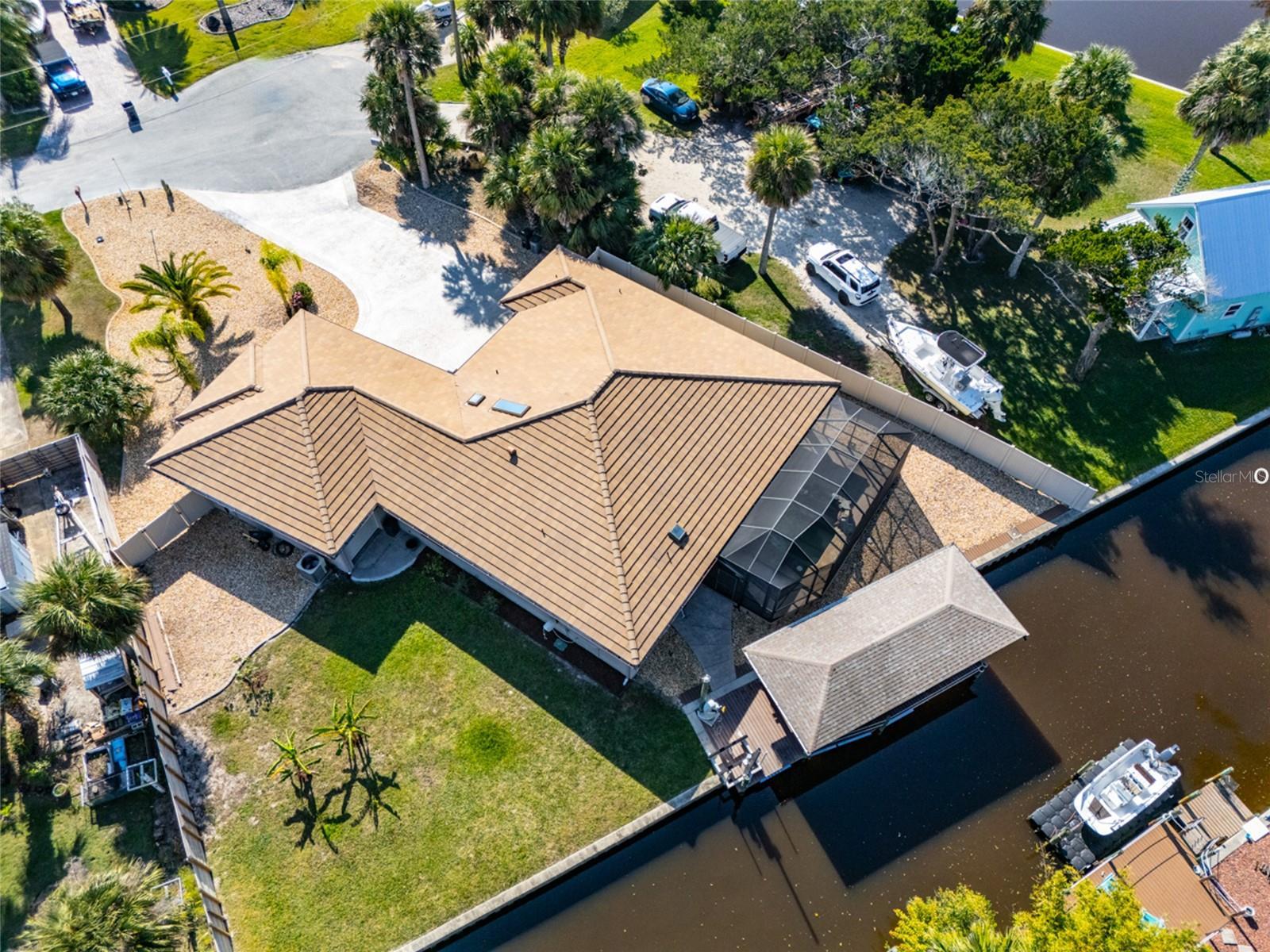 Golf cart conveys! This beautiful concrete block & stucco home was built in 2016. The home offers a bright, open interior with upgraded tile flooring throughout and a gourmet kitchen featuring granite countertops and top-of-the-line appliances, perfect for cooking and entertaining. The primary suite feels like a retreat with its large bathroom, jacuzzi tub, walk-in shower, dual vanities, walk-in closet, and oversized heavy-duty sliding glass doors that open to the screened lanai. The great room, dining room, and primary bedroom all overlook the saltwater canal, giving you peaceful water views from the main living areas. Step out to the lanai to enjoy the in-ground cocktail pool with a waterfall, along with a convenient full bathroom for guests. Outside, you’ll find a 12x42 dock with a boathouse, boat lift, and Seadoo lift, offering direct access to the Intracoastal Waterway. The home also includes an oversized garage with a third overhead door for golf cart or mower storage, an RV hookup, and a low-maintenance lawn. Just a short walk or drive to the beach, this property offers easy coastal living. Come discover Flagler Beach, it is a lifestyle! Seawall 2015, House built 2016, Cocktail pool 2017, RV reciprocal 2018, Fence 2022.