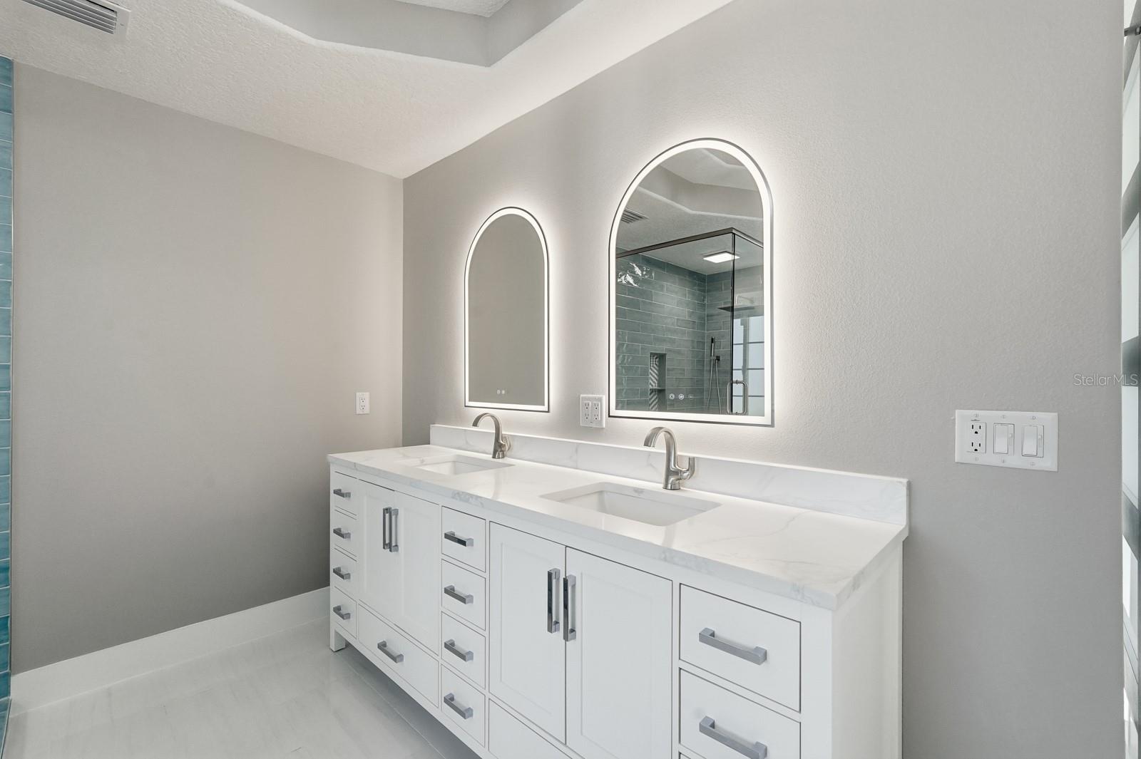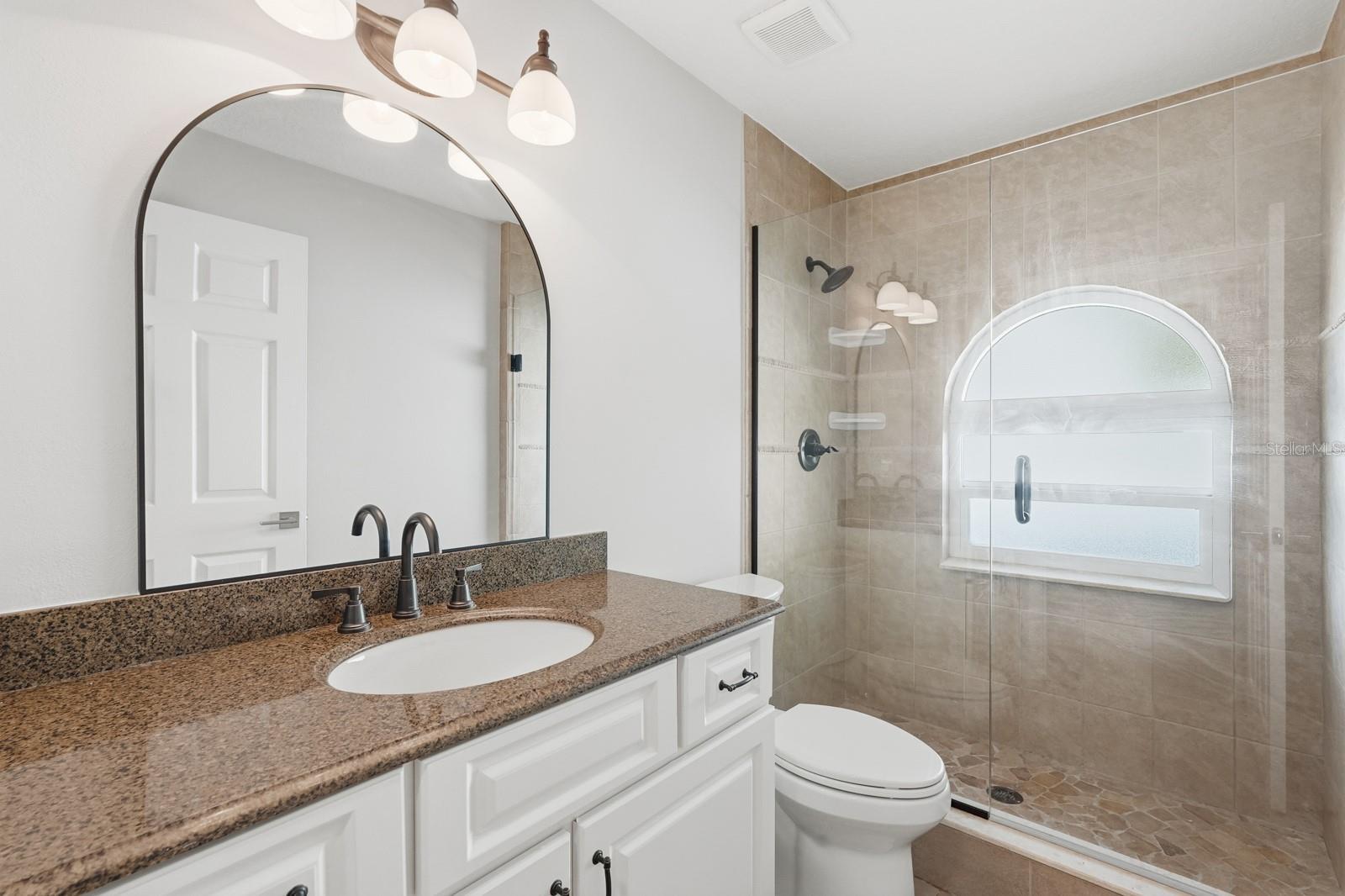 - Ceiling Fans(s), Eat-in Kitchen, Kitchen/Family Room Combo, Open Floorplan, Primary Bedroom Main Floor, Solid Surface Counters, Split Bedroom, Stone Counters, Thermostat, Vaulted Ceiling(s), Walk-In Closet(s), Window Treatments