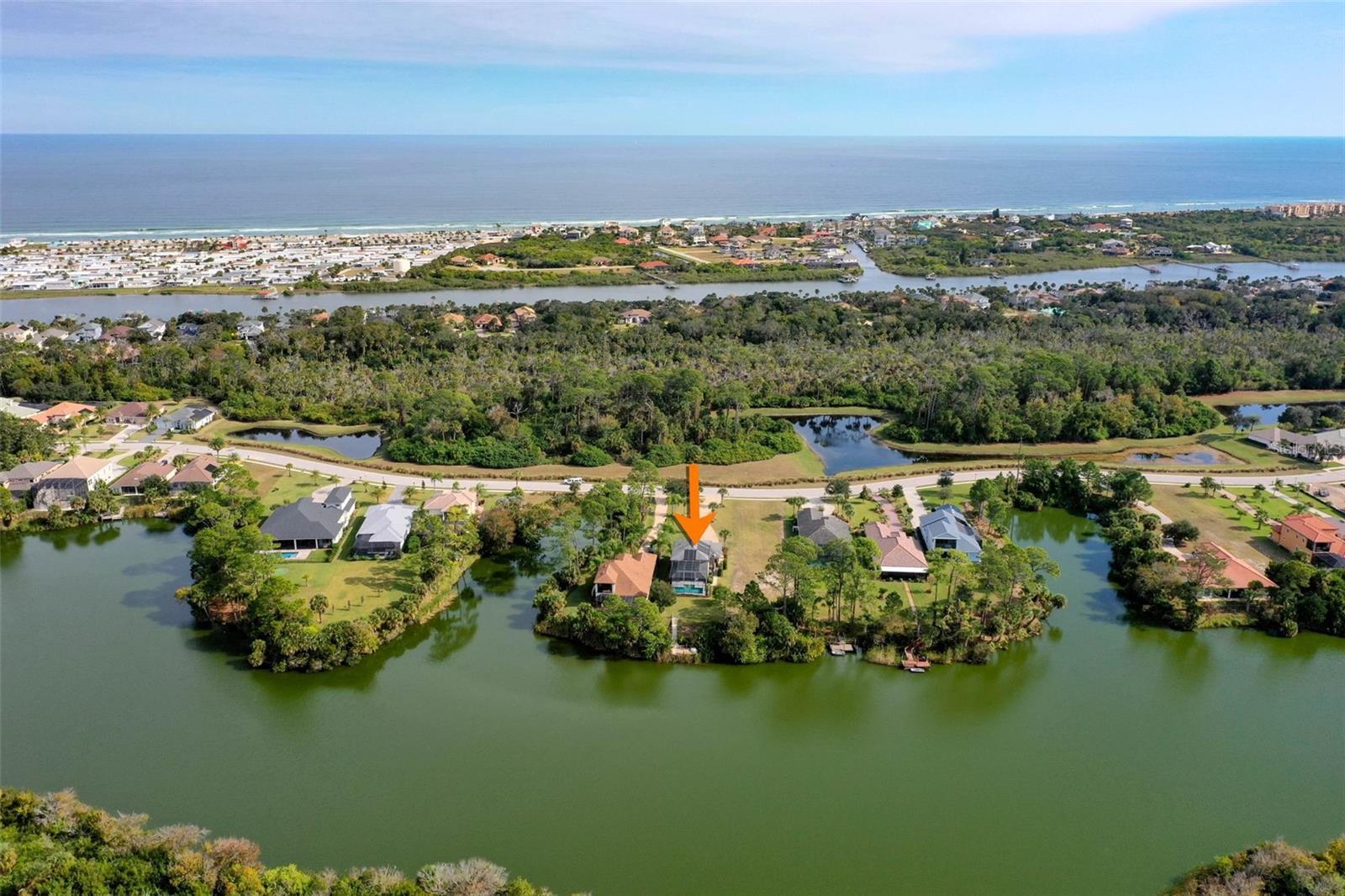One or more photo(s) has been virtually staged. Stunning Custom Lakefront Estate in Palm Coast Plantation -- Perfectly situated along the tranquil shores of Emerald Lake, this exceptional 4-bedroom, 2 full bath + 2 half bath custom home blends elegance, comfort, and breathtaking views. Set on over half an acre in one of Palm Coast’s premier gated communities, the property offers refined indoor living and outstanding outdoor spaces designed for relaxation and entertainment. A long, curved paver driveway with upgraded landscaping, curbing, and extra parking leads to an impressive 8-ft double-door entrance. Upon entering, a convenient bedroom/office and half bath sit just off the foyer. The dramatic open floor plan showcases soaring volume ceilings, crown molding, plantation shutters, and a beautiful staircase and fireplace—framed by expansive views of the pool and Emerald Lake. Quadruple pocket sliders create a seamless indoor–outdoor experience that opens to the two-story screened pool area, covered lanai, and private dock. The gourmet kitchen is designed for culinary enthusiasts, featuring Kitchen Maid soft-close cabinetry, pullouts, stainless steel appliances, double ovens, flat cooktop, granite countertops, a center island, and a large walk-in pantry. Upstairs, the primary suite is a serene retreat with tray ceilings, a spacious walk-in closet with built-ins, double vanity, walk-in shower, and soaking tub. French doors opens to the large, private balcony—offering the home’s most stunning views of Emerald Lake. Also on the second floor are the laundry room, a full bath, and two additional bedrooms. Additional notable features include: • Impact-resistant windows & doors • Deep private well • Pre-plumbed summer kitchen + lanai speakers & TV wiring • 14,500-gallon pool with salt/solar system, variable-speed pump & Shark decking • 2019 screen replacement, exterior painted 2020, interior painted 2025 • Extended 2-car garage • Custom exterior Christmas lighting (conveys) • Cody termite bond • Scenic water views from nearly every room Experience the perfect combination of sophistication, comfort, and lakeside tranquility in this beautifully maintained custom estate. Palm Coast Plantation offers resort-style amenities and a serene natural setting, making this an extraordinary opportunity for the discerning buyer.